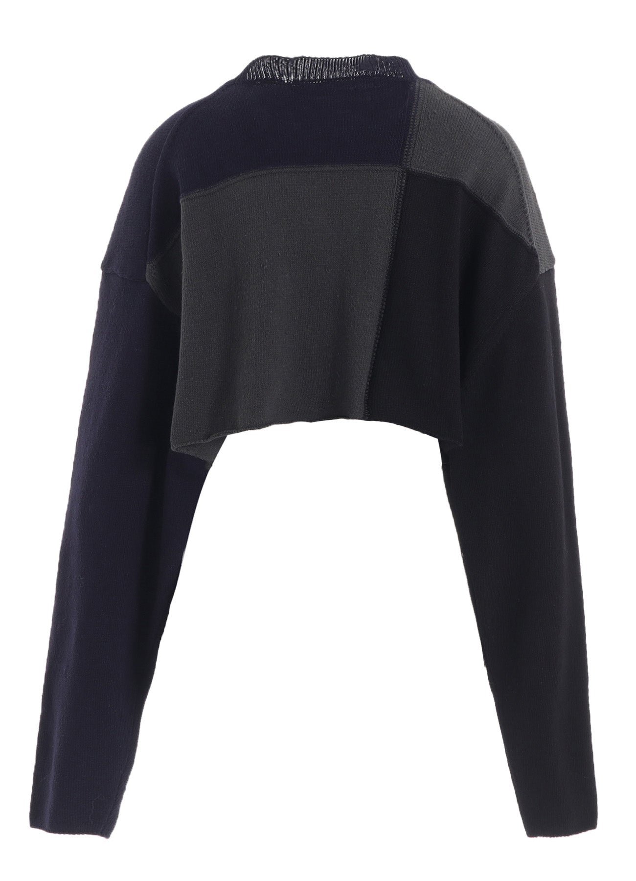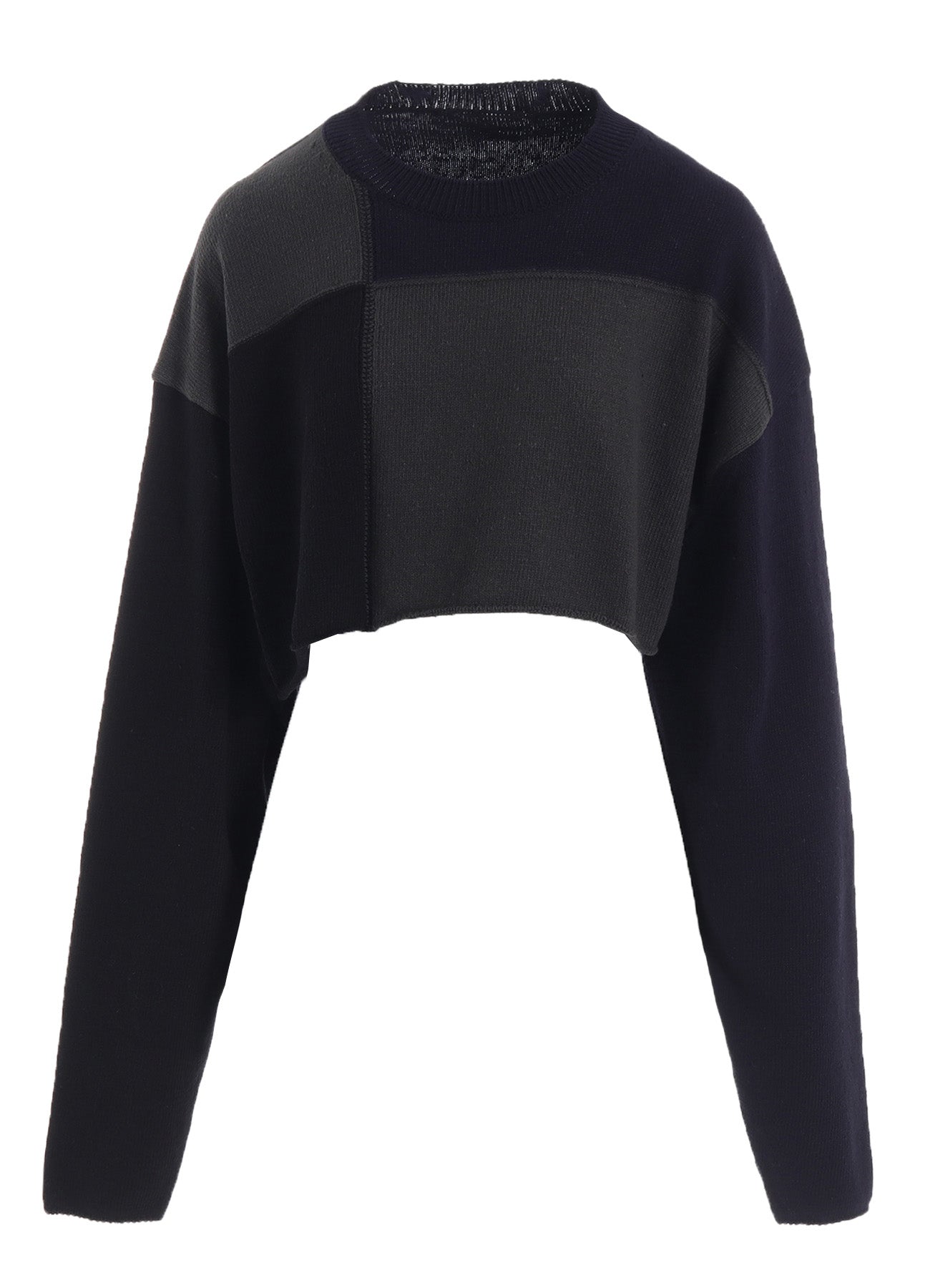HARD-TWISTED BLOCK INTARSIA ROUND NECK SHORT PULLOVER