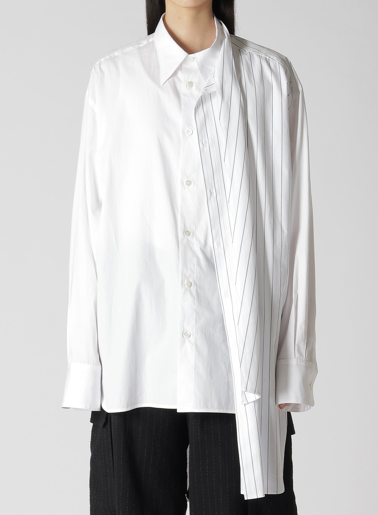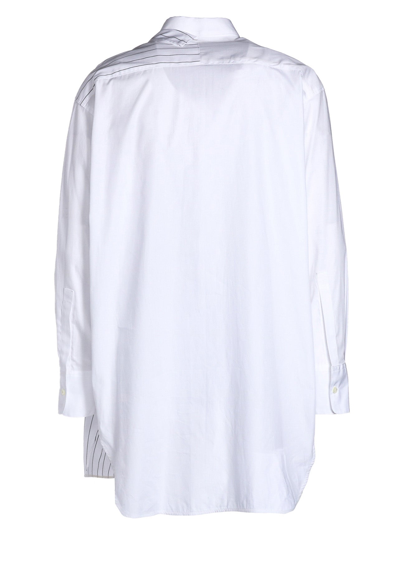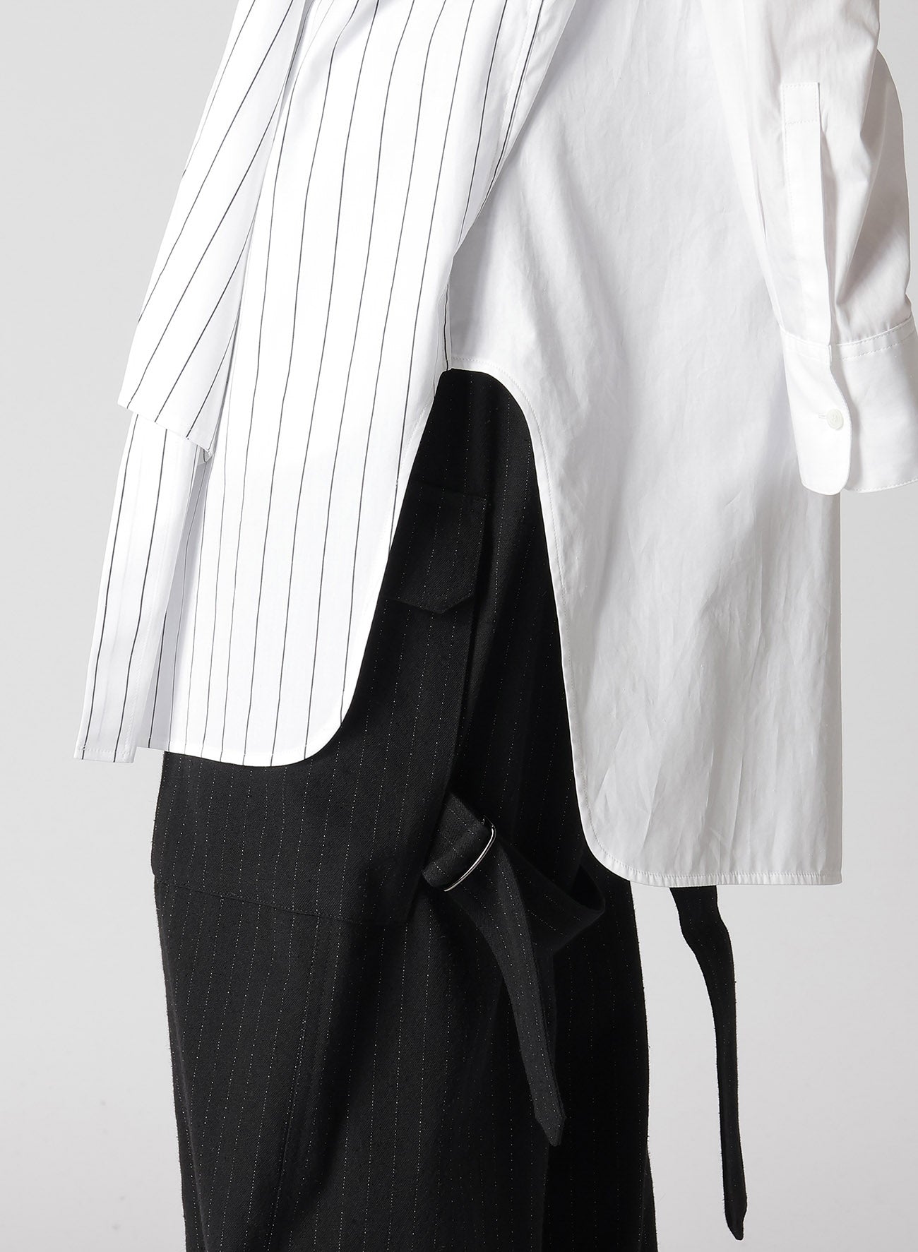 Esta camisa de algodón con pajarita y doble capa combina un tejido de alta densidad con una textura suave y lisa. Presenta patrones a rayas parciales y se puede abotonar o desabotonar en las secciones en capas.
