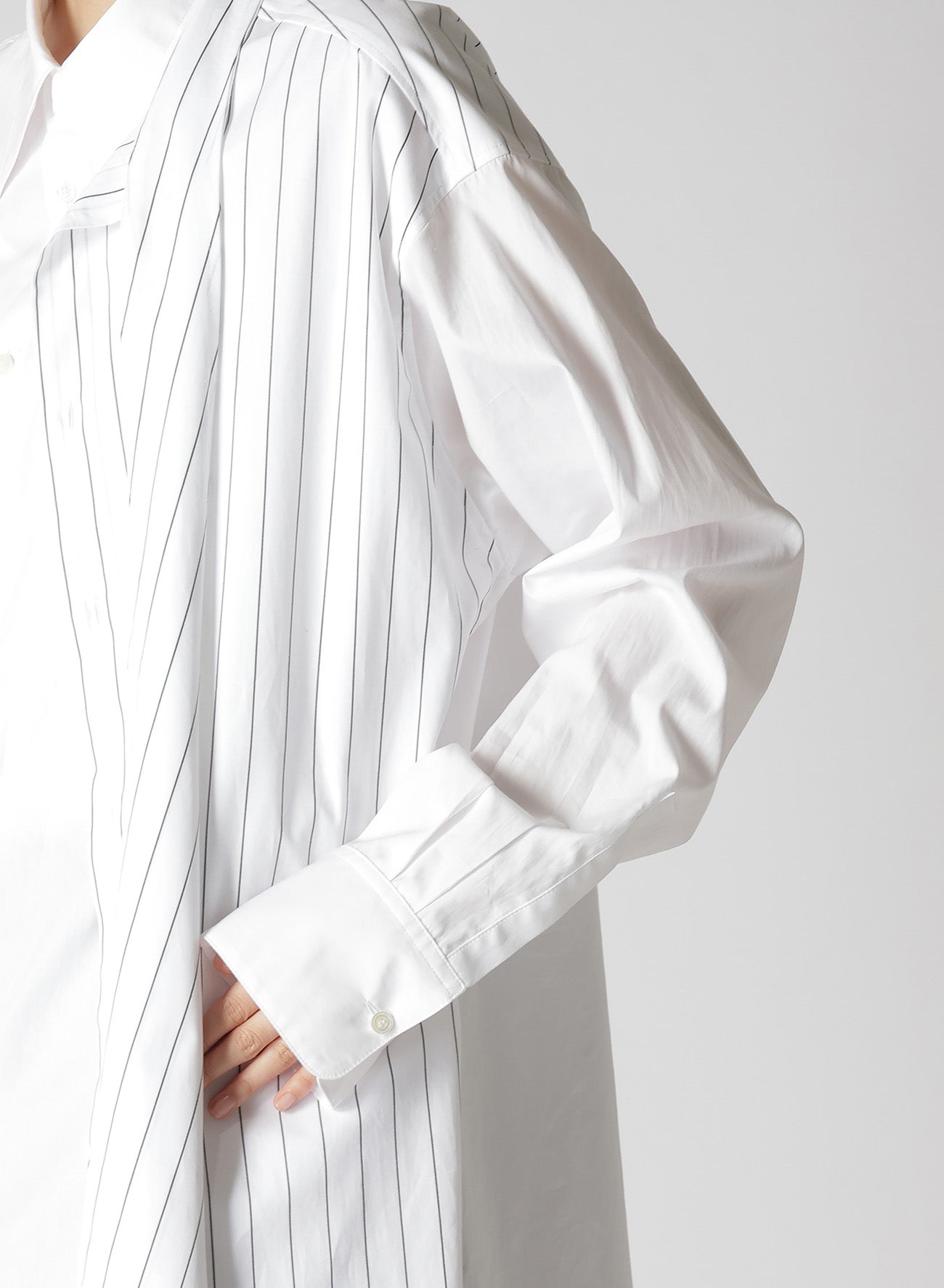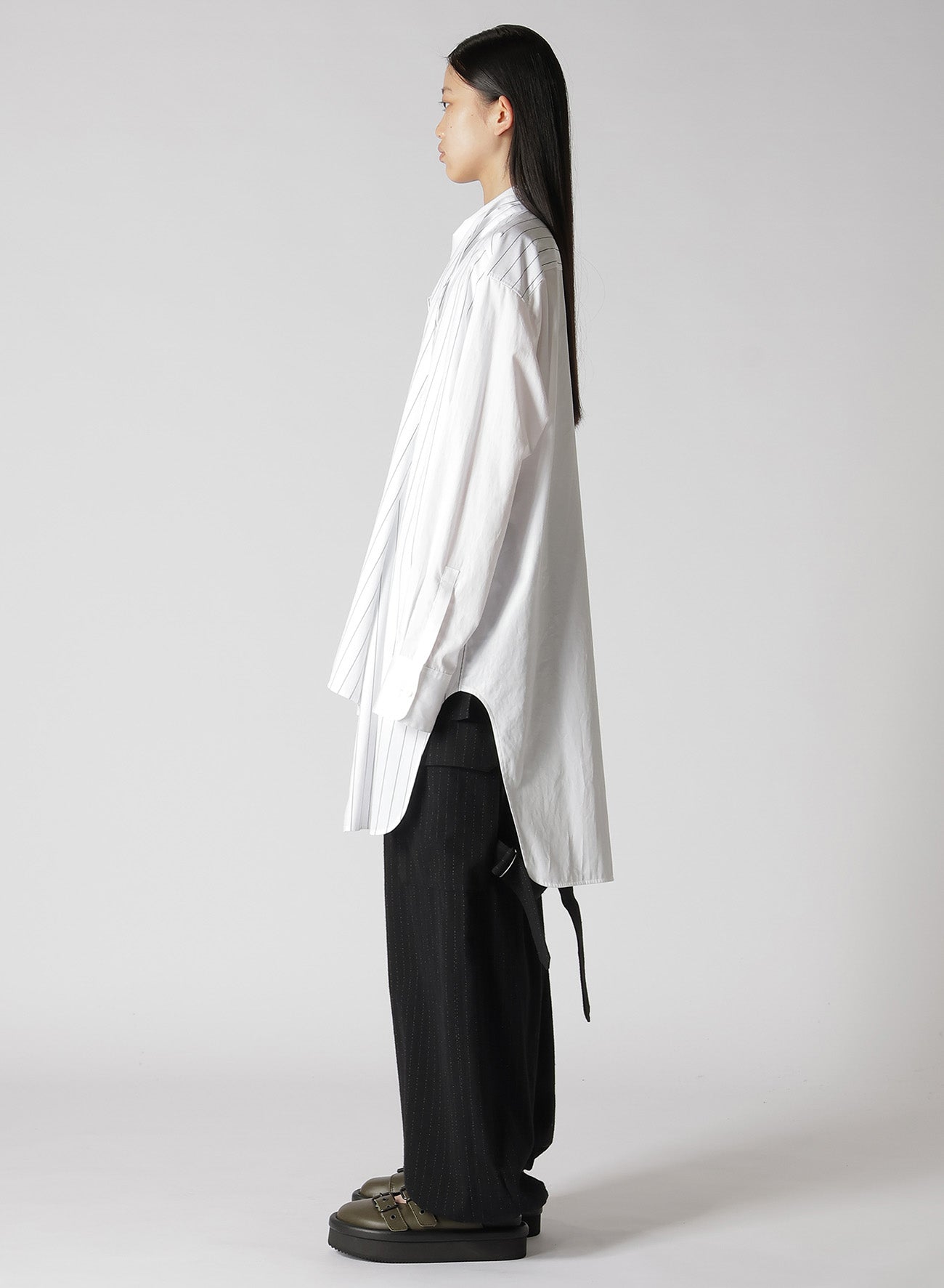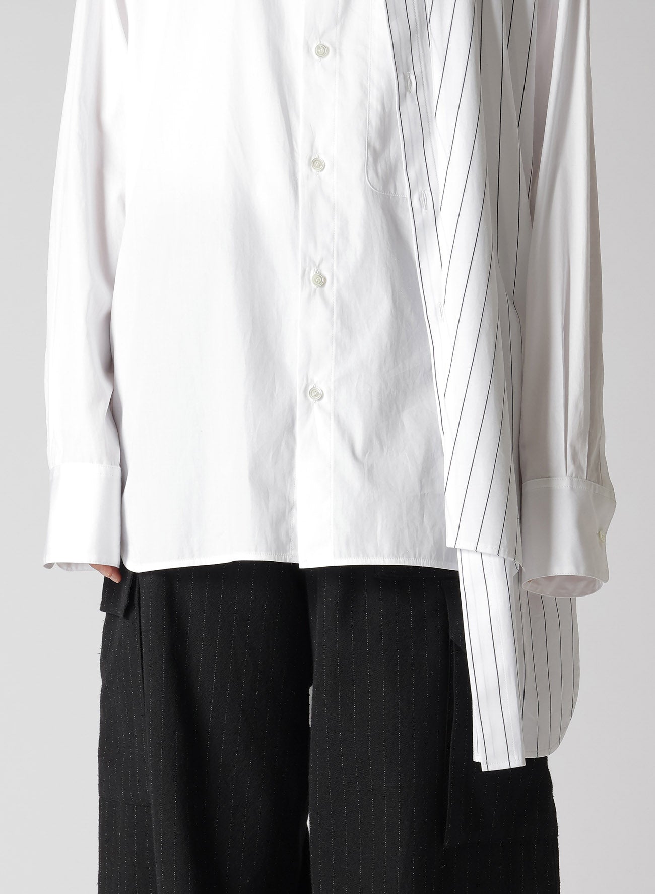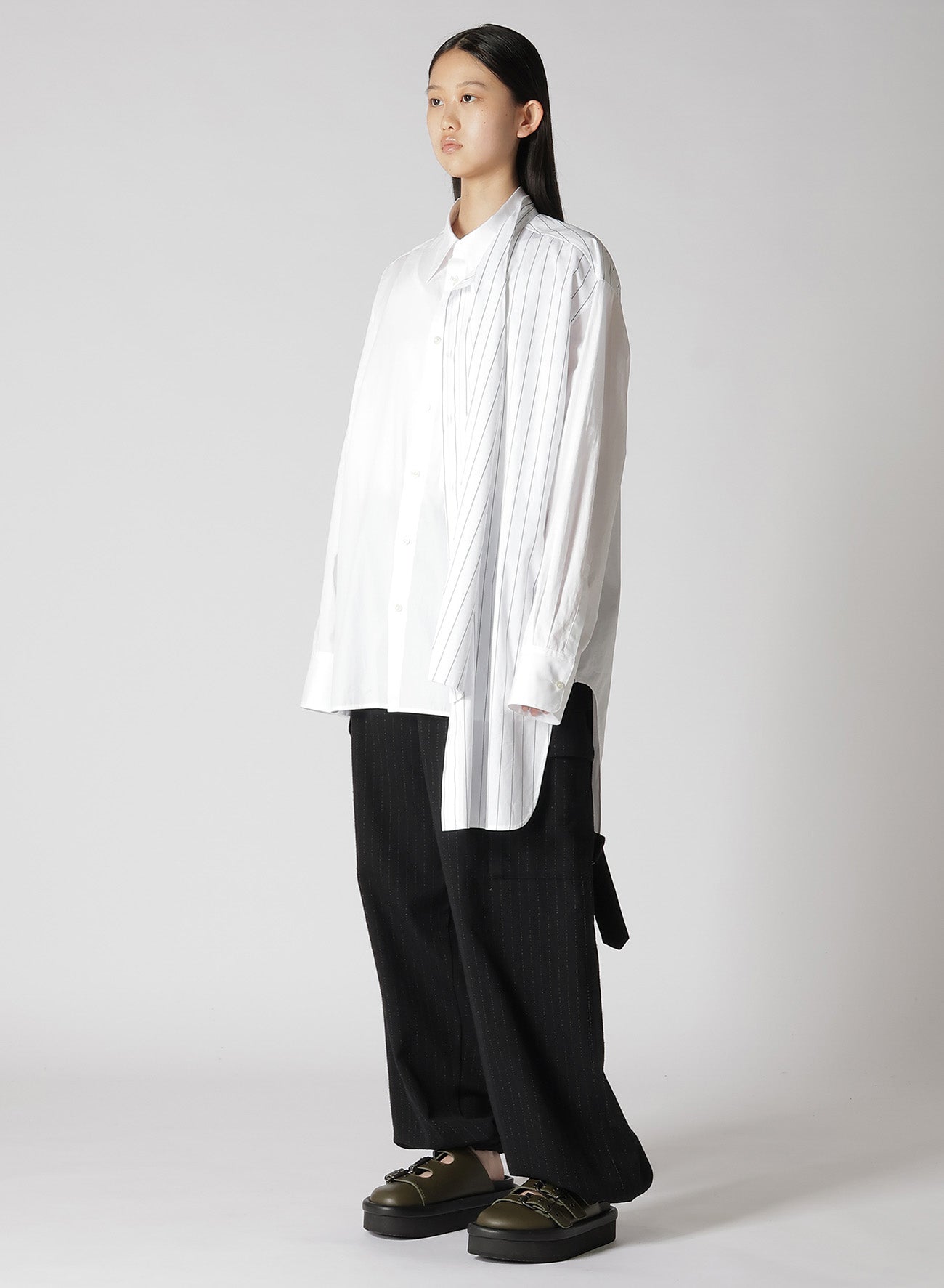 Esta camisa de algodón con pajarita y doble capa combina un tejido de alta densidad con una textura suave y lisa. Presenta patrones a rayas parciales y se puede abotonar o desabotonar en las secciones en capas.