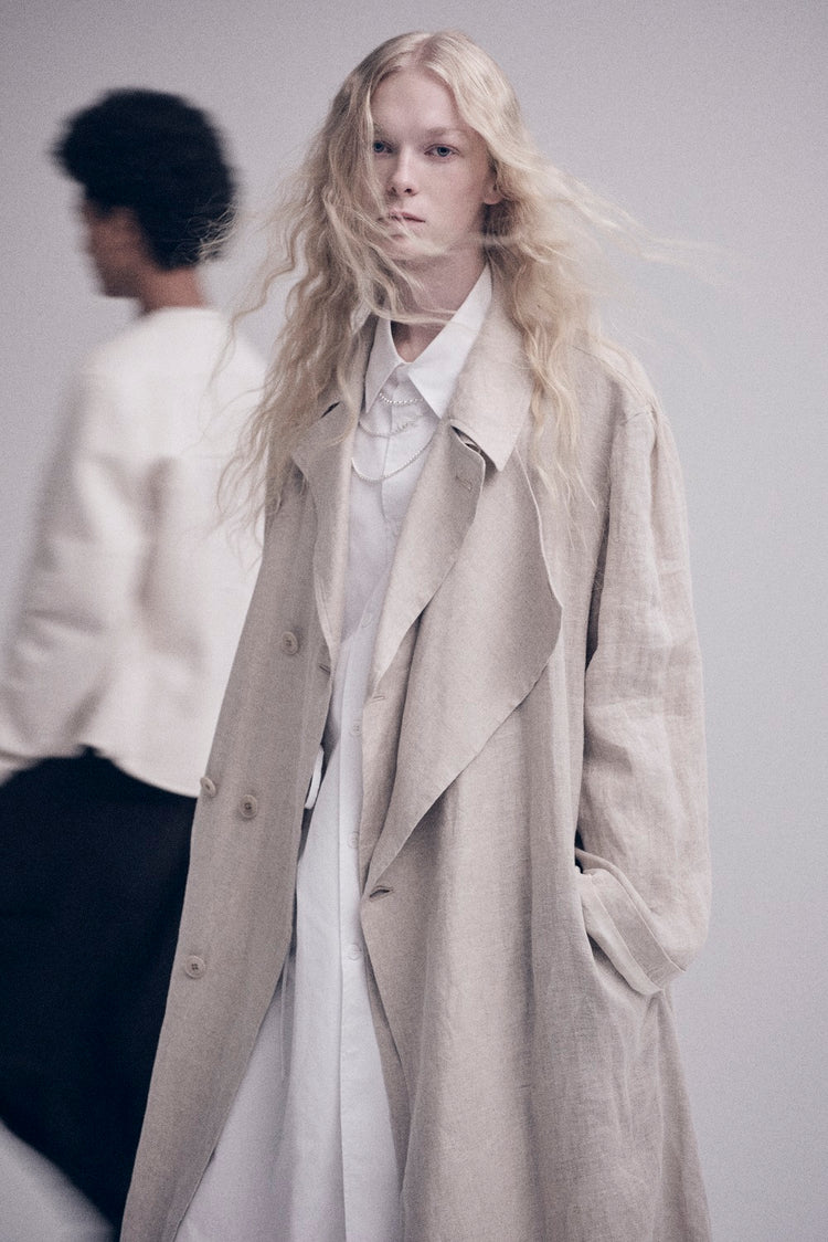 LINEN GAUZE DOUBLE-BREASTED COAT WITH DOUBLE-TAILORED LEFT FRONT