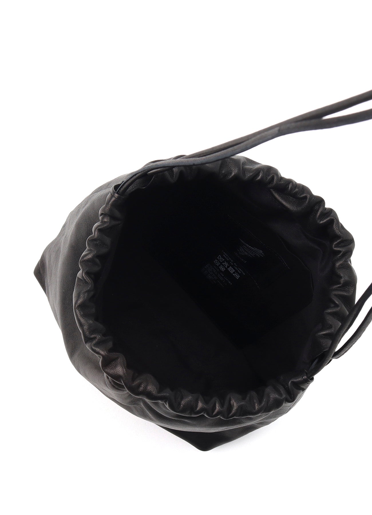 This exclusive Shibuya PARCO drawstring bag made with smooth leather, features both outer and inner pockets. Designed with an adjustable shoulder strap, it offers both style and functionality for various occasions, making it a versatile addition to any wardrobe.