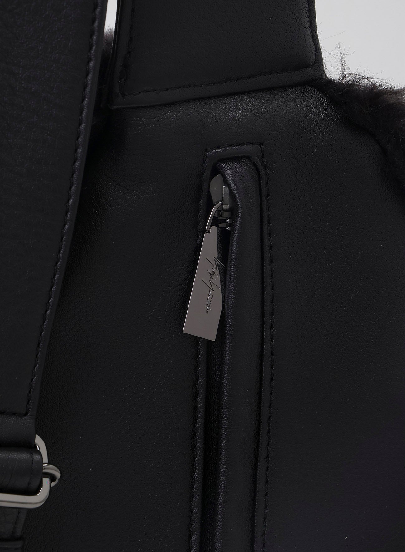This one-shoulder bag by discord Yohji Yamamoto from the [Y] series has a unique shape and luxurious features. With pleat-like details and soft shrink leather, it offers beautiful drapery. The design is secure, as access is only from the back, and its glossy faux fur front adds elegance.
