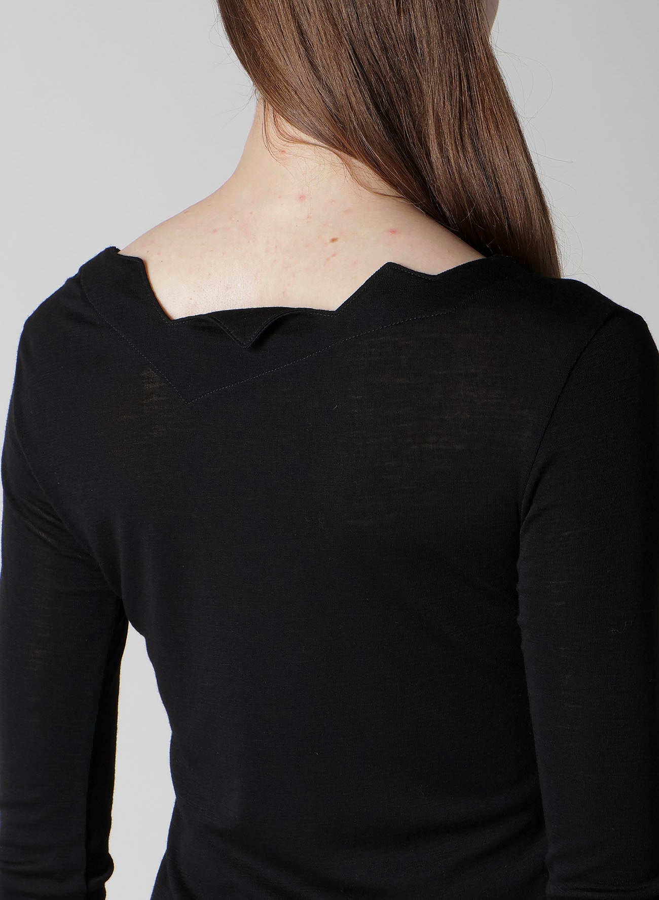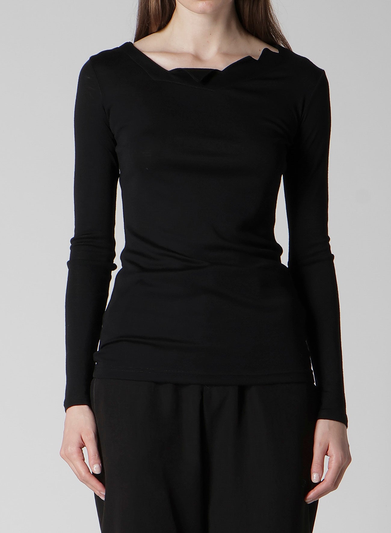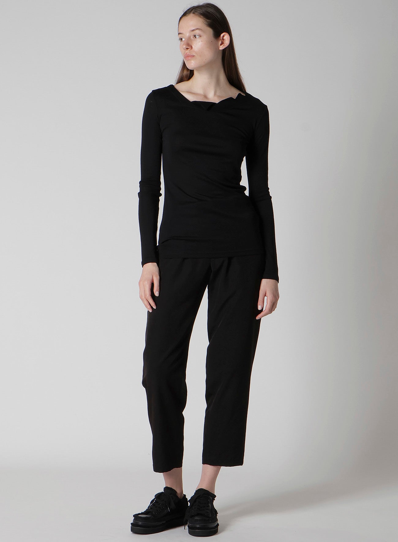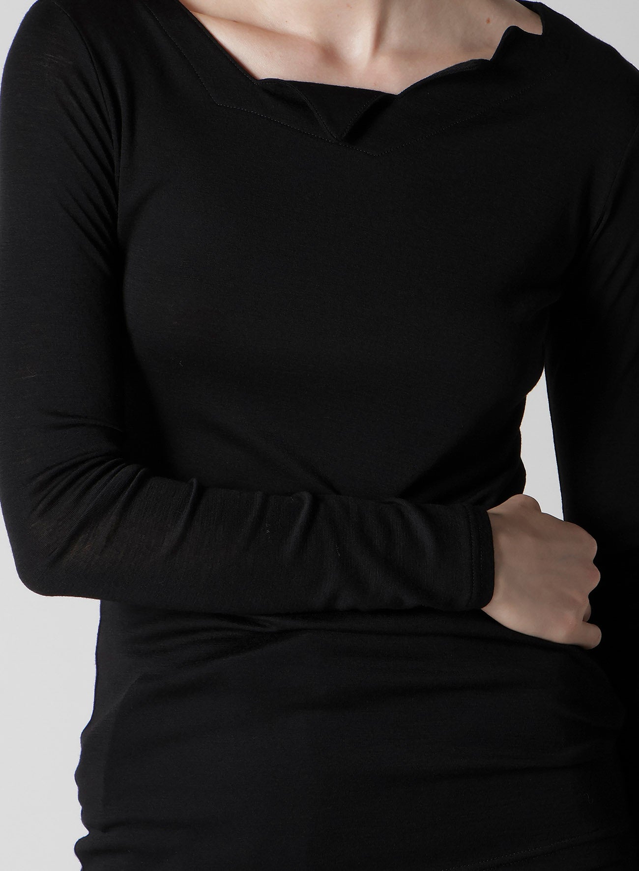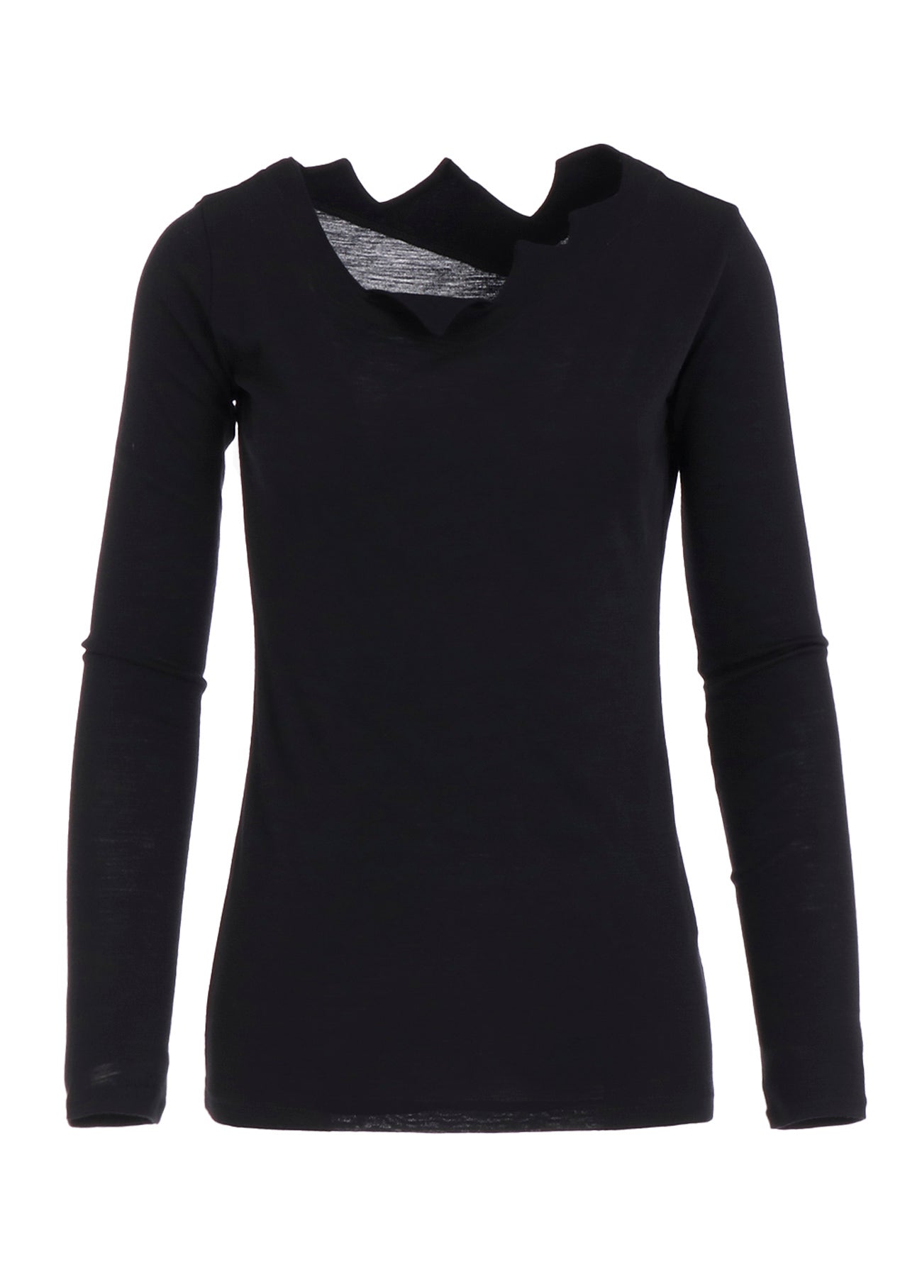 WOOL CHIFFON ZIG-ZAG NECK LINE LONG SLV T