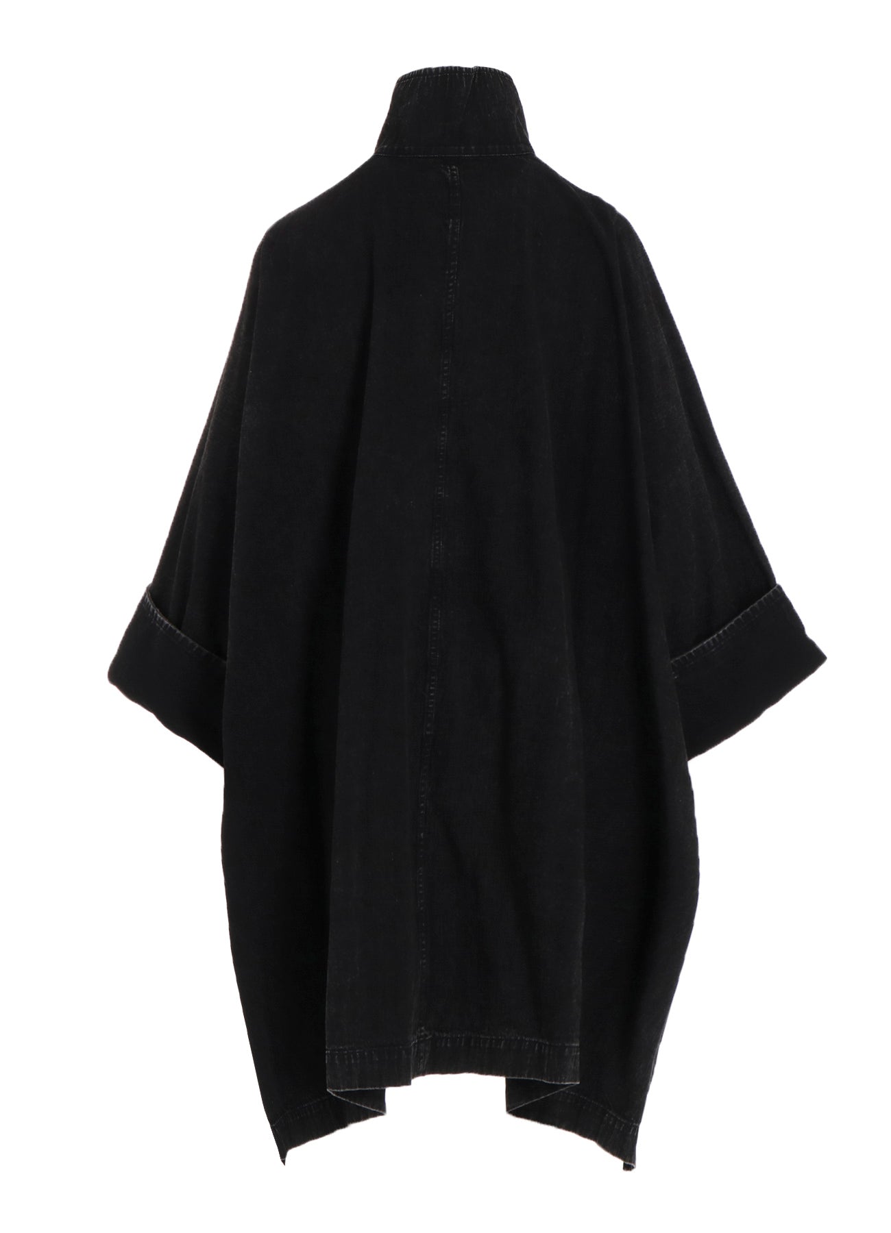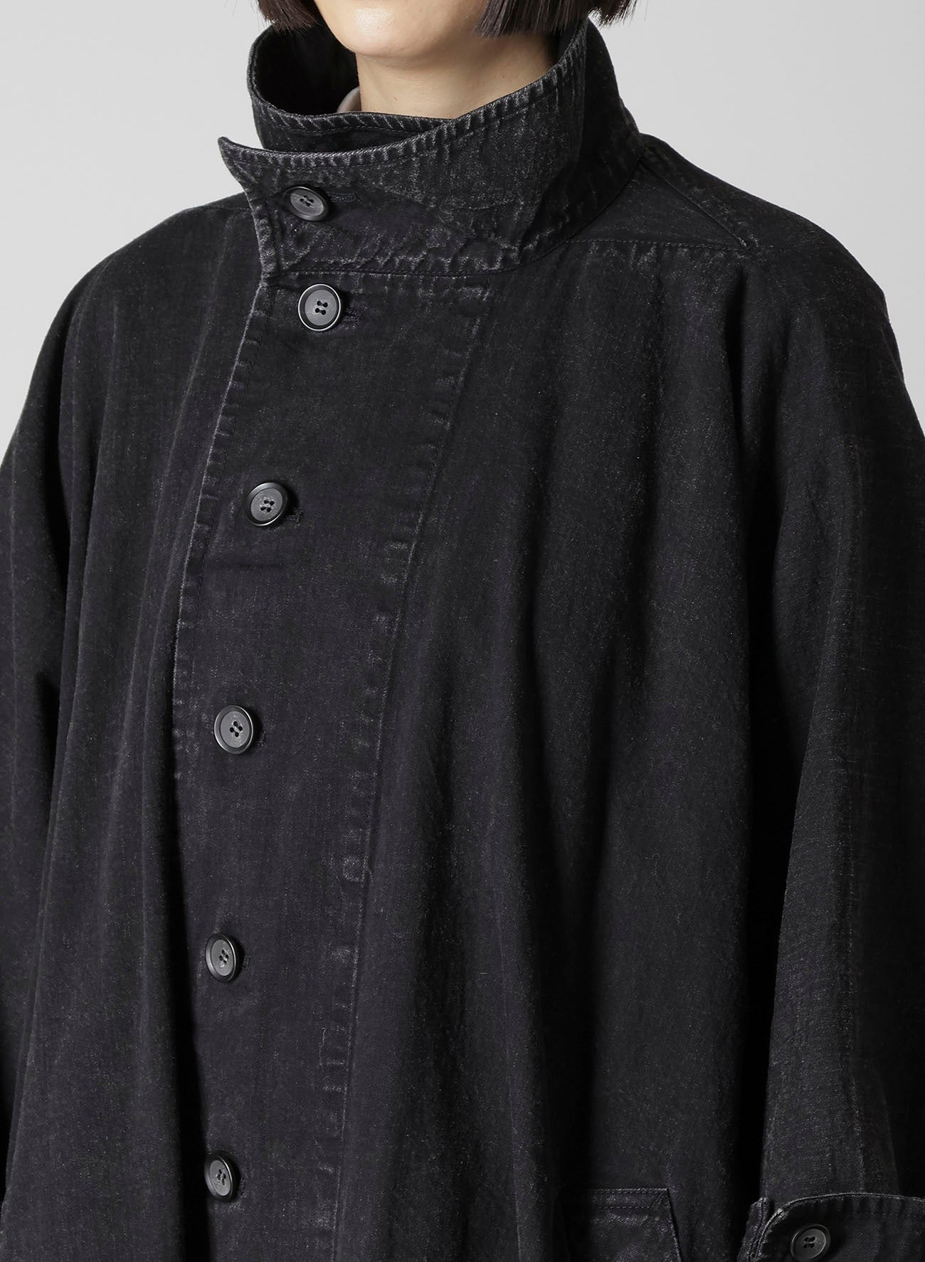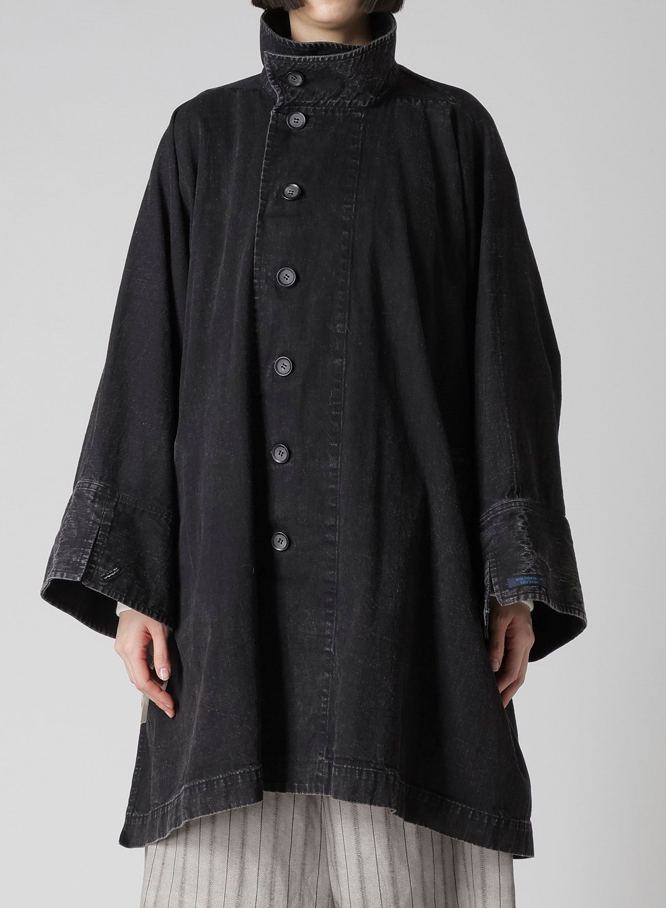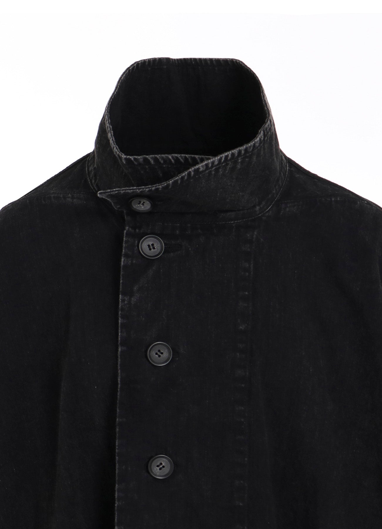 PERMANGANATE BLEACHED DENIM HIGH NECK COAT
