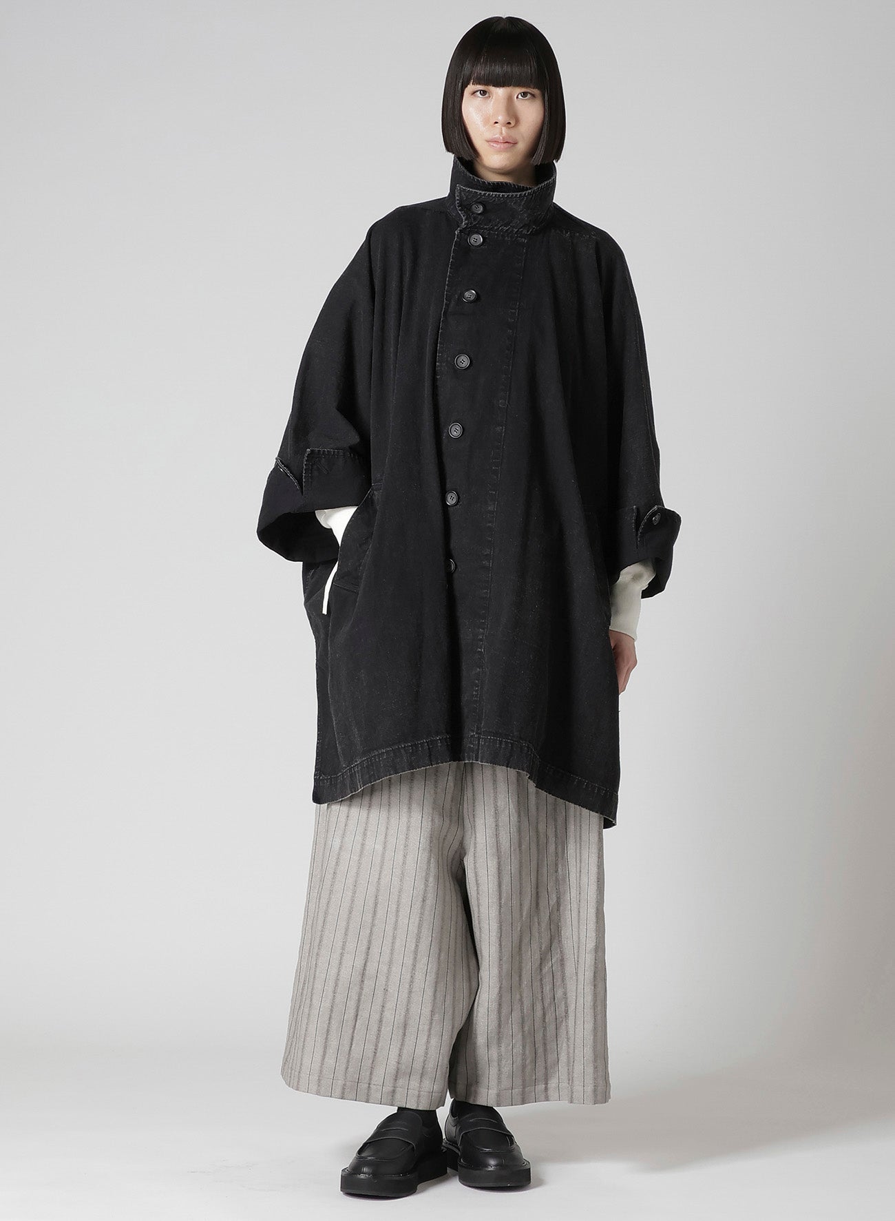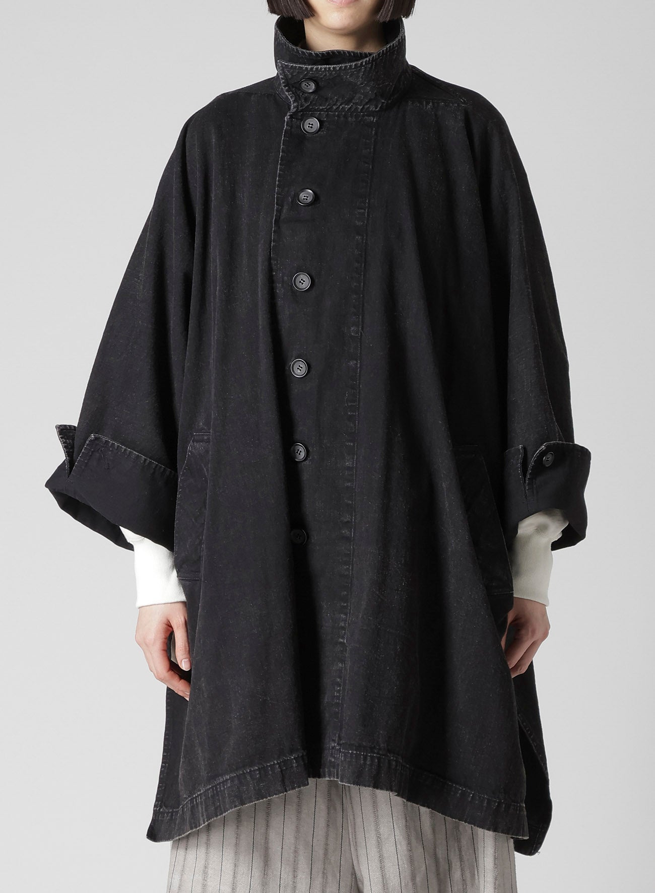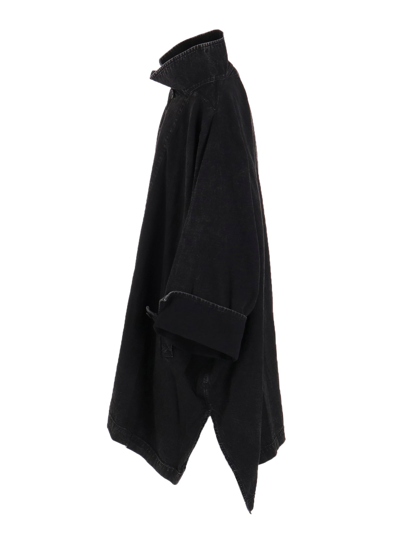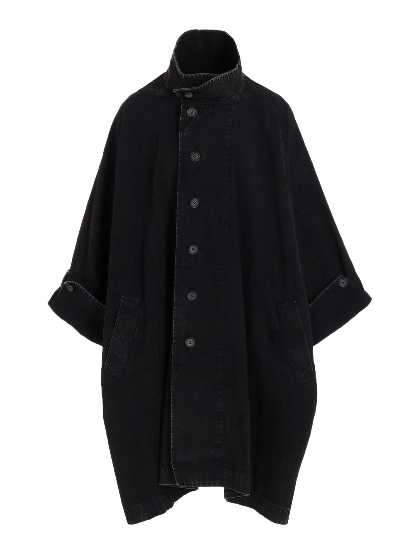 PERMANGANATE BLEACHED DENIM HIGH NECK COAT
