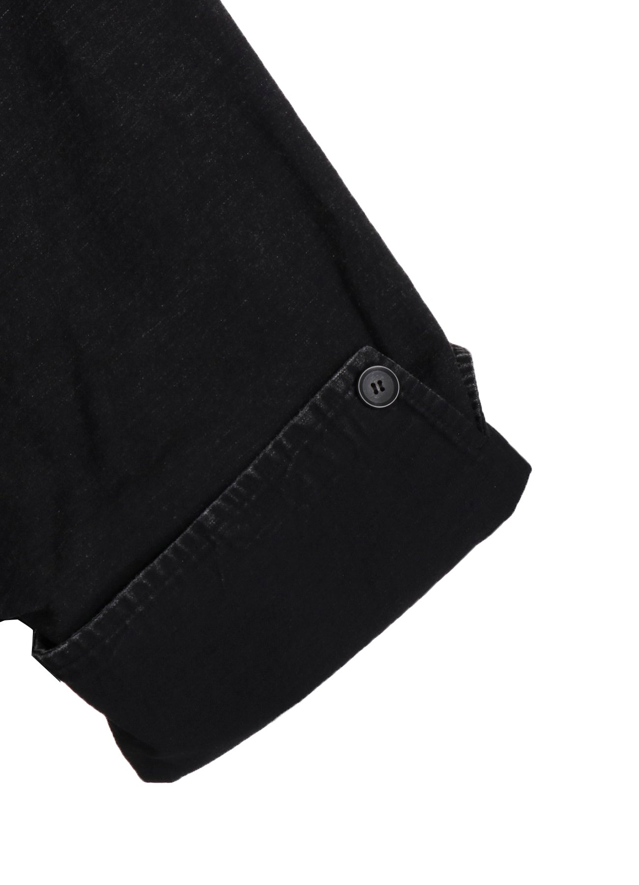 Un magnifique manteau avec un col droit épuré, fabriqué à partir du célèbre matériau de Yohji Yamamoto, la gabardine froissée. Ce vêtement utilise du tissu en denim teint avec des fils sulfurés. Polyvalent, il s'associe aisément avec n'importe quel vêtement intérieur ou pantalon et peut être porté toute l'année.