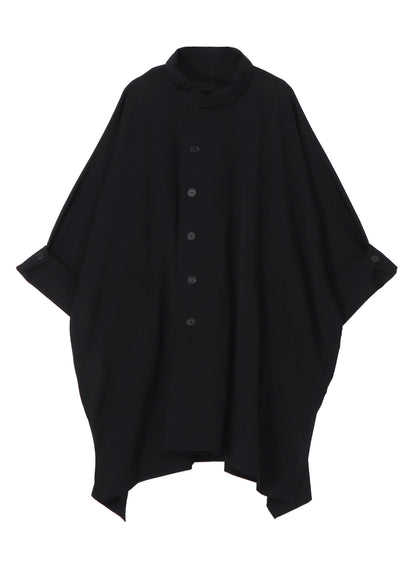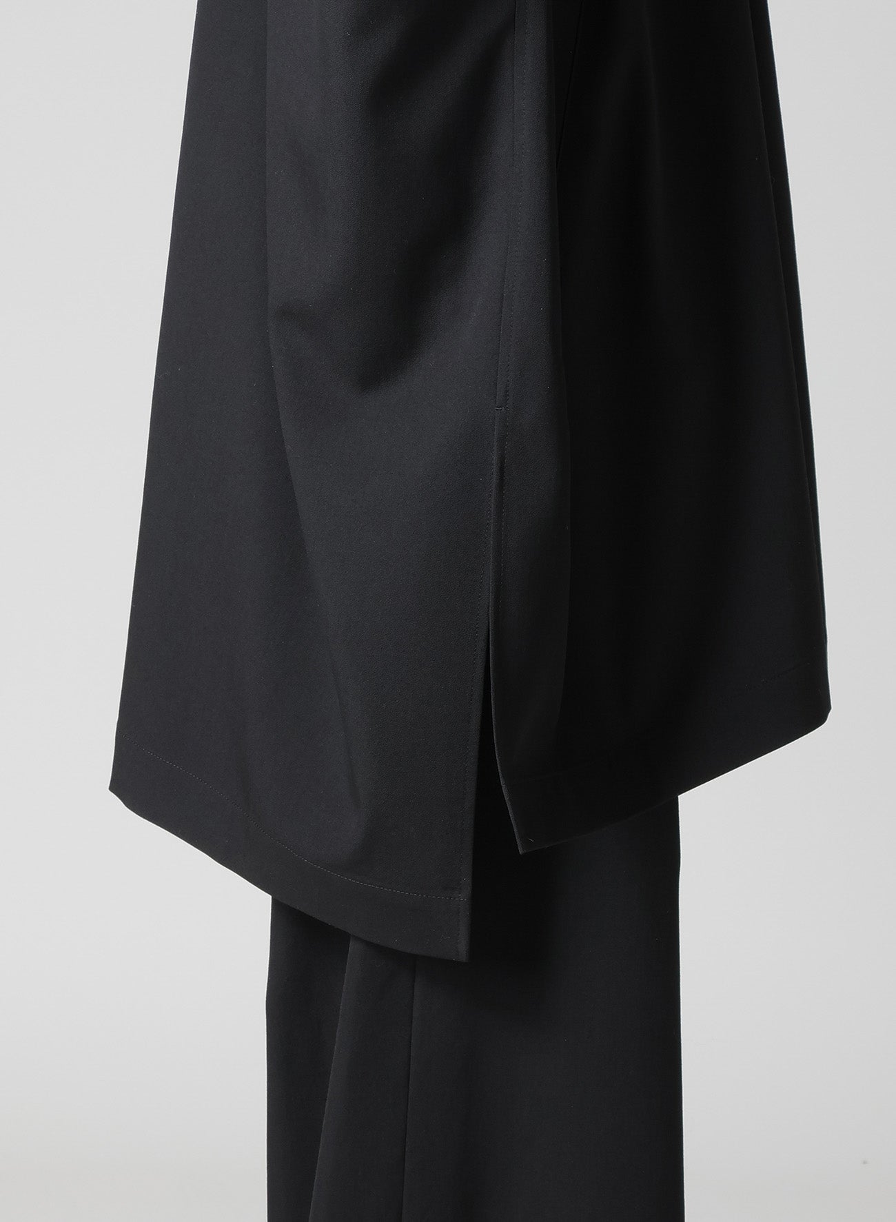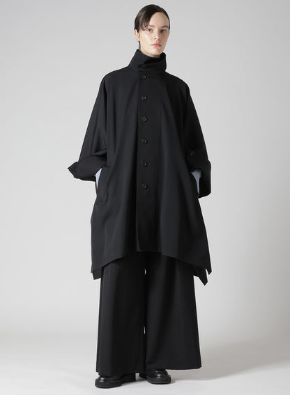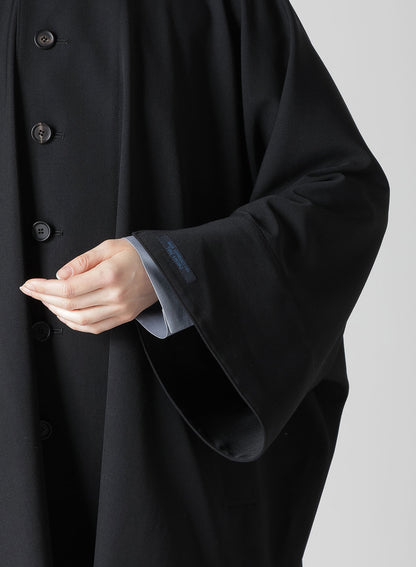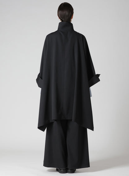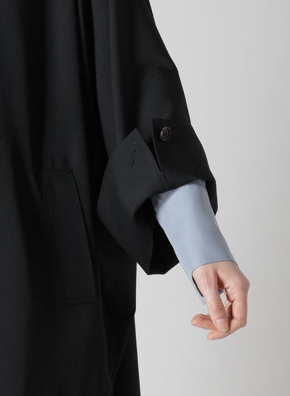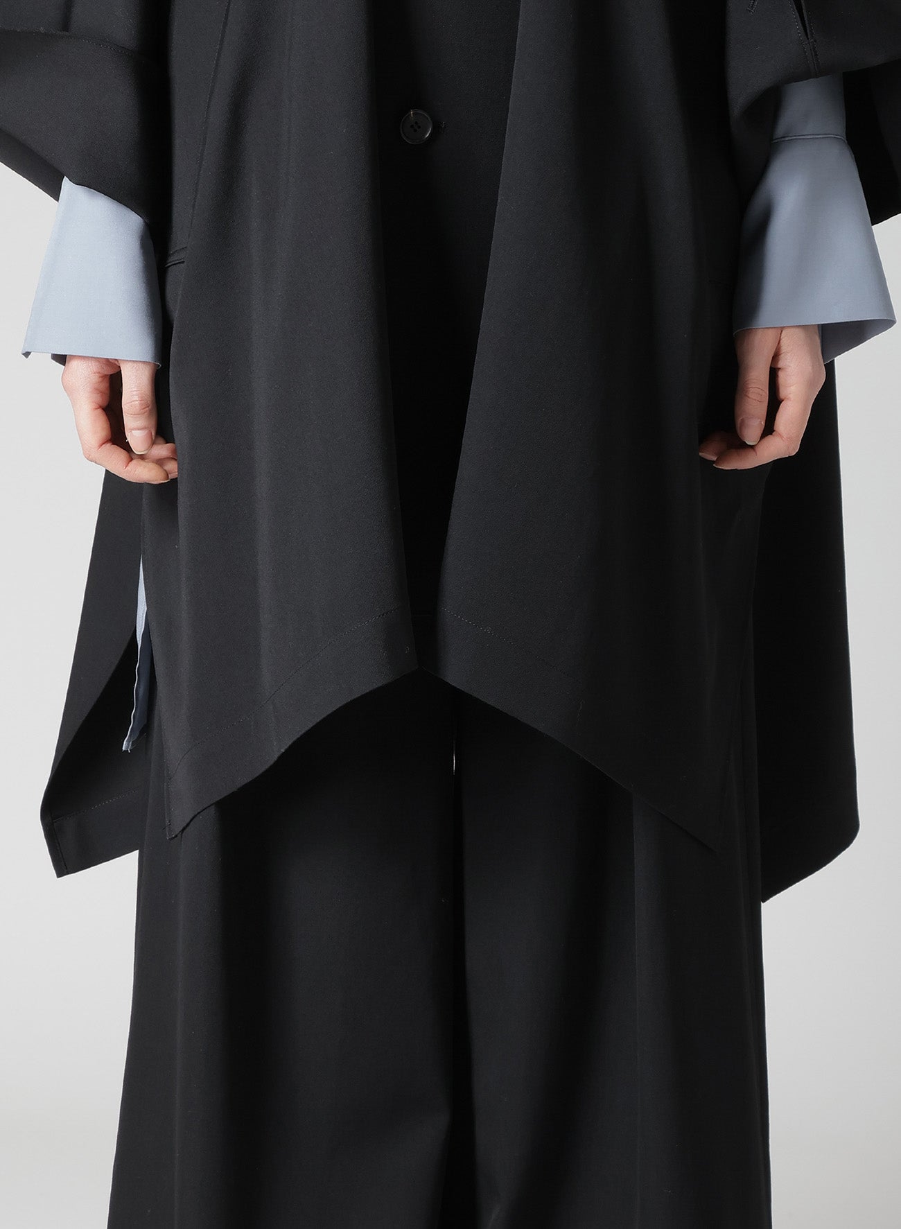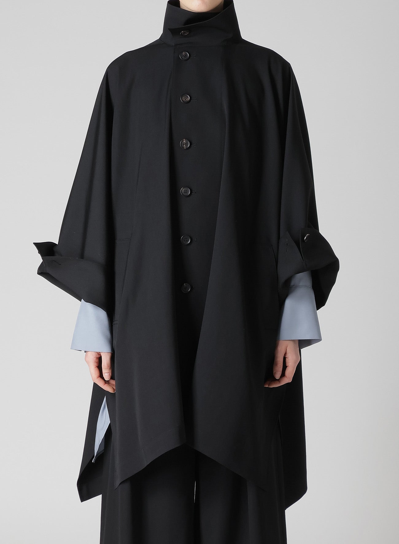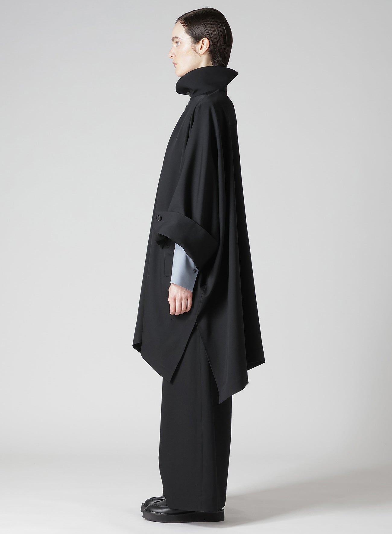 Ce manteau présente un col droit épuré et utilise le matériau signature, le gabardine froissée, de Yohji Yamamoto. Le tissu passe sans effort du col au corps, créant une silhouette frappante. Il est polyvalent et peut être porté avec divers vêtements intérieurs et pantalons pour des saisons prolongées.