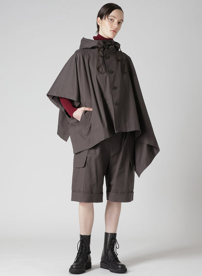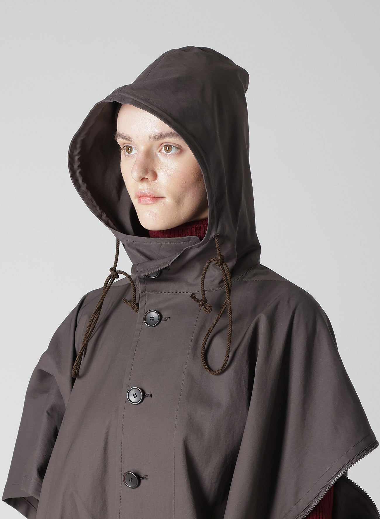 HIGH-TWISTED GABARDINE HOODED CAPE COAT