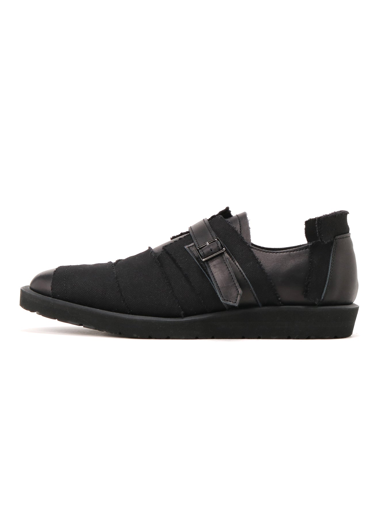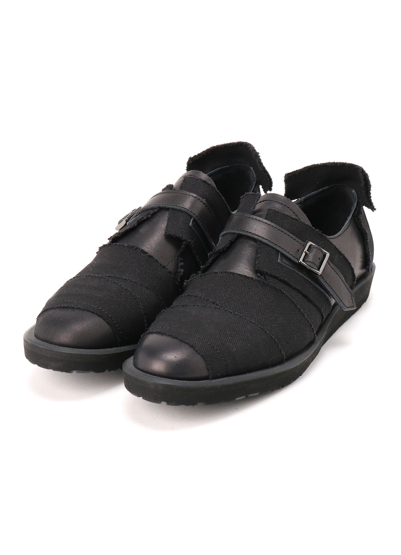 Ce chaussures légères offrent un look distinctif et un confort respirant. Combinant toile de coton et cuir, elles présentent un design inspiré des bandages avec des détails en toile brute. Leur coupe aérée les rend idéales pour une tenue décontractée. - Chaussures à lanière en toile de coton et cuir. - Design inspiré des bandages avec détails en toile brute. - Légères et confortables pour une utilisation quotidienne.