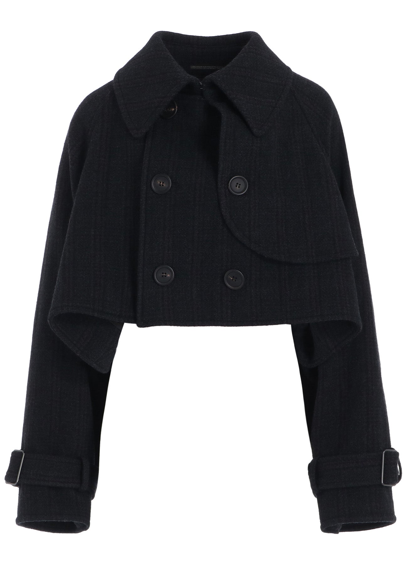 Ce trench court présente un motif Glen plaid apaisant et dégage une impression chic. Avec sa texture douce, le manteau dévoile élégamment la tenue intérieure, ajoutant de la sophistication à votre allure. - Design Glen plaid pour une expression chic et rafraîchie. - Style trench court pour un usage polyvalent. - Texture douce pour plus d'élégance. - Idéal pour superposer avec vos vêtements préférés.