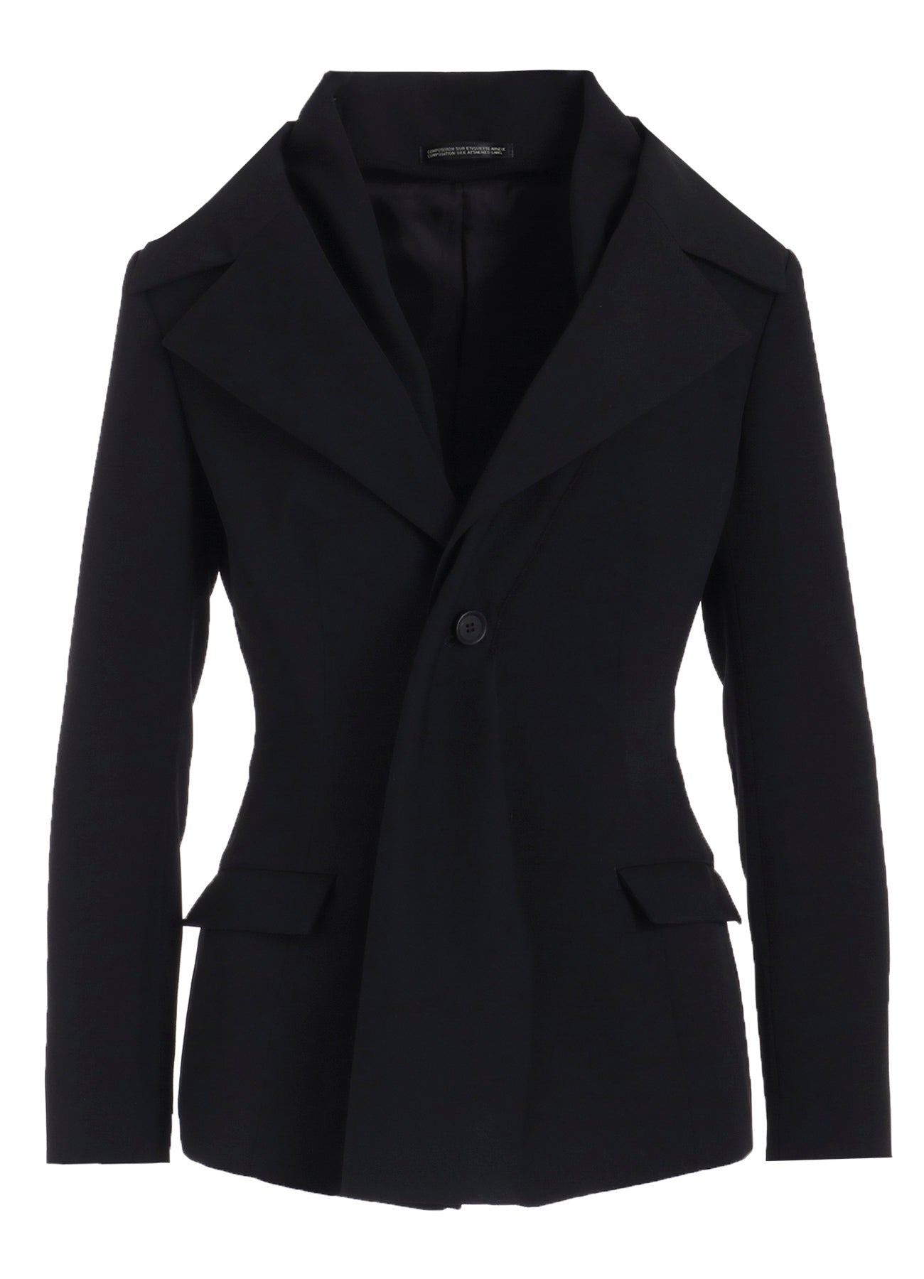 Ce stole jacket utilise le matériau signature, le gabardine froissé, des collections Yohji Yamamoto. La ligne de cou élégante et le drapé fluide du stole créent une apparence raffinée, appropriée pour de nombreuses occasions.