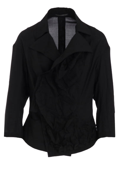 Cet élégant veston léger en soie chiffon met en valeur un processus de froissement unique pour plus de texture. Parfait pour les tenues formelles des saisons à venir, cet ajout rehausse l'élégance de n'importe quelle tenue. Remarque : le modèle porte un échantillon ; consultez SIZE INFO pour les détails précis du produit.