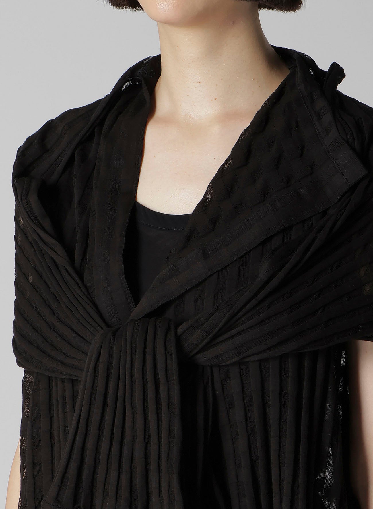 Ce cardigan à motif en grille présente une couche translucide avec un design évasé. Confectionné dans un matériau léger procurant une sensation rafraîchissante, ce cardigan peut être stylisé avec des lignes pures en nouant les manches et porté comme des manches longues. Les images des modèles utilisent des échantillons. - Matériau doux et rafraîchissant. - Silhouette épurée en nouant les manches. - Porté en manches longues ou style noué. - Images des modèles basées sur des échantillons; détails du produit peuvent varier.