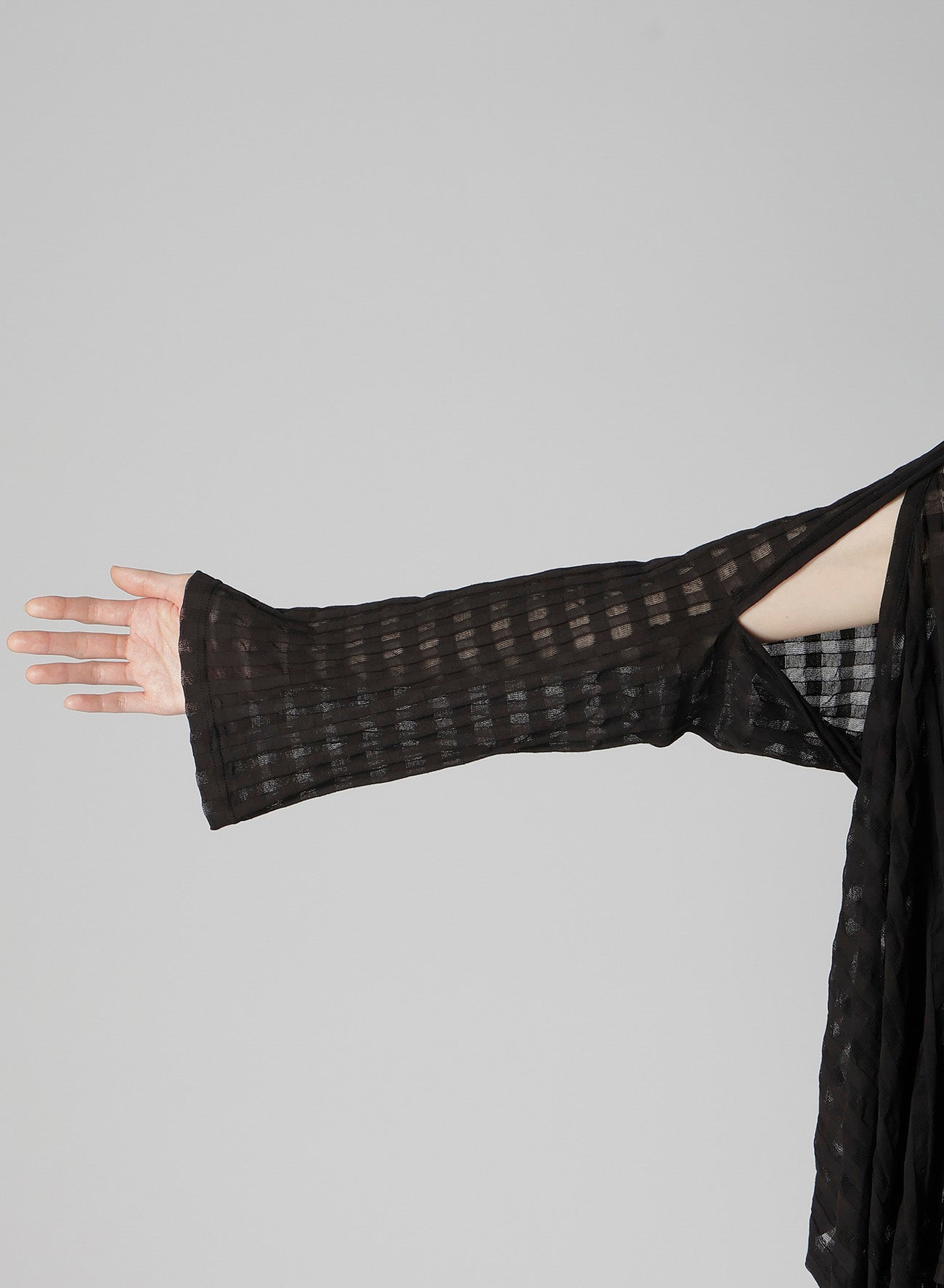 SHEER PLAID JACQUARD LAYERED FLARE CARDIGAN