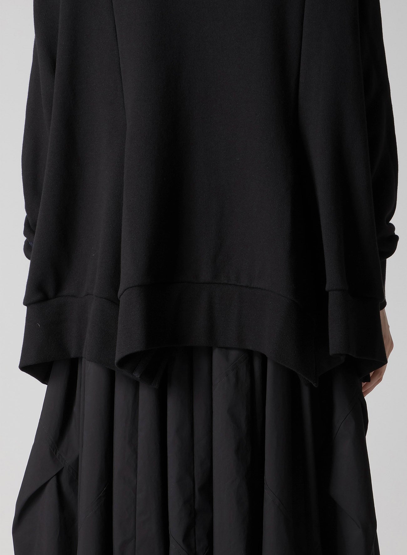 This pullover is crafted from soft, comfortable fleece fabric. Its silhouette places volume at the rear while a strategically positioned zipper adds an airy feel. Versatile for layering with shirts, it also pairs well with wide-leg pants. Note, sample images may show differences from actual goods. Refer to SIZE INFO for details.
