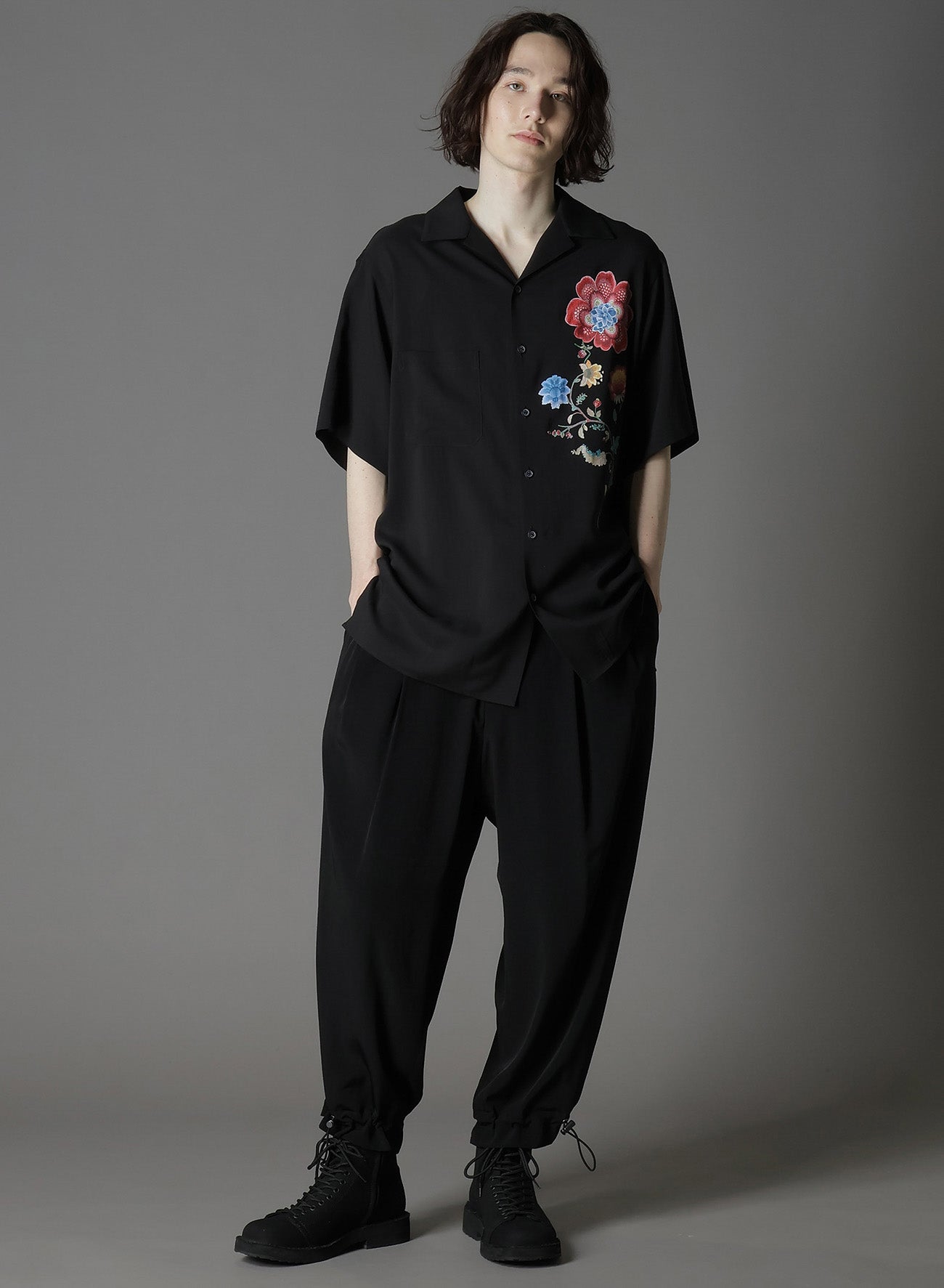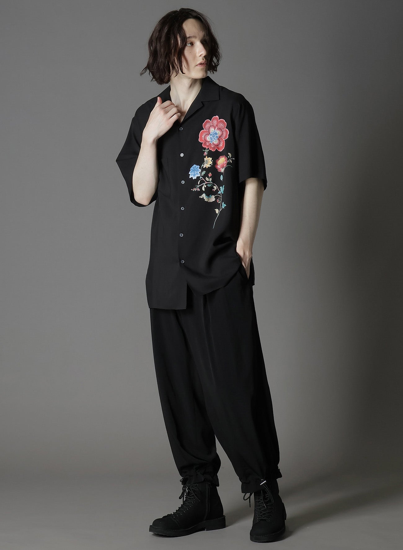 La collection printemps/été 2025 de Ground Y présente une chemise aloha à manches courtes avec un graphique vif et frappant sur la poitrine. Le graphique de la saison, "Chūka Hana", est imprimé sur un tissu léger et doux au toucher. Ce design exclusif est disponible uniquement dans les magasins Ground Y.