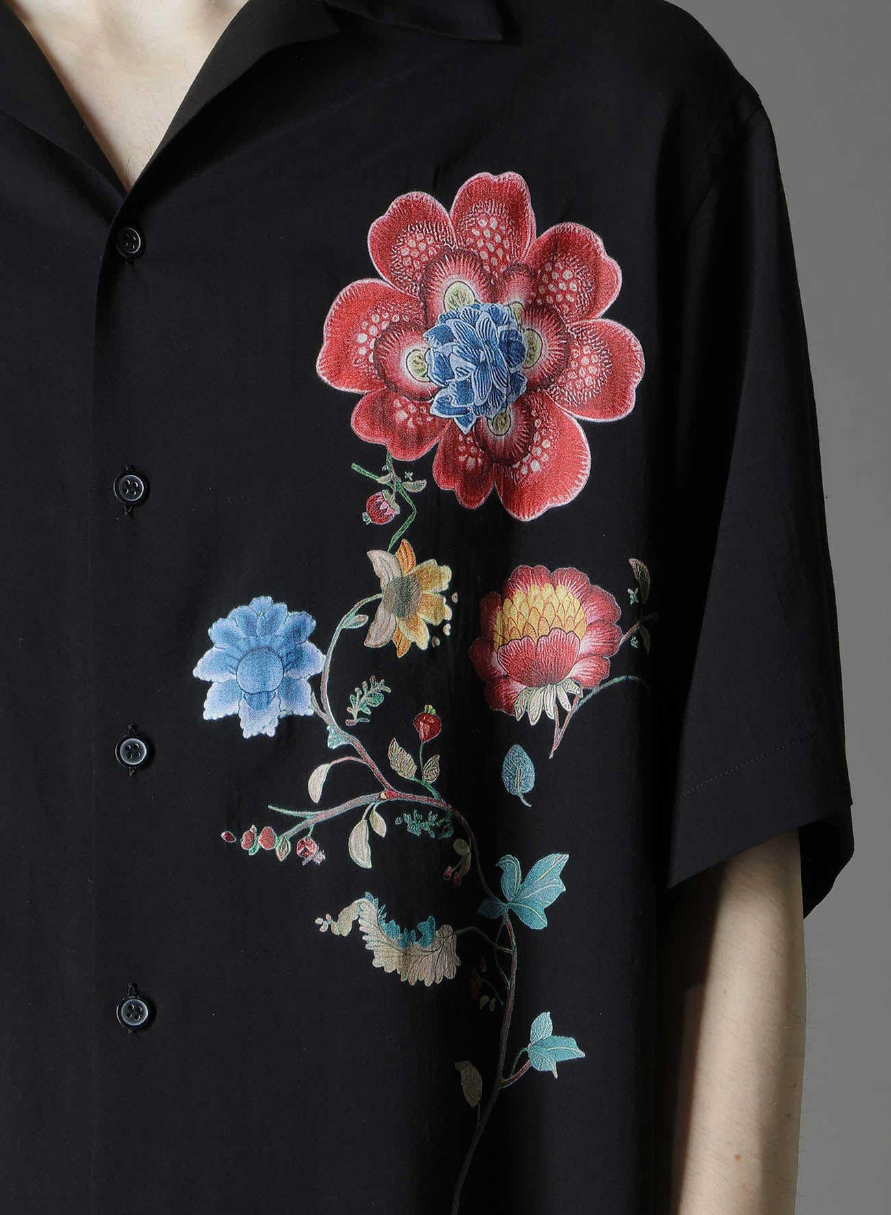 CELLULOSE LAWN CHINESE FLOWER ALOHA SHIRT