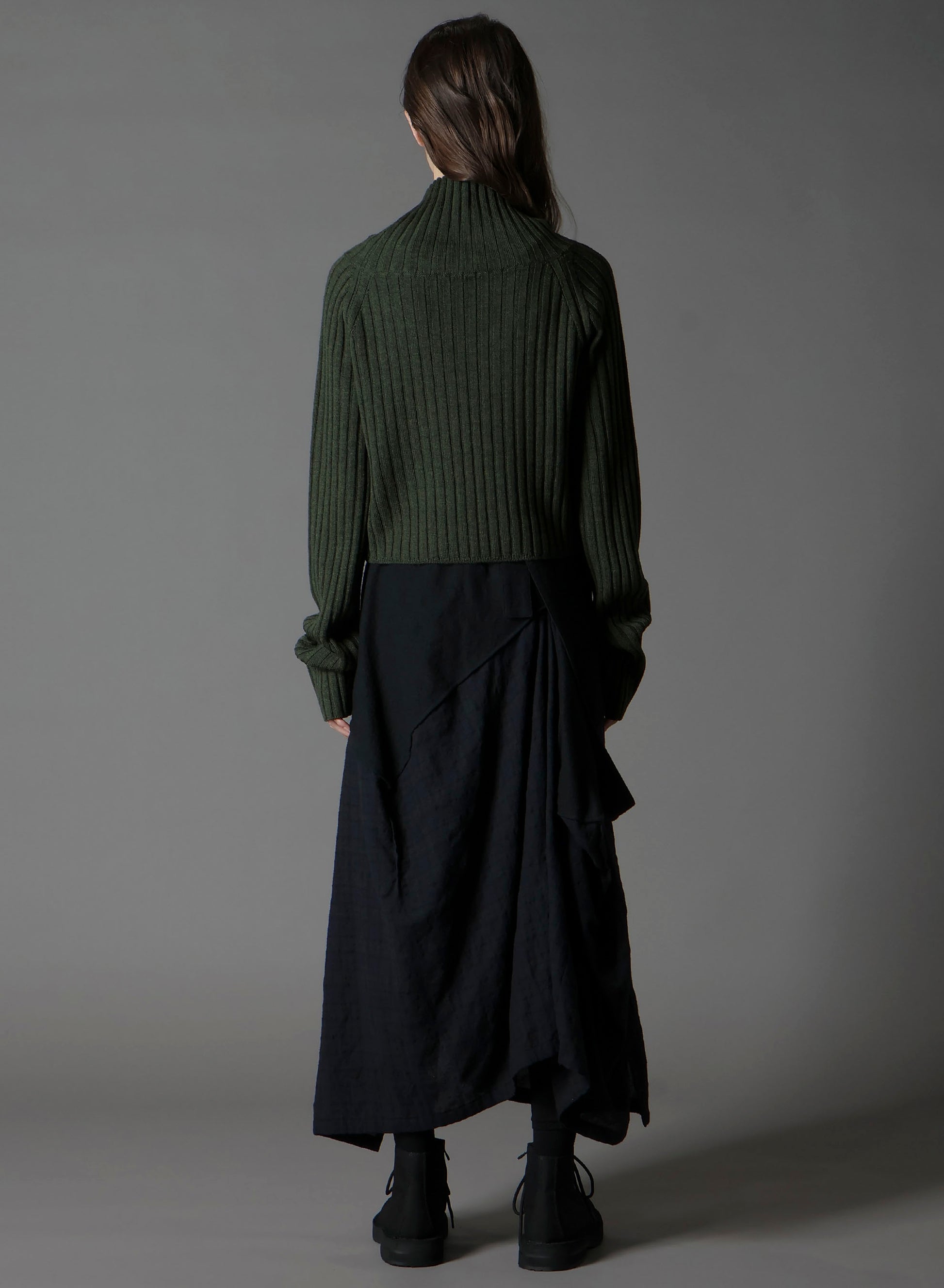 FINE MERINO WOOL RIBBED RAGLEN SHORT LENGTH TURTLE NECK