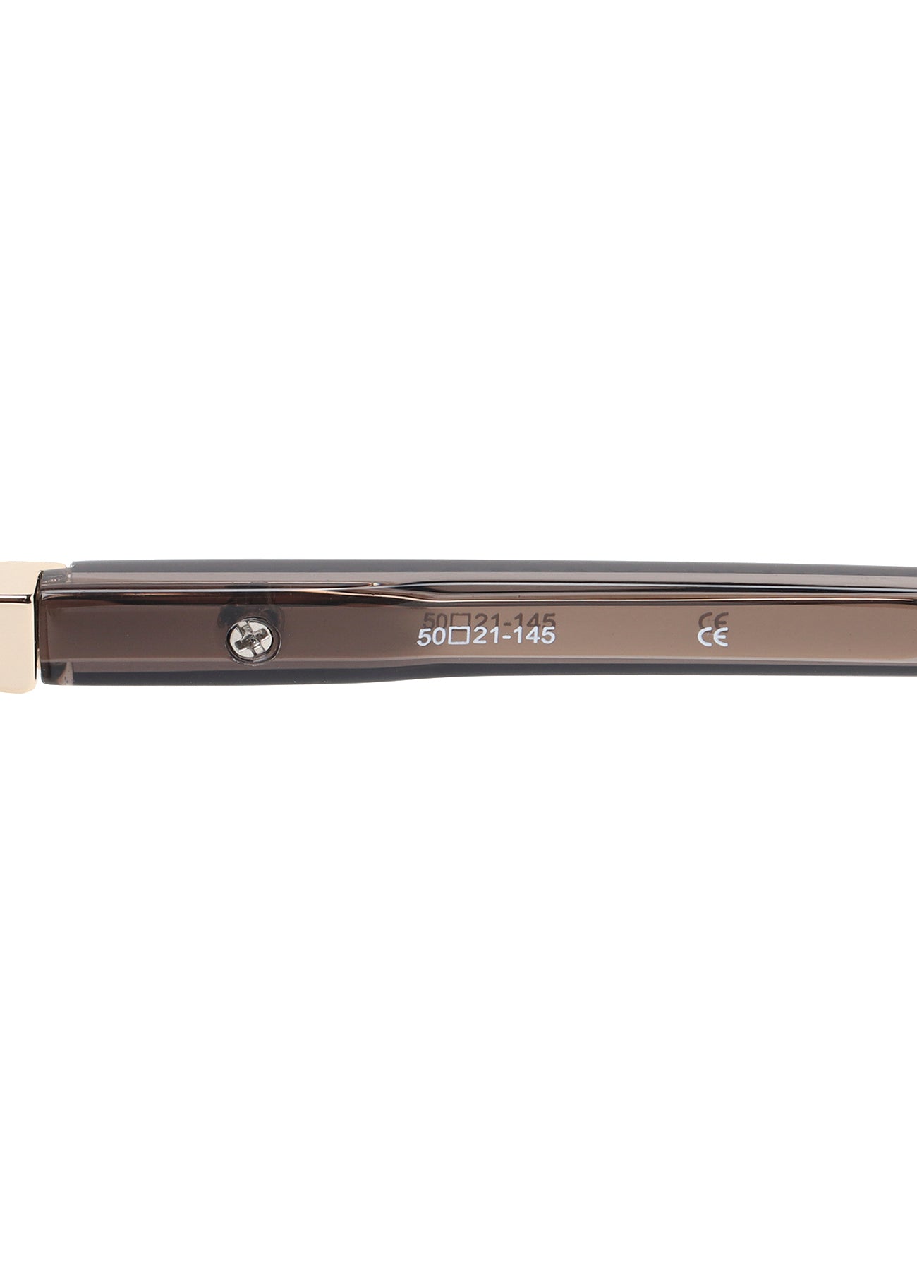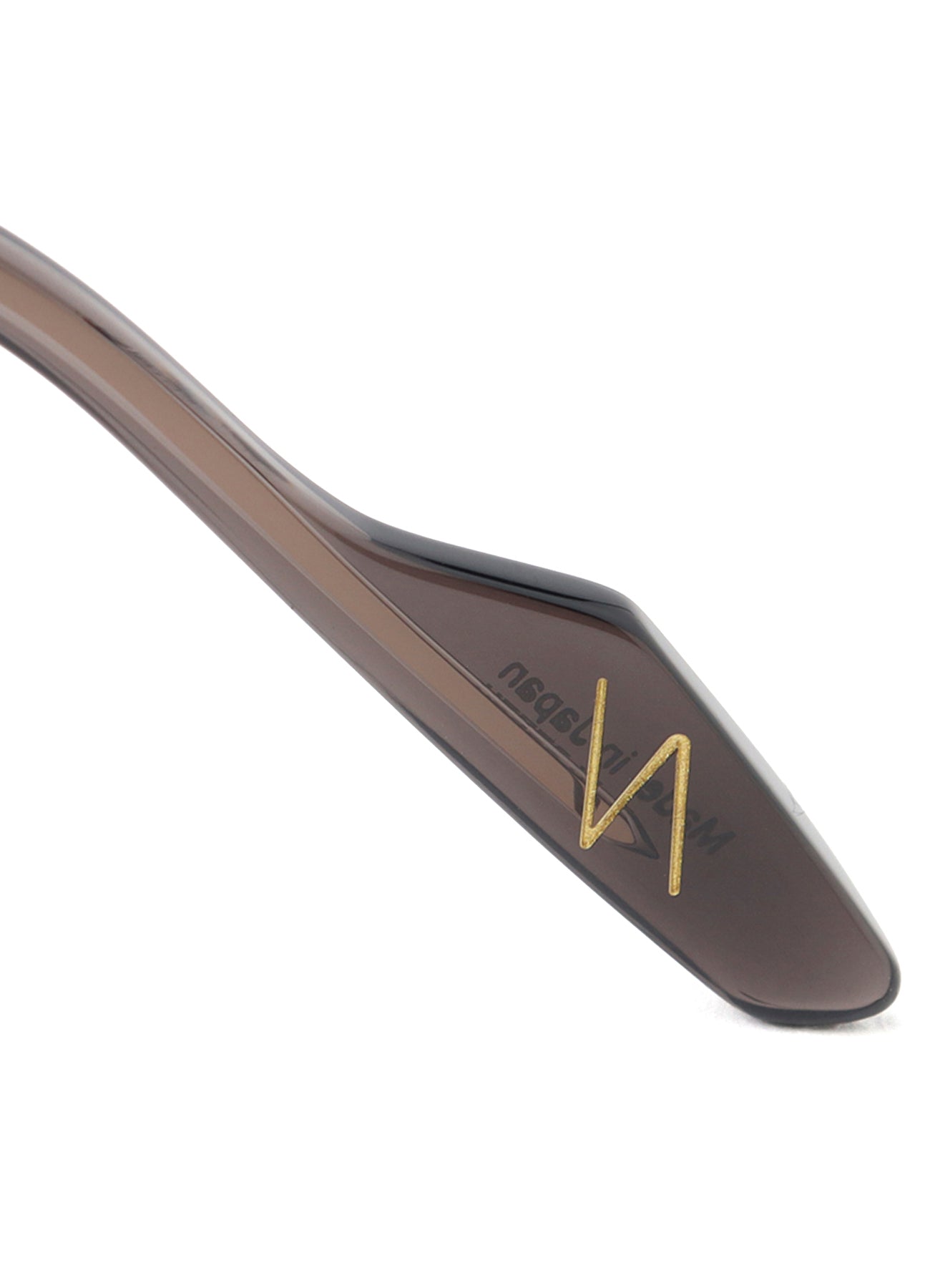 "The sophisticated combination of a front top bar and metal rim creates a linear yet deep appearance. A 3D block logo subtly accentuates the rim, while slim acetate temples add a refined touch to this modish piece.