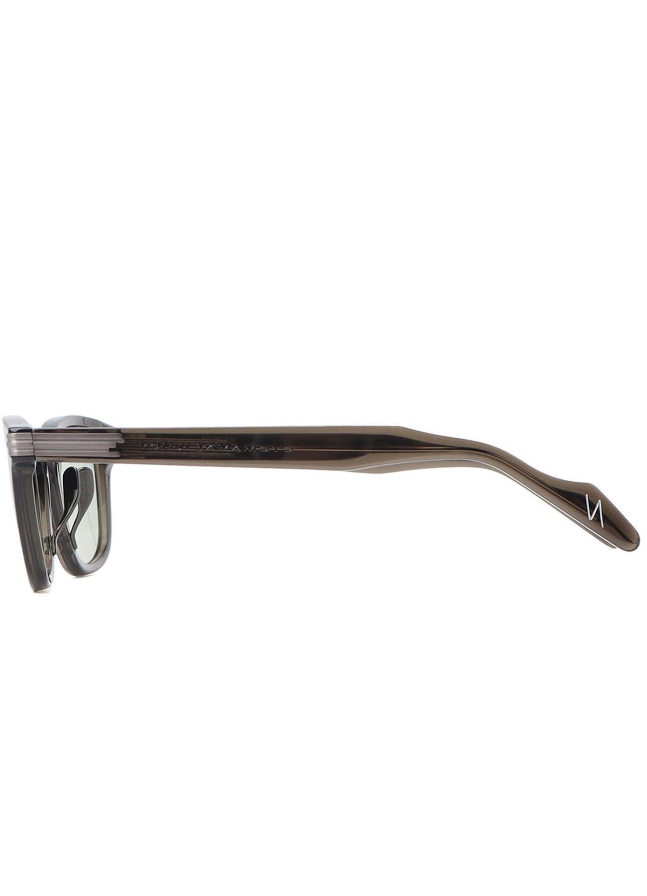 "Crafted from high-quality acetate, this eyeglass frame boasts a distinctive design with random metal stripes cascading from the frame's center to the temple, enhancing its unique character. A bold metallic logo is etched on the side, balancing subtle assertiveness with a fashionable presence.