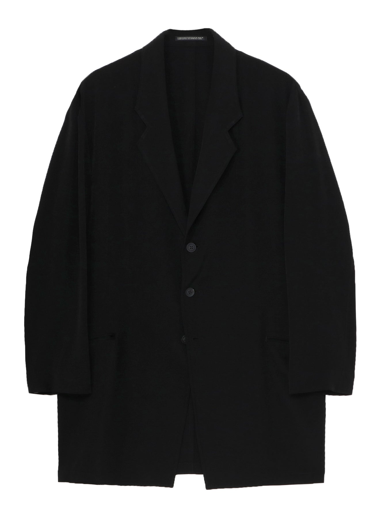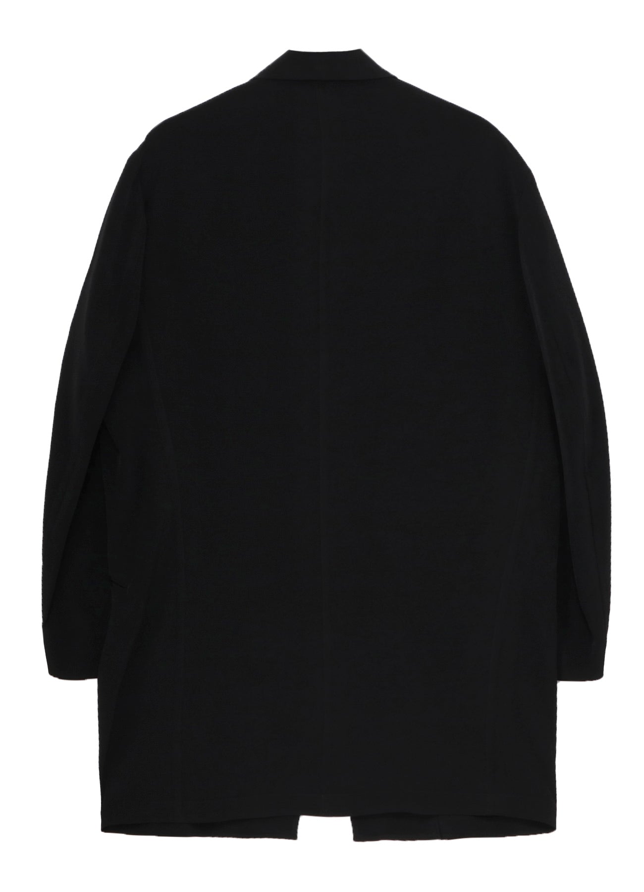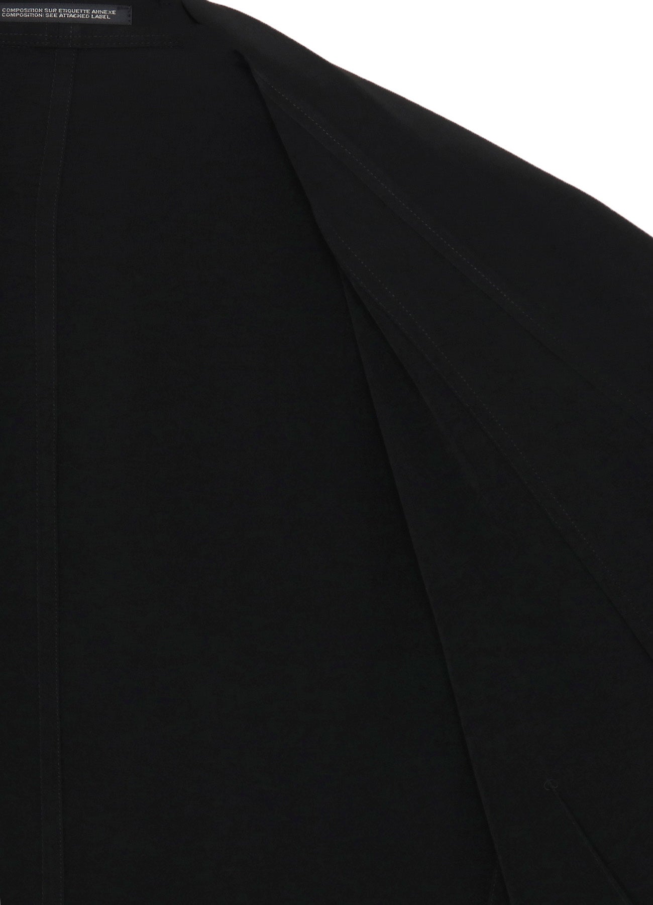 Cette veste combine triacétate et polyester avec un design de revers unique. Le matériau, une signature de Yohji Yamamoto, est reconnu pour son éclat doux et sa sensation luxueuse. Le tissage en toile plate, utilisant des fils de chaîne fortement torsadés, confère à la veste une drapée riche.