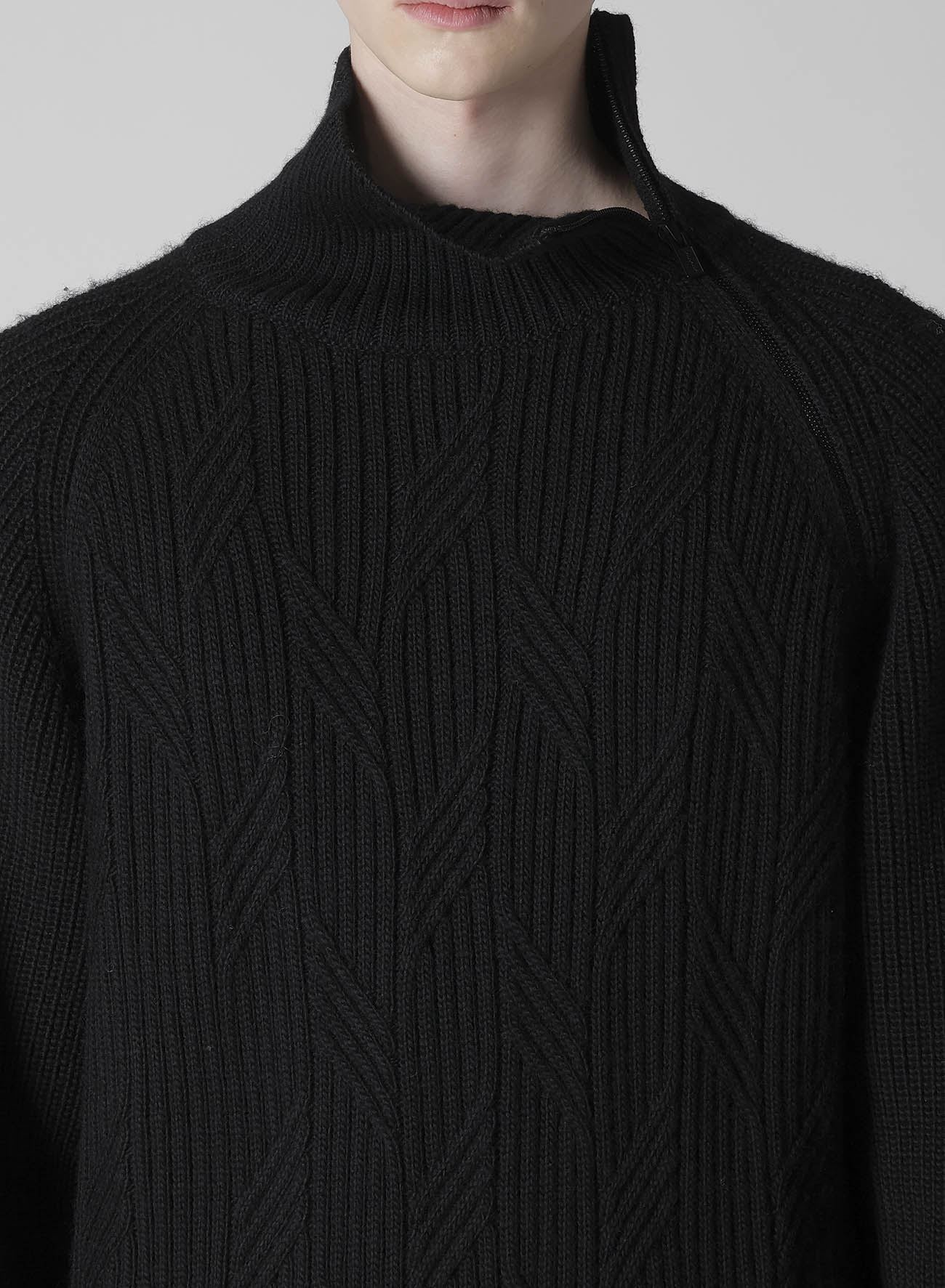 5G1P CABLE+CARDIGAN STITCH SIDE ZIP HIGN NECK PO