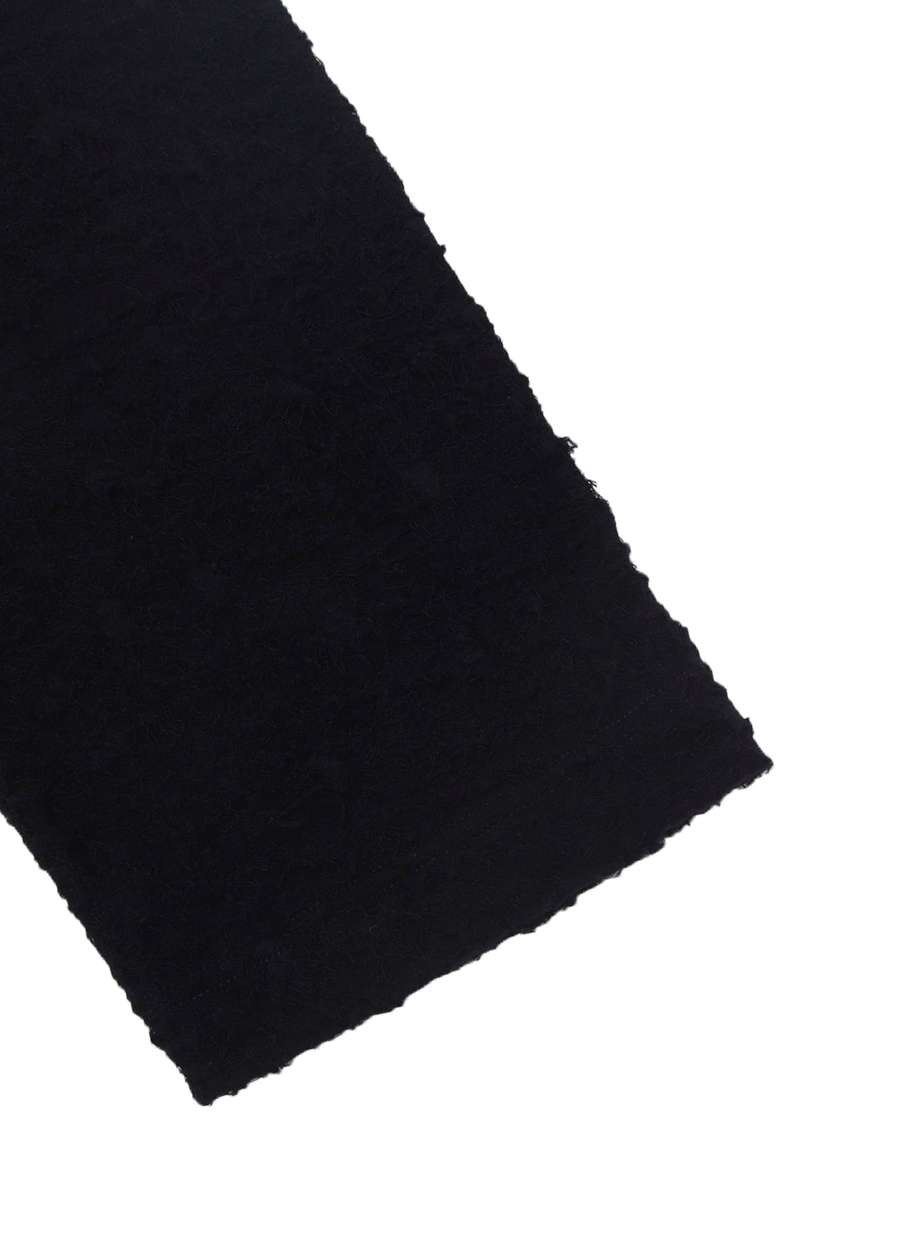 Ce long cardigan sans col est fabriqué en fil de laine à 100% et présente un motif jacquard. Son design affiche un aspect original et usé grâce à l'utilisation du sui-bi, subtilement dissous pour valoriser le caractère du vêtement.