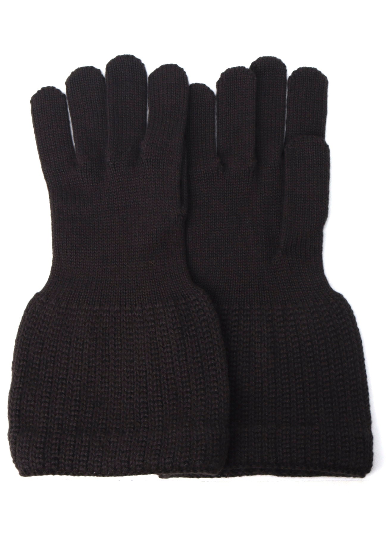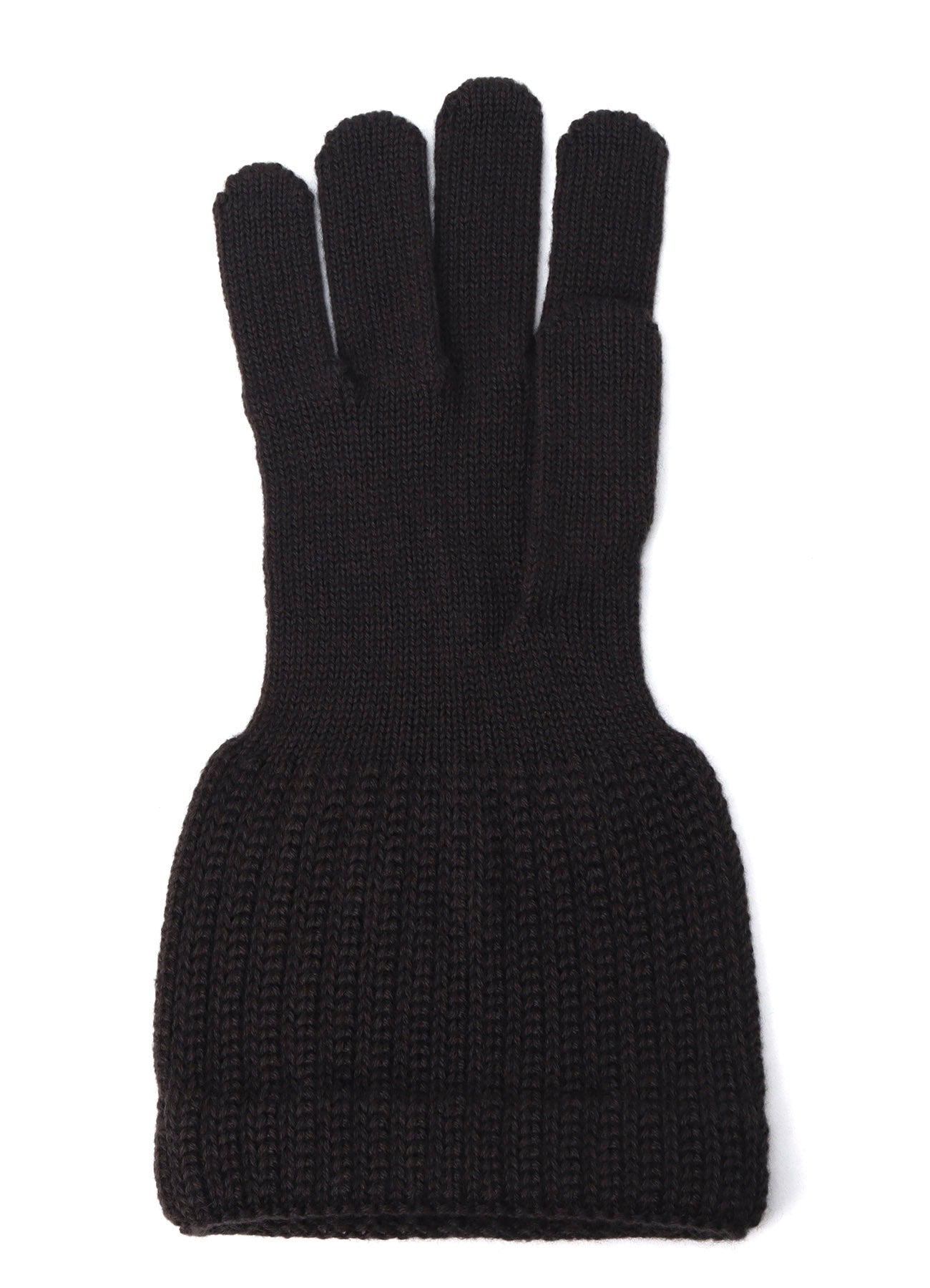 This product is a pair of knit cuffs gloves using a combination of wool and acrylic yarn. The hand section is made with plain stitch, while the cuffs feature a unique ribbed design. The use of different knitting patterns gives these gloves a blend of style and practicality.
