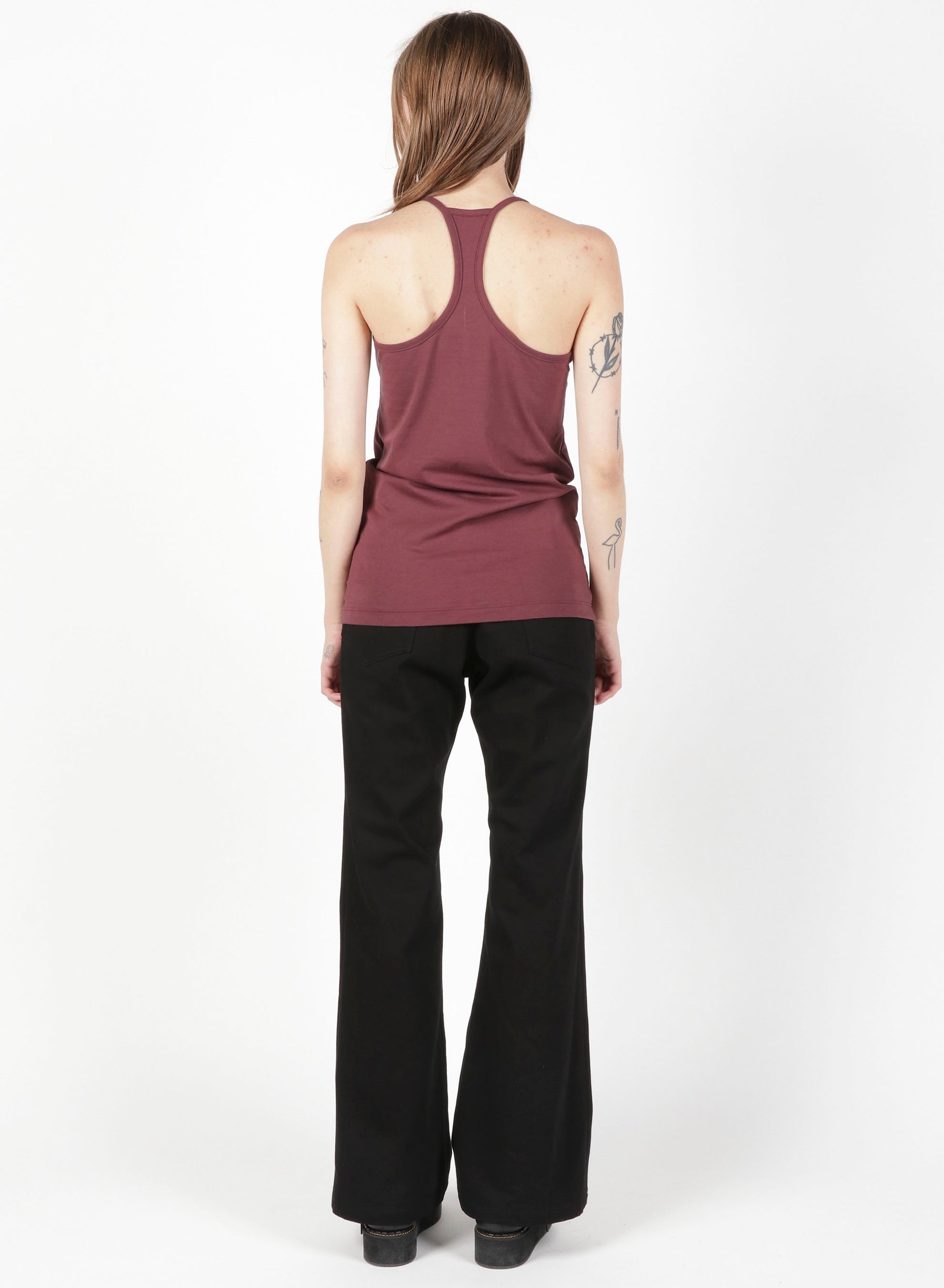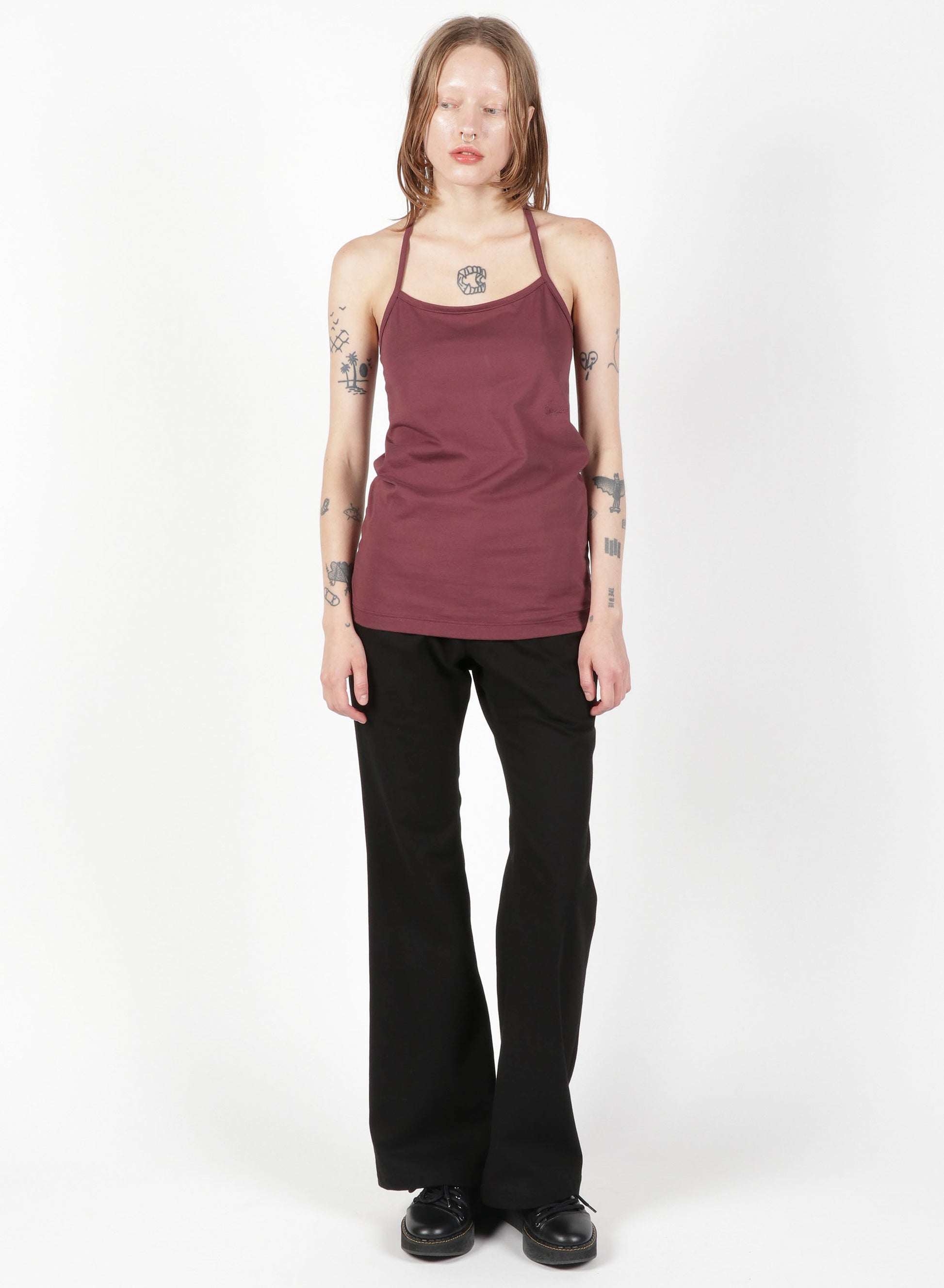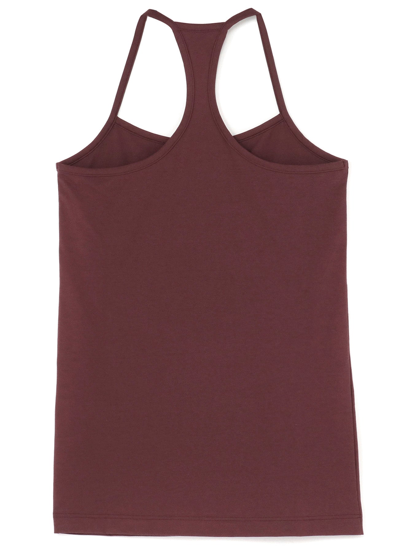 Ce débardeur est fabriqué à l'aide d'une technique de tricot à haute jauge avec un fil épais, ce qui donne un point de couture uni ferme. Le fil subit un traitement pour réduire le peluchage, créant une surface claire et une texture lisse. Le logo de la marque est subtilement brodé en cursive, ce qui le rend parfait comme sous-vêtement.