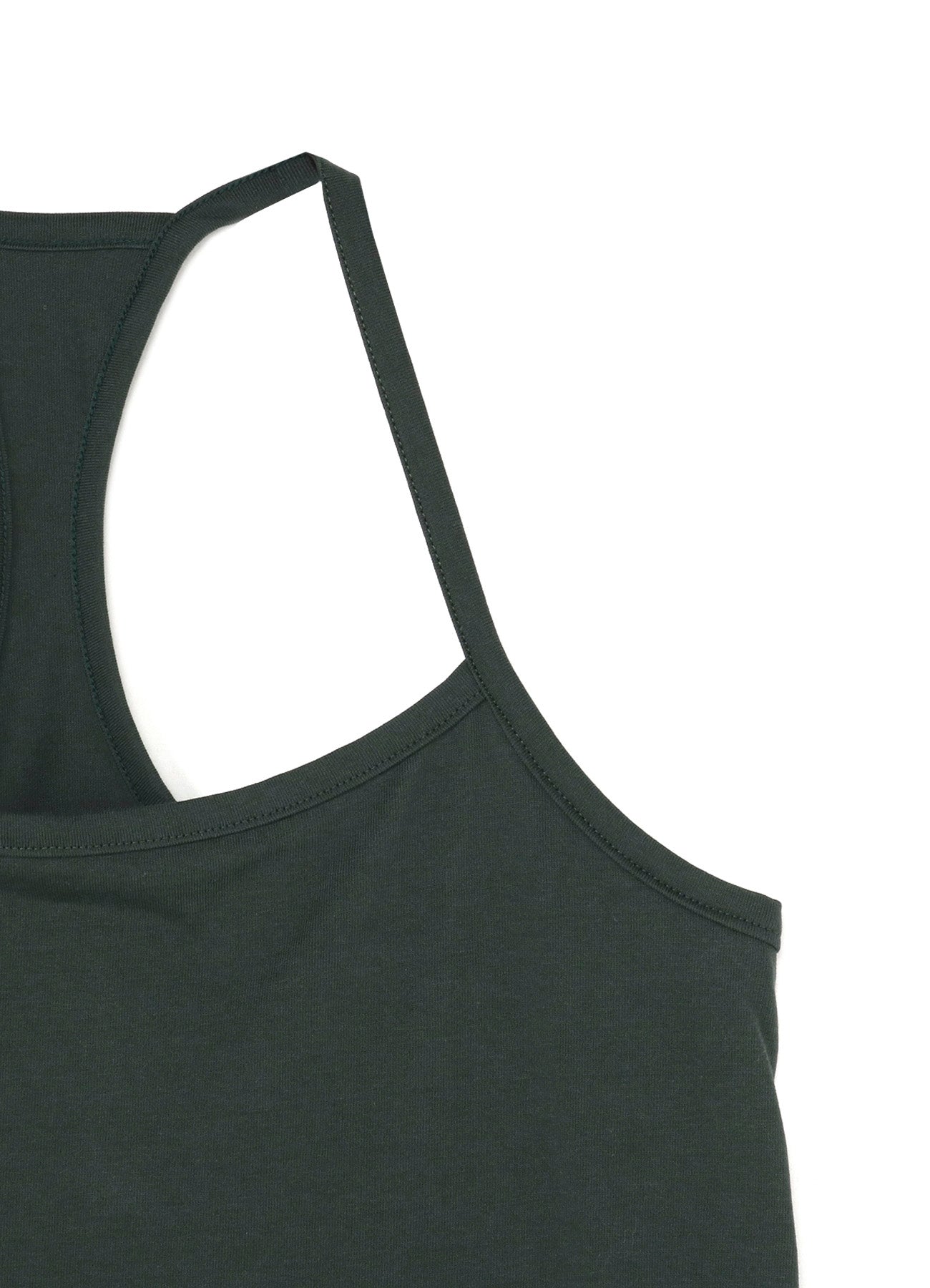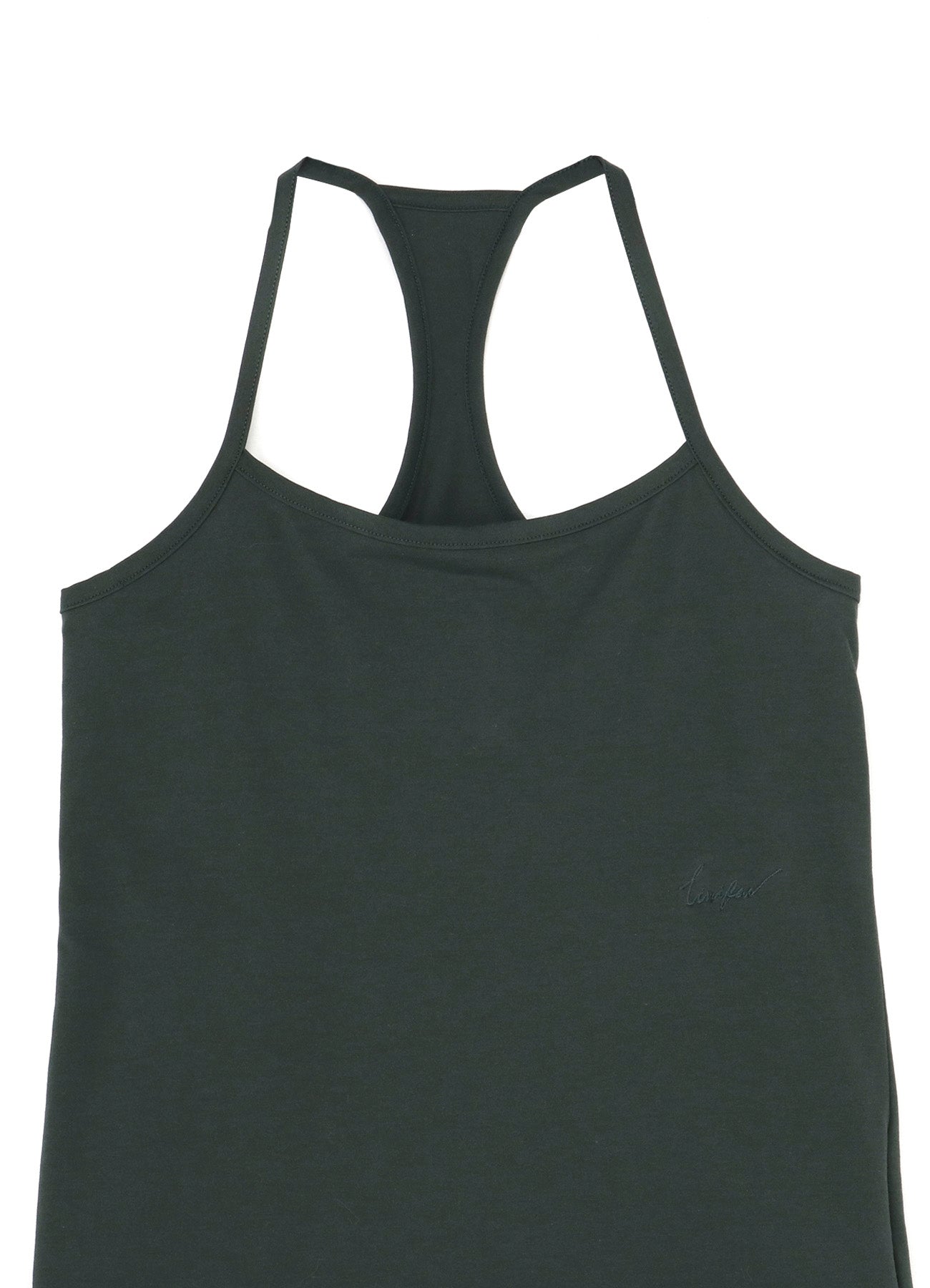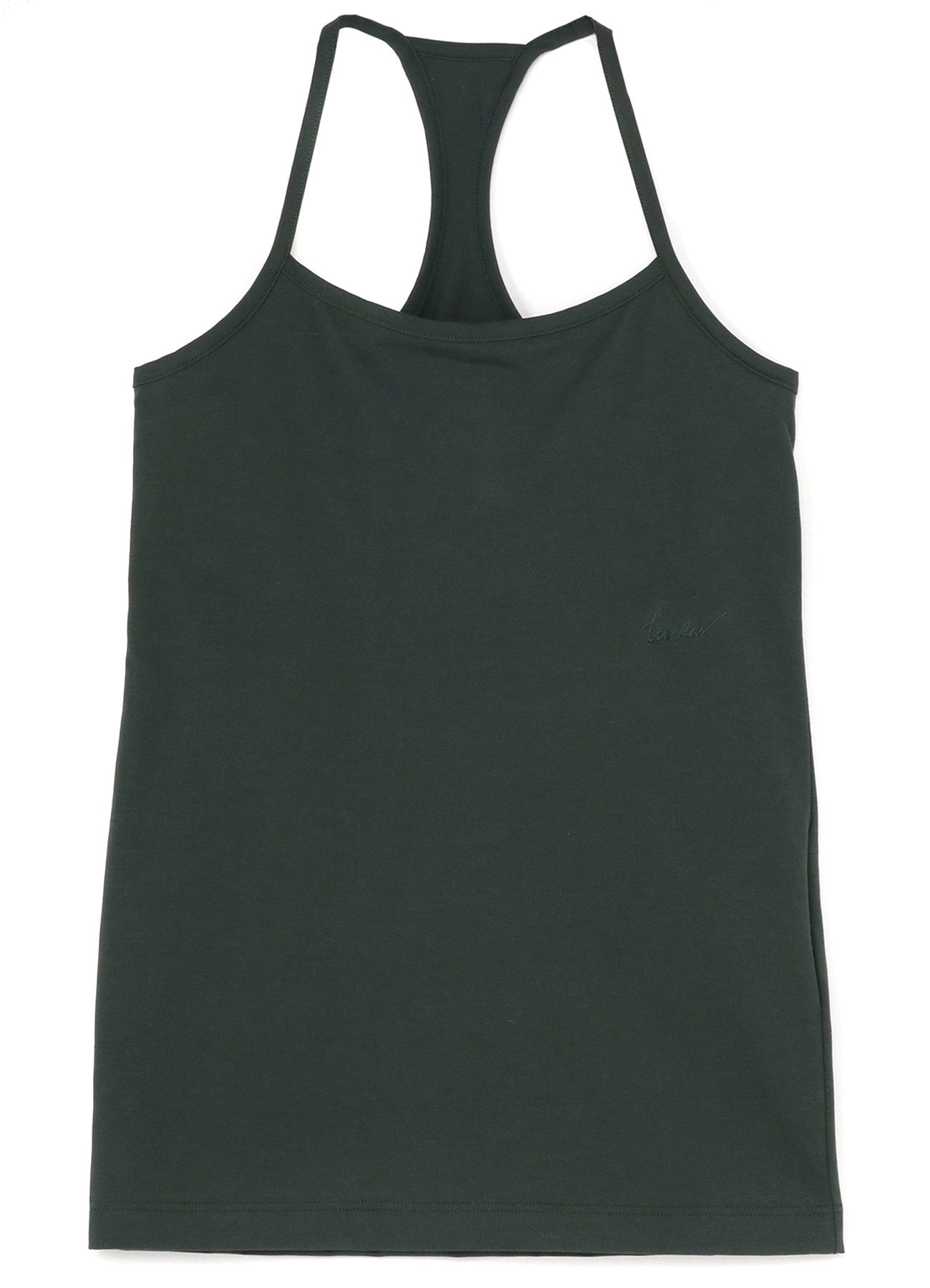 Ce débardeur est fabriqué à l'aide d'une technique de tricot à haute jauge avec un fil épais, ce qui donne un point de couture uni ferme. Le fil subit un traitement pour réduire le peluchage, créant une surface claire et une texture lisse. Le logo de la marque est subtilement brodé en cursive, ce qui le rend parfait comme sous-vêtement.