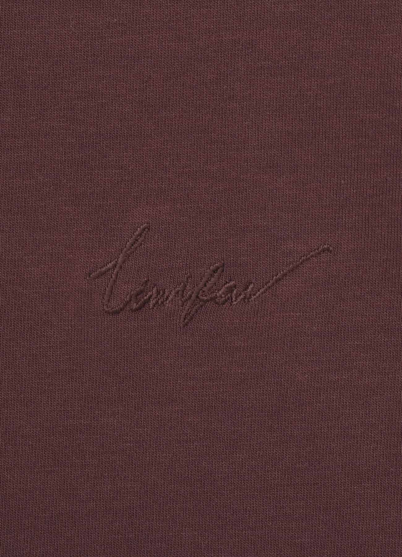 Un haut à manches longues avec une silhouette simple, fabriqué à partir de fil épais tricoté à haute jauge pour un point uni ferme. Le fil est traité pour réduire le peluchage, lui donnant une surface claire et lisse. Le logo de la marque est subtilement brodé en cursive à un endroit délicat. Parfait pour toute tenue décontractée.