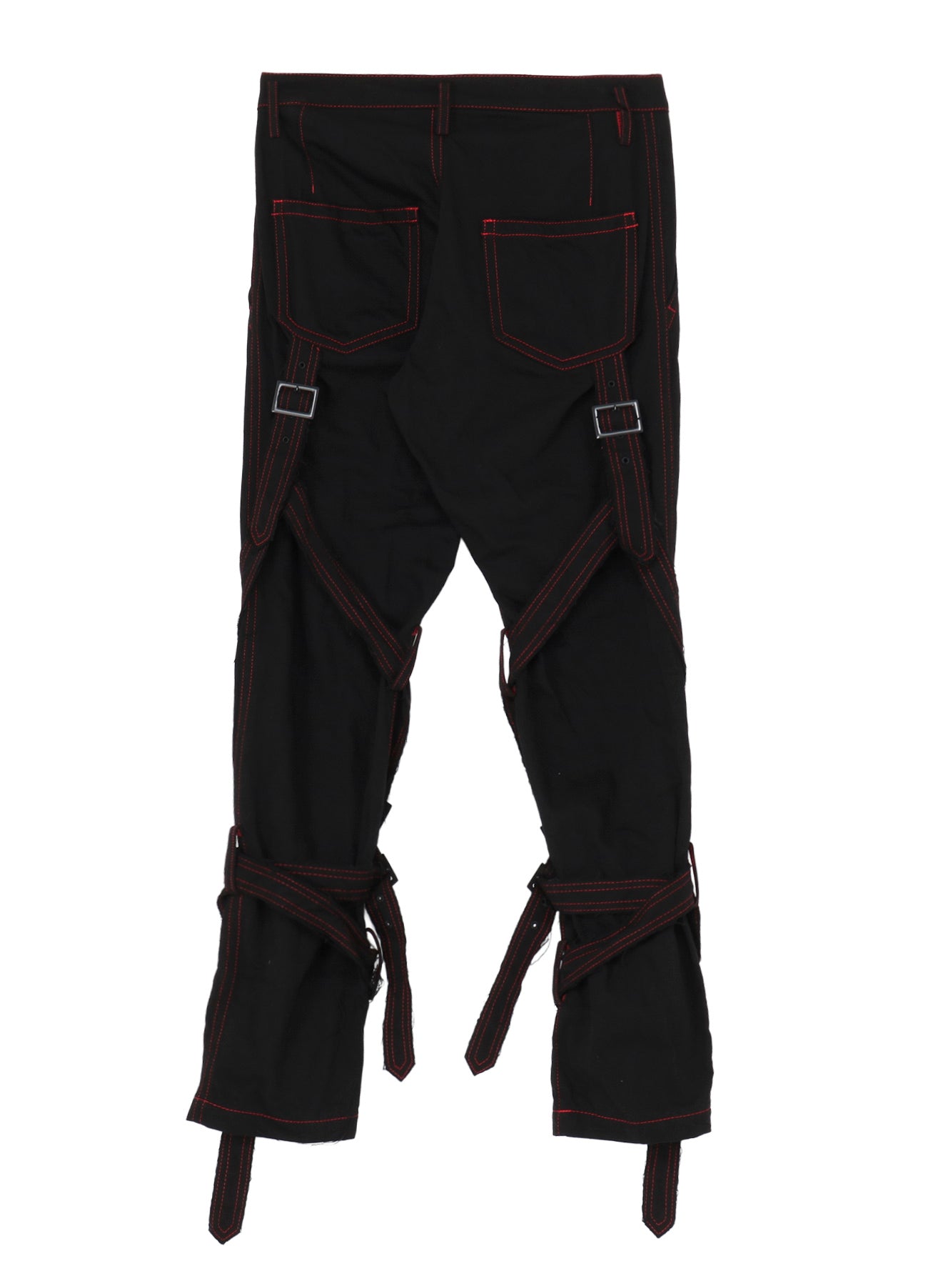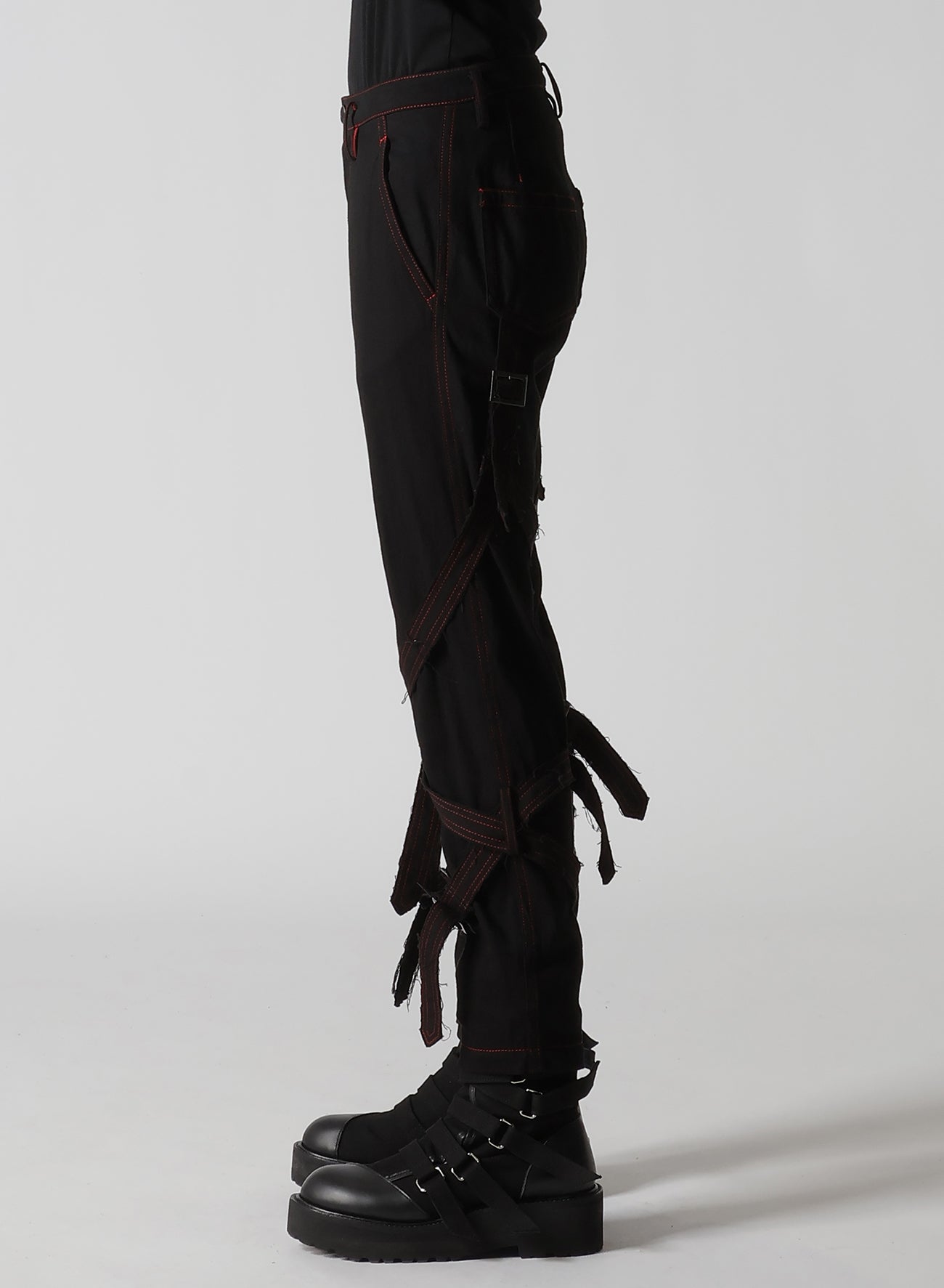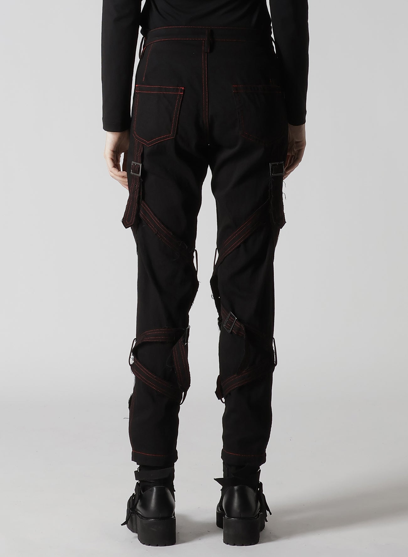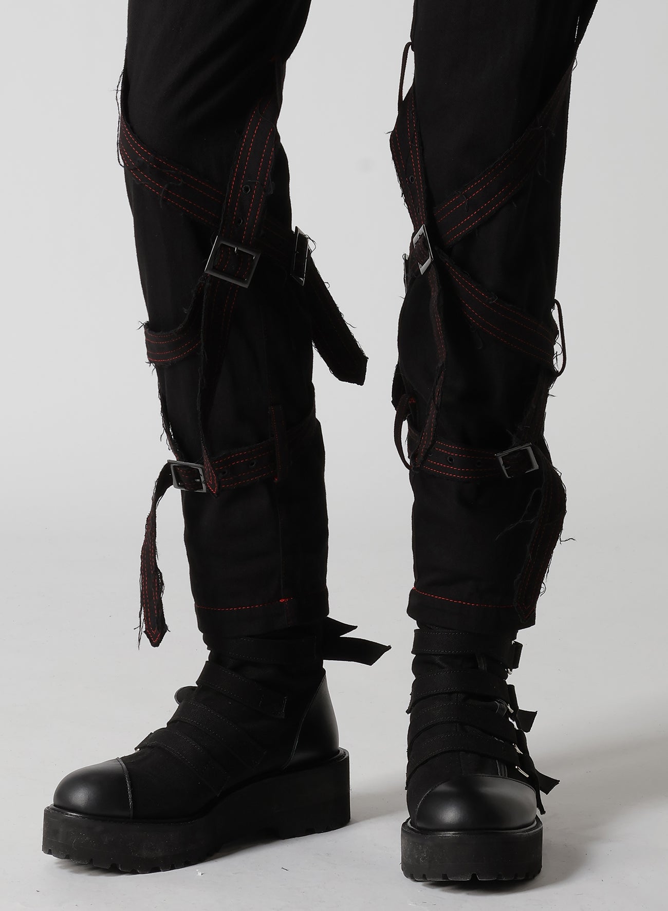 Ce pantalon en denim noir intense présente une texture unique et des plis naturels. Le design bord coupé crée des effilochages variés pour un look sophistiqué et rebelle. Doté d'une silhouette ajustée et d'une ceinture, il reflète le style punk de LIMI feu.