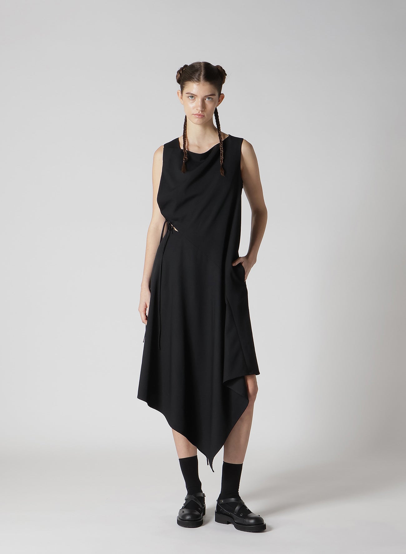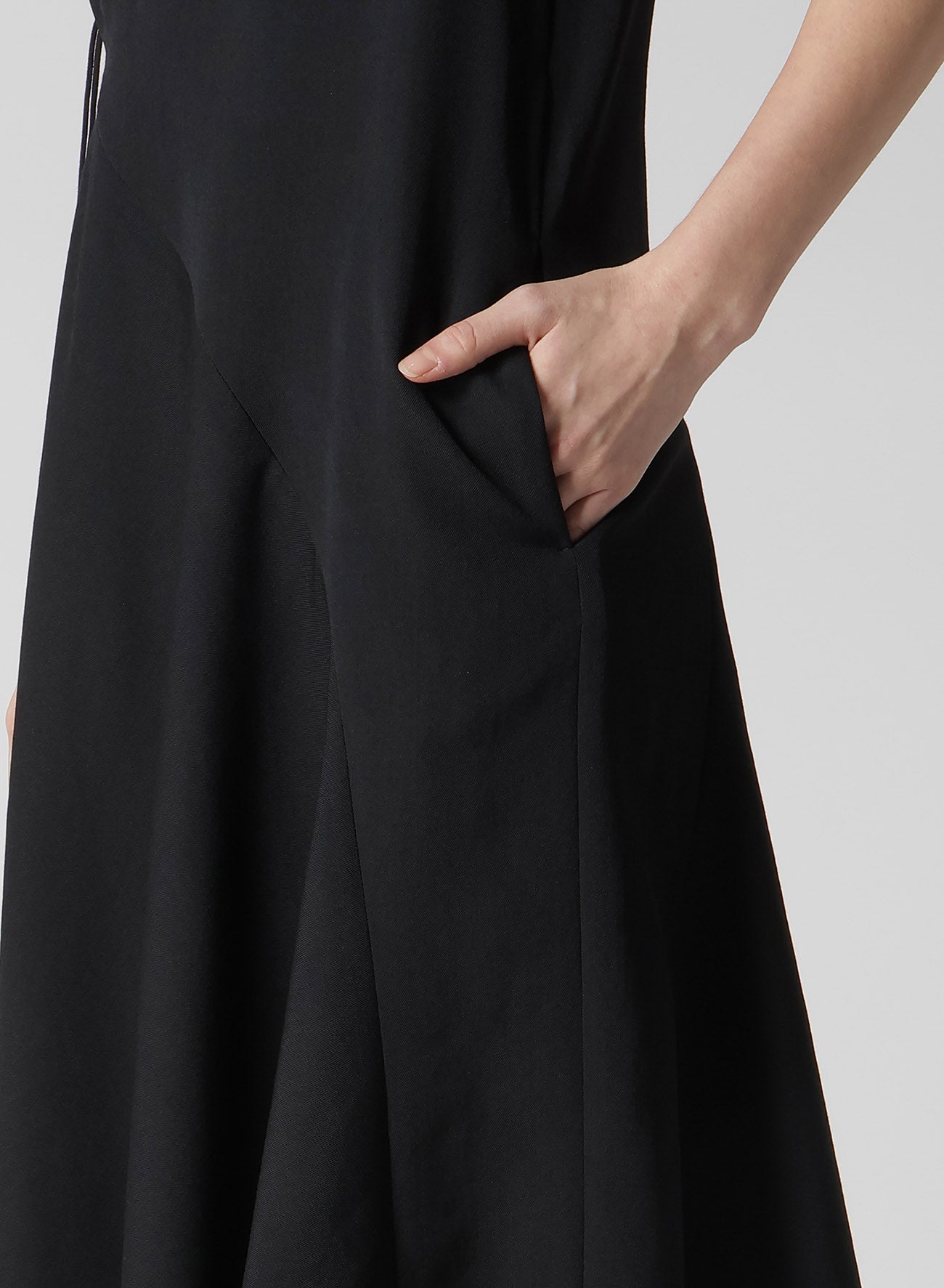 Une robe en gabardine avec une belle draperie et une texture douce. Le laçage distinctif à la taille gauche ajoute une touche unique. Profitez de styles variés en l'associant avec différents hauts. Adaptée à une utilisation toute l'année grâce à son motif de tissu polyvalent.