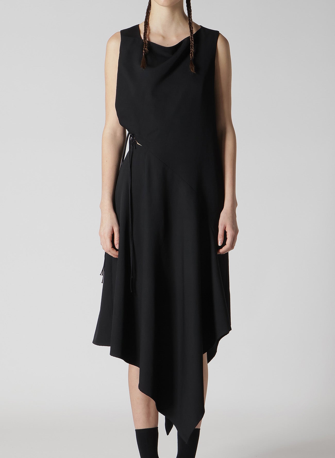 WOOL GABARDINE WAIST LAVE-UP DRESS