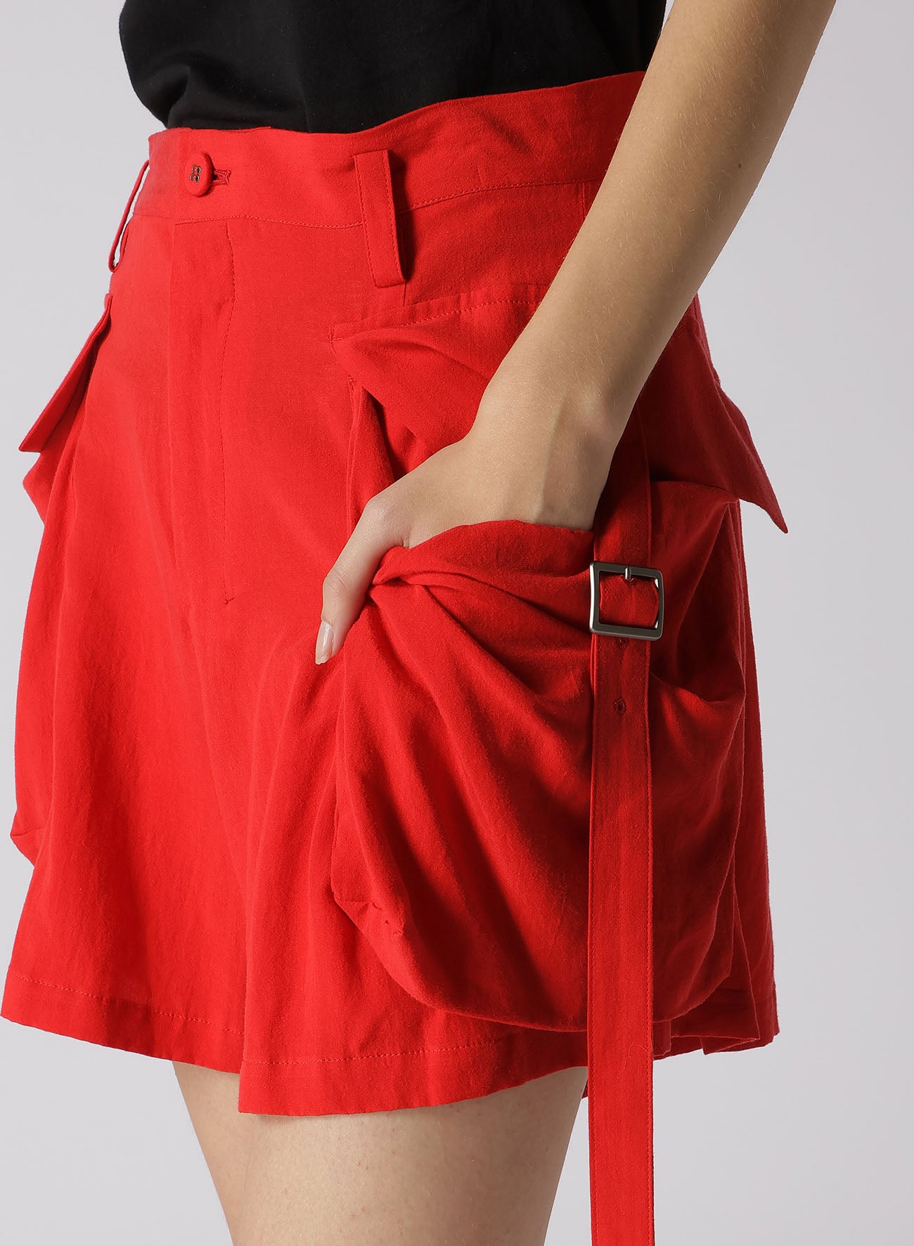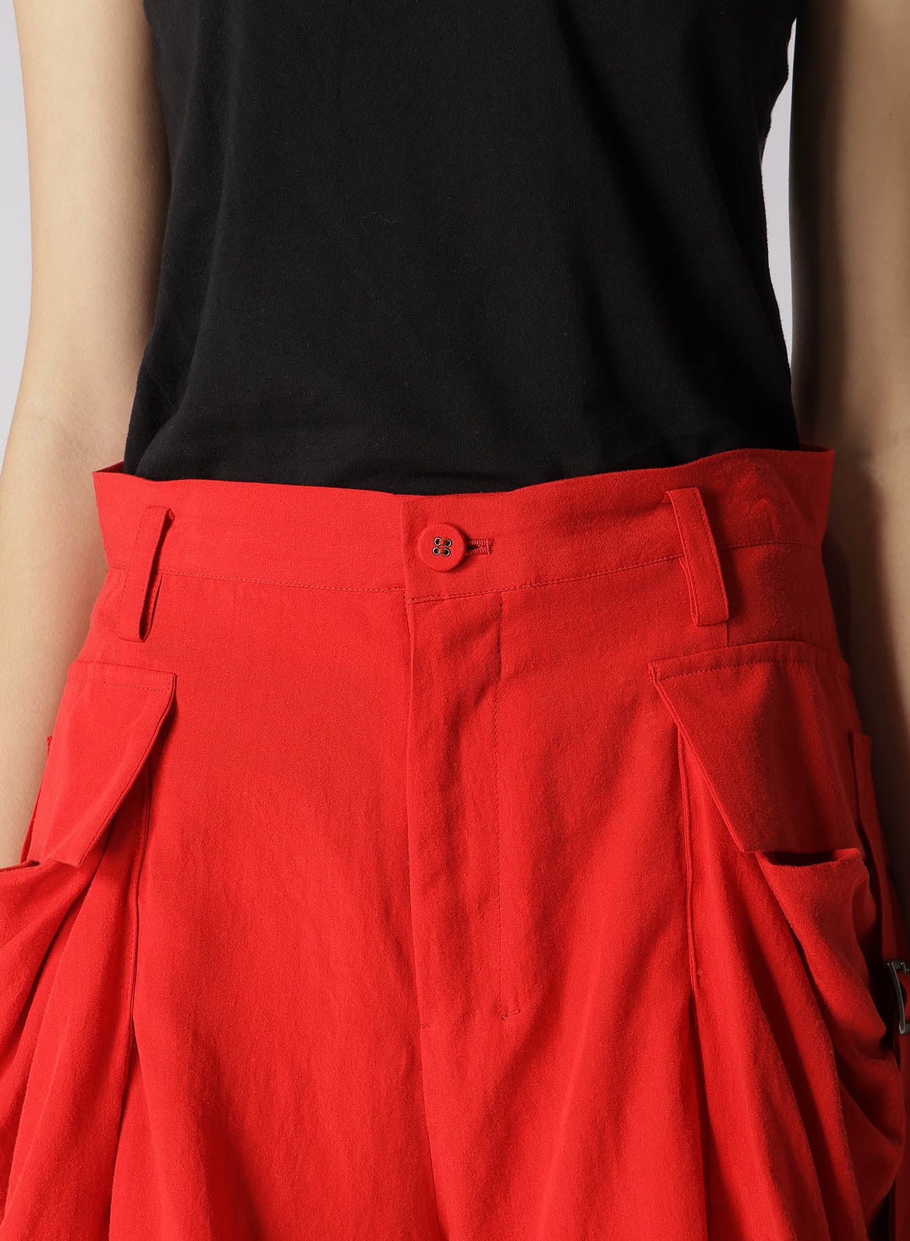 Un tissu doux, légèrement brillant avec une excellente draperie. Les grandes poches latérales mettent en valeur le design signature de LIMI feu, en faisant une pièce polyvalente malgré sa couleur vive. Il se marie bien avec des hauts surdimensionnés, servant d'accent dans diverses tenues.