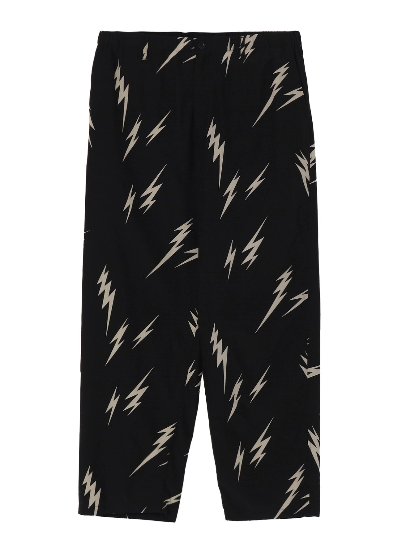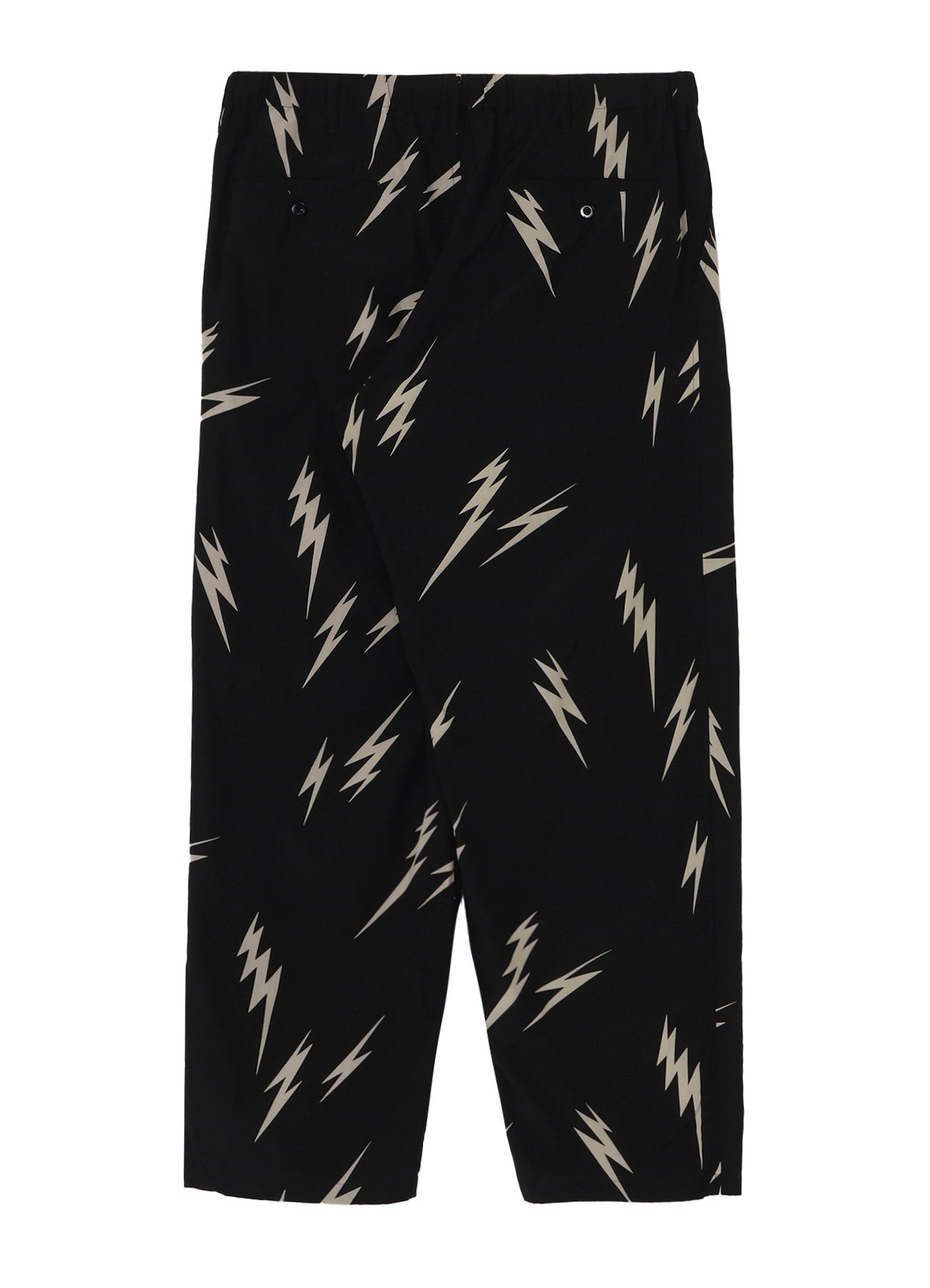 Y's for men collaborates with MASSES to present trousers with a lightning pattern. The fabric features a striped dobby texture, enhanced by a bleach-printed lightning design, and pairs perfectly with a matching shirt for a coordinated look. Model images showcase samples, so check the size details for exact specifications.