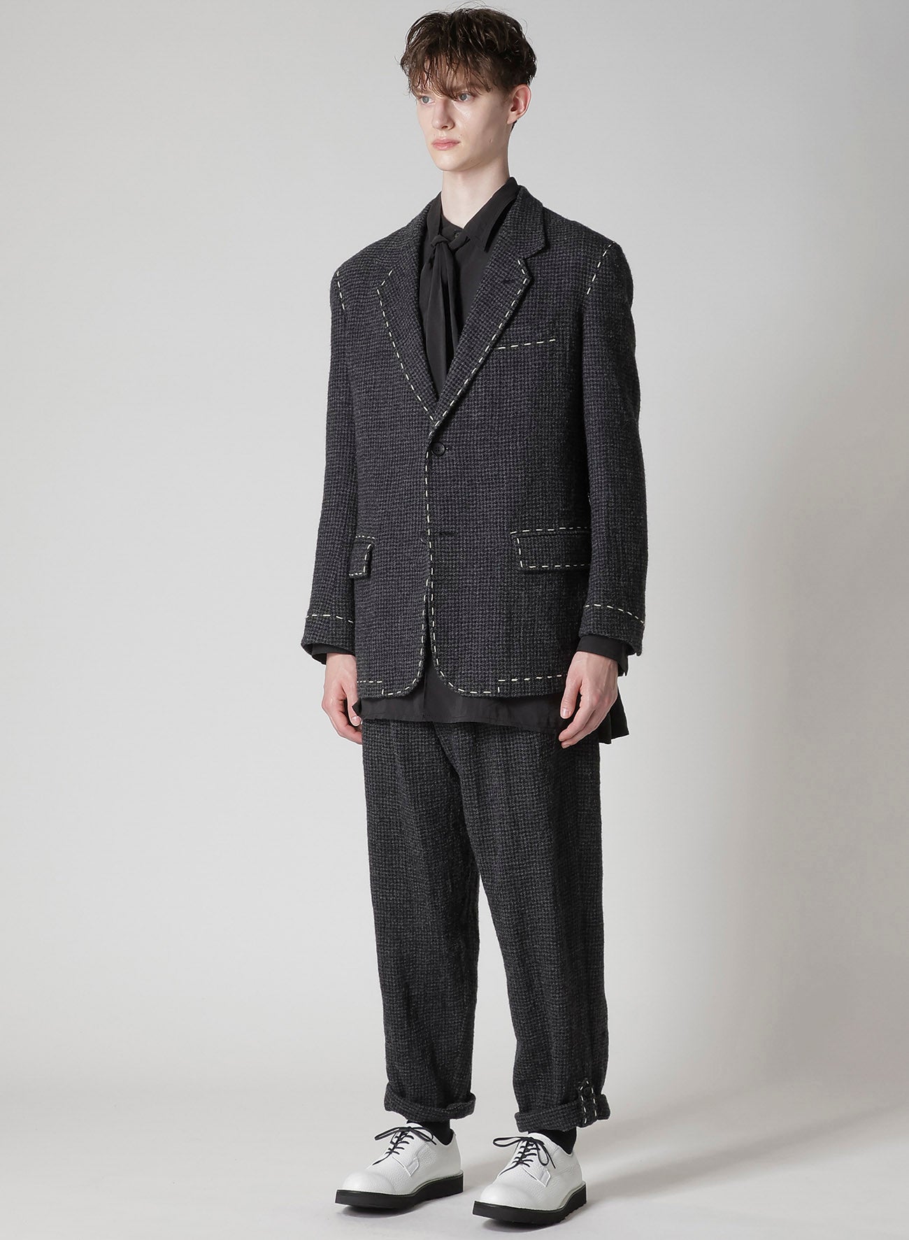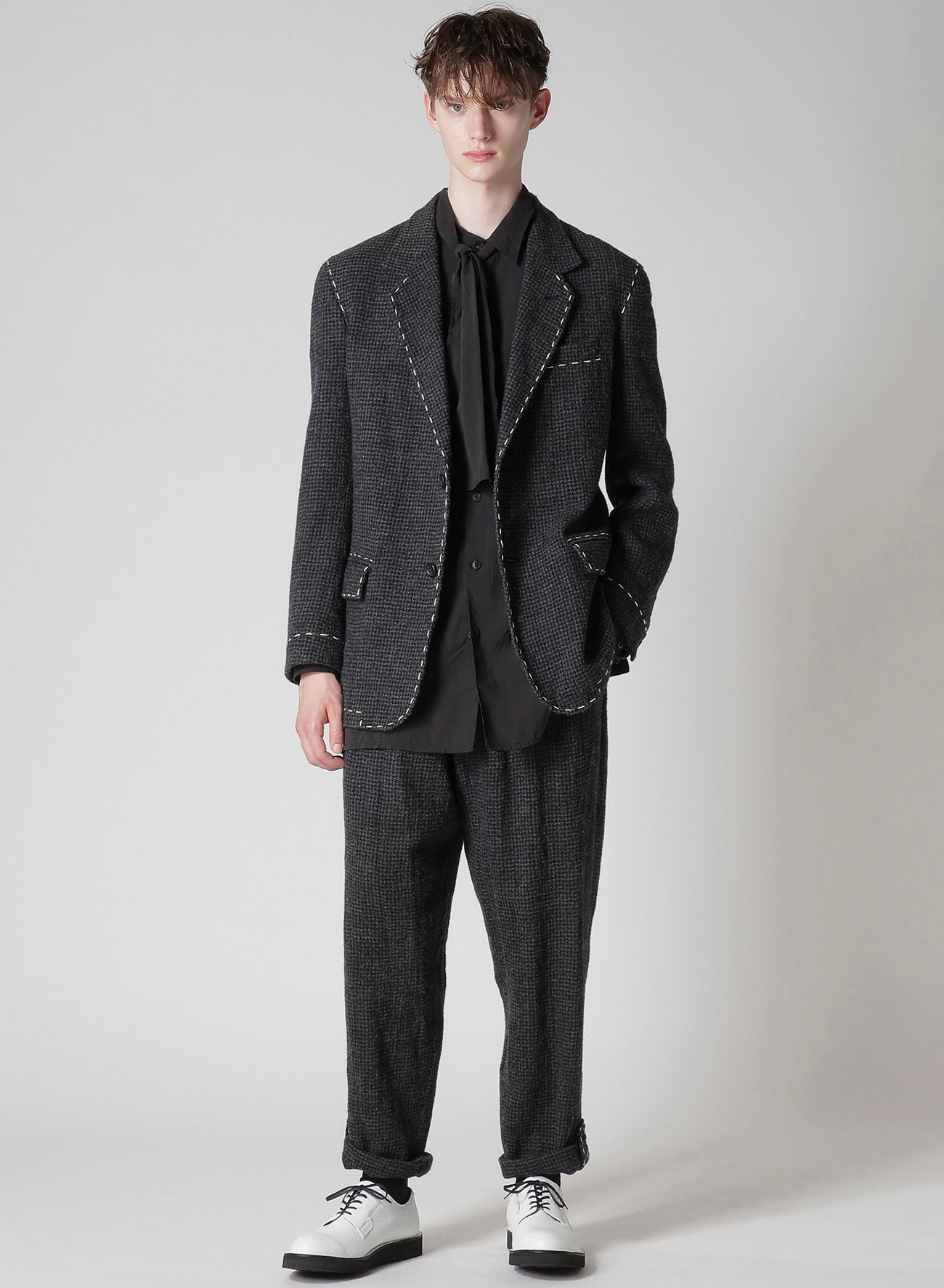 HOUNDSTOOTH 2-BUTTON JACKET WITH HAND STITCH