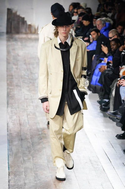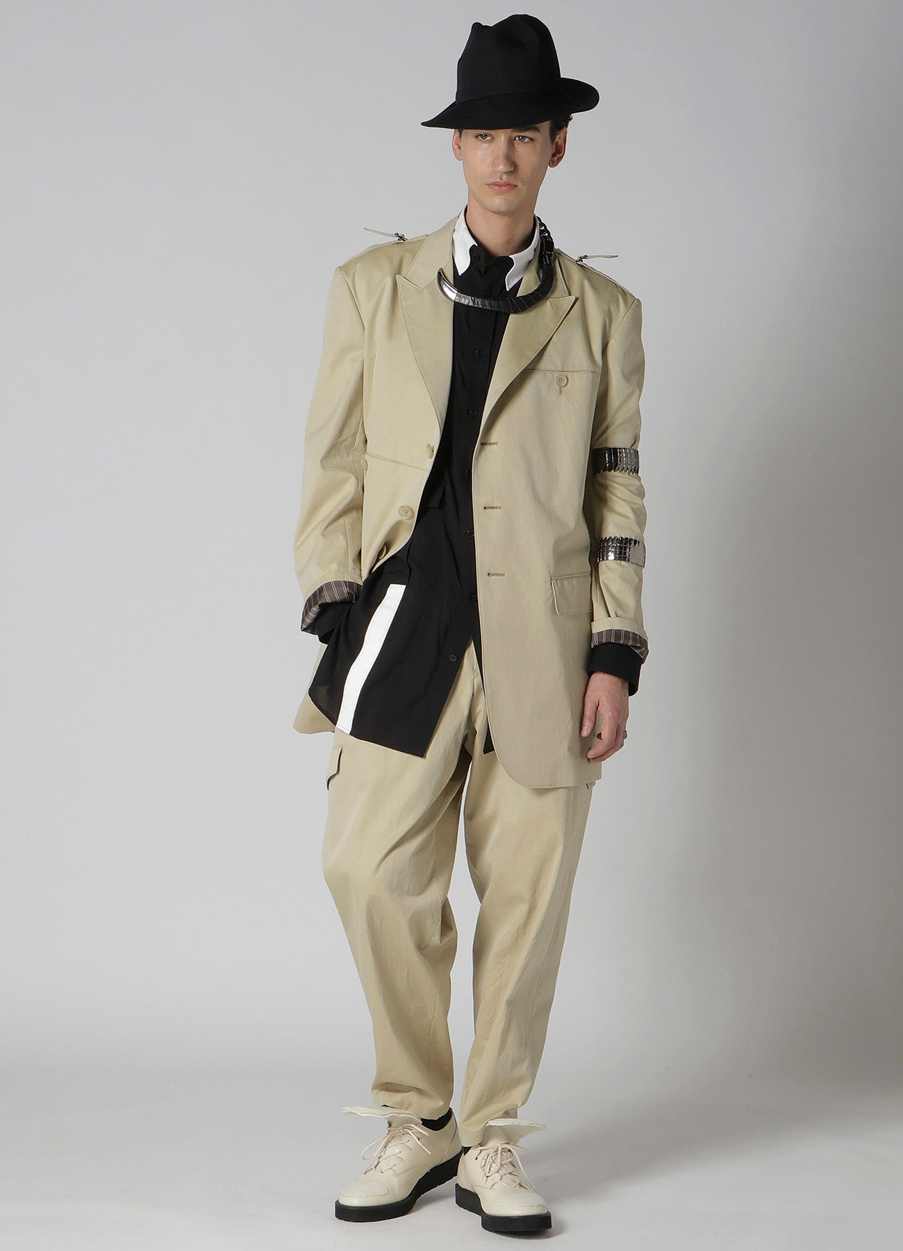 Cette veste à revers en pointe en coton burberry Yohji Yamamoto POUR HOMME Automne/Hiver 2024-25 présente des bretelles réglables pour une largeur personnalisable, créant des effets de drapé uniques. La veste comprend des poches poitrine variées, une doublure de manche contrastante, et est fabriquée en tissu burberry en coton haute densité, durable et imperméable, adapté à un usage quotidien.