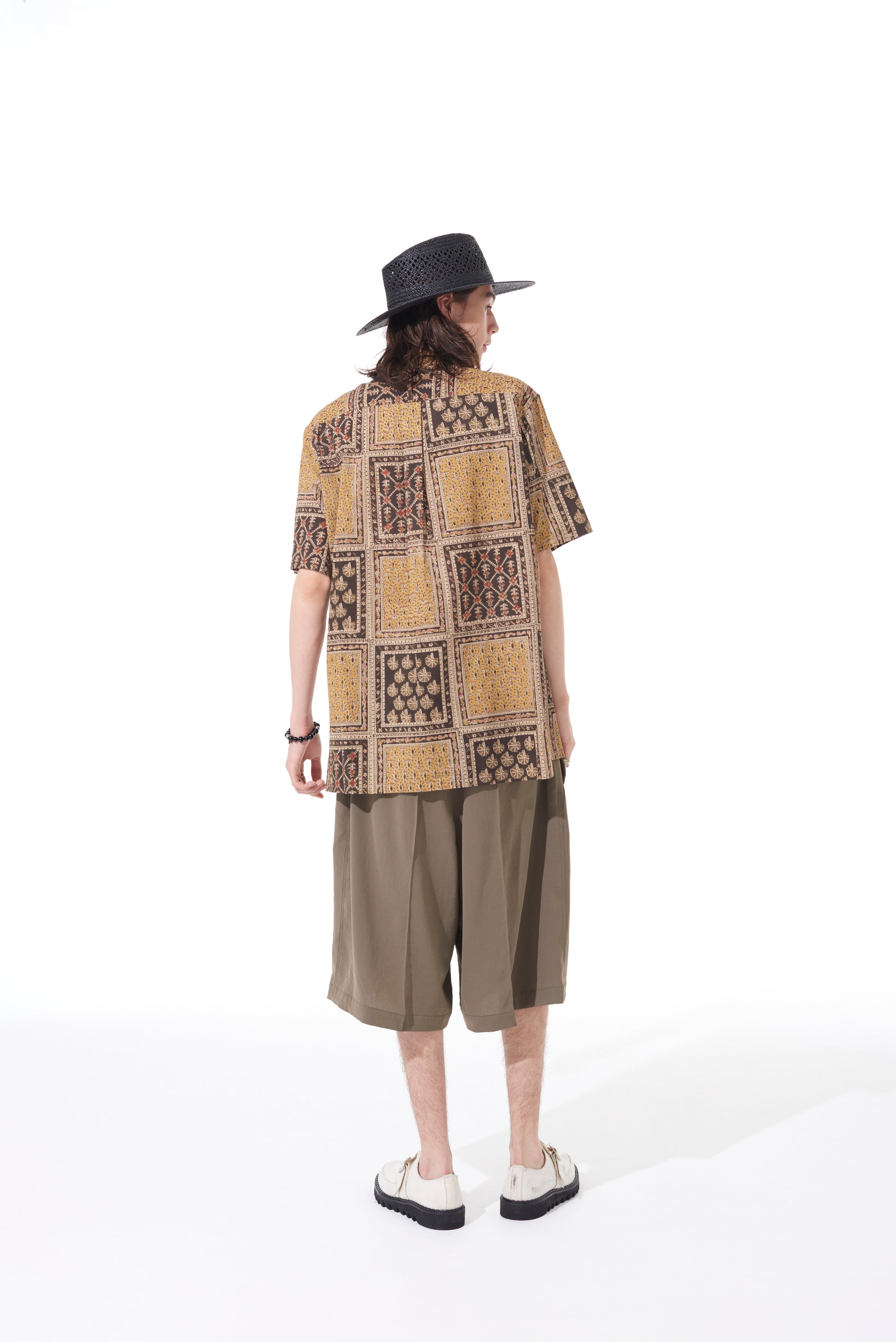POLYESTER WASHER TWILL BUTTON-UP SHORTS