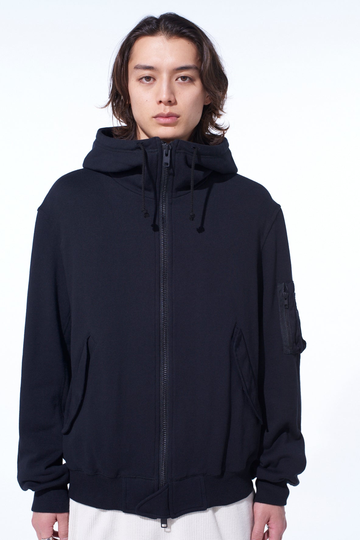 TWILL TERRY MIX ZIP-UP HOODIE WITH UTILITY SLEEVE POCKET