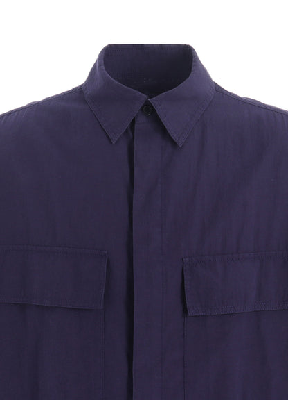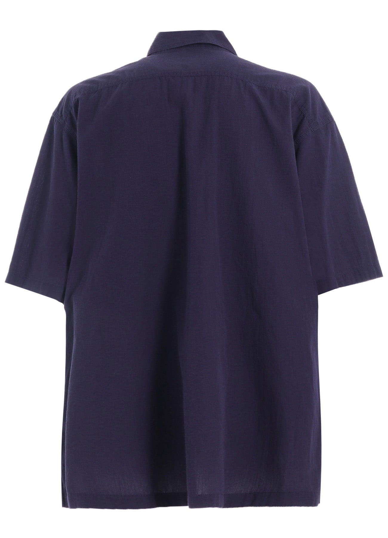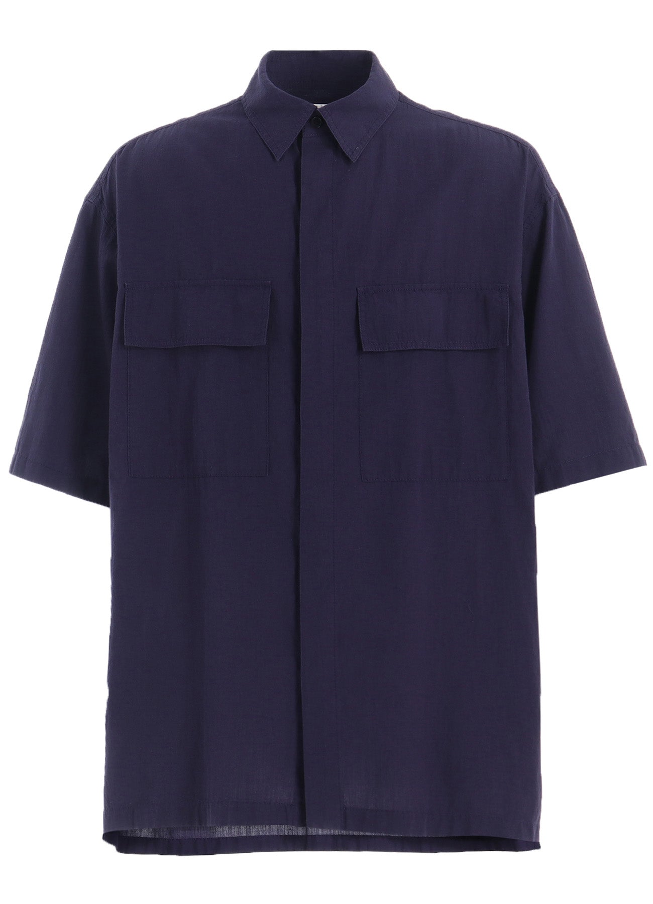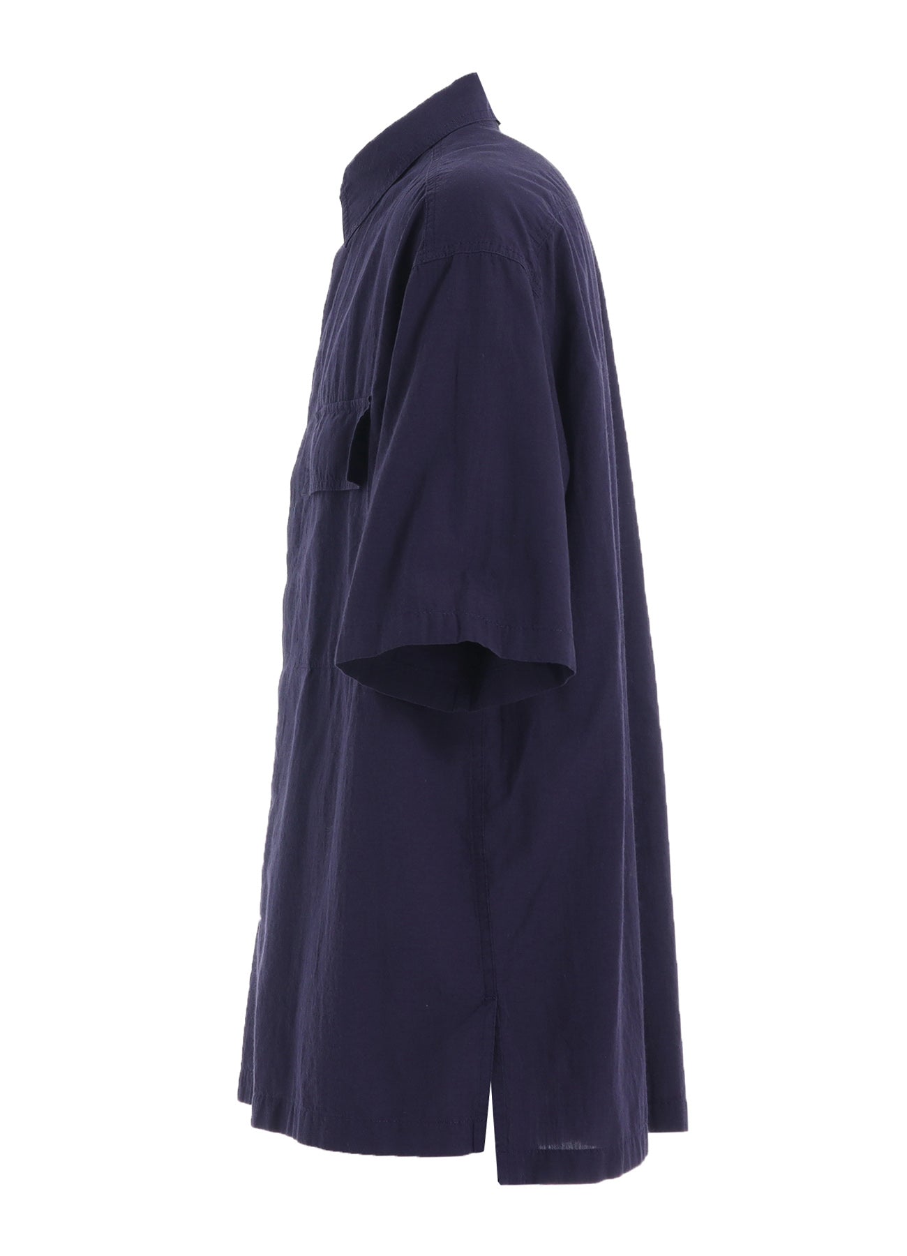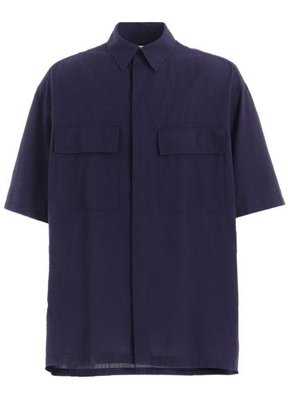 BROADCLOTH CHAMBRAY FLAP POCKETS OVERSIZED SHORT-SLEEVE SHIRT