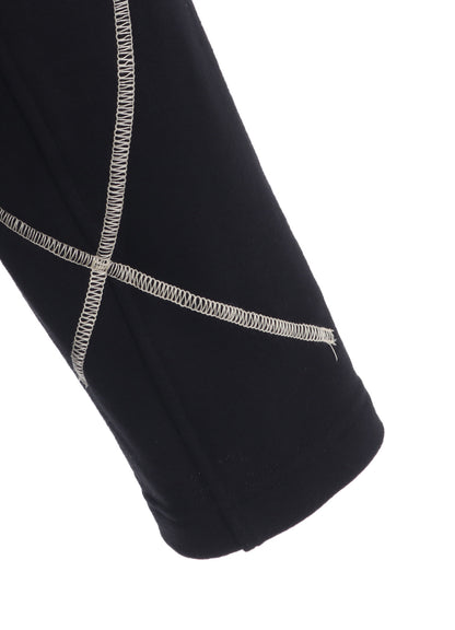 Cette veste à revers semi-cassés utilise du French Terry, un tissu en maille-peluche pour le confort. Des coutures accentuées aléatoires lui confèrent un look moderne. Fermée, son col se transforme pour un effet montant. Sa longueur raccourcie crée une silhouette épurée avec des pantalons larges.