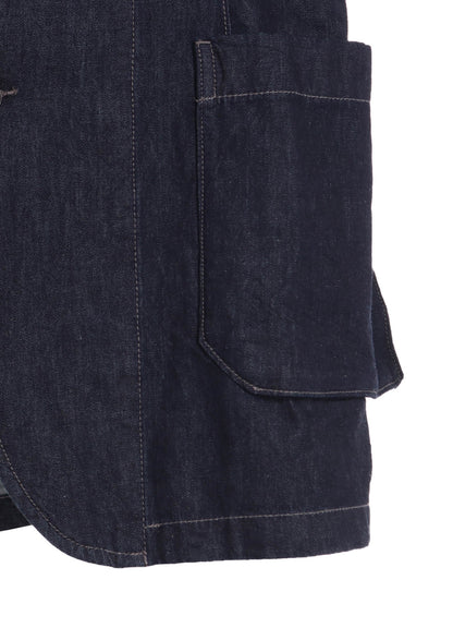 Cette veste à capuche en denim de 7 onces, fabriquée à Fukuyama, allie élégance et éléments décontractés. Conçue comme une veste avec capuche, elle s’adapte à divers hauts. Le design bicolore évolue avec le temps. Sa capacité de poches offre praticité, tandis que la poche poitrine ajoute une touche subtile.