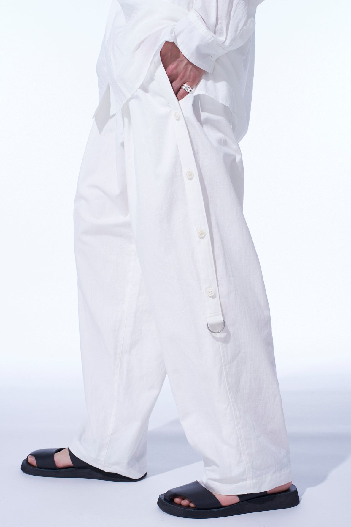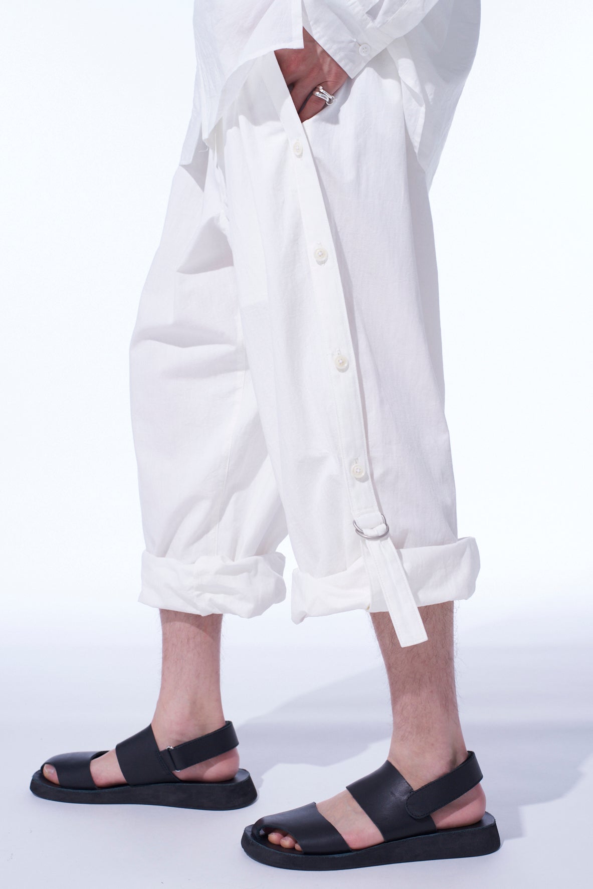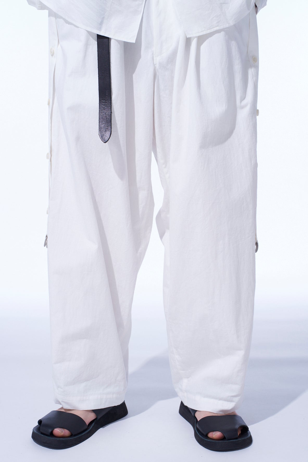COTTON/LINEN DUNGAREE SIDEBANDED PANTS