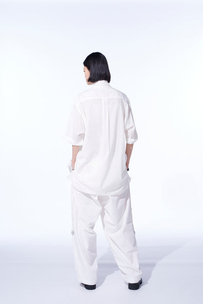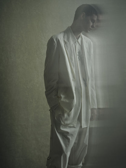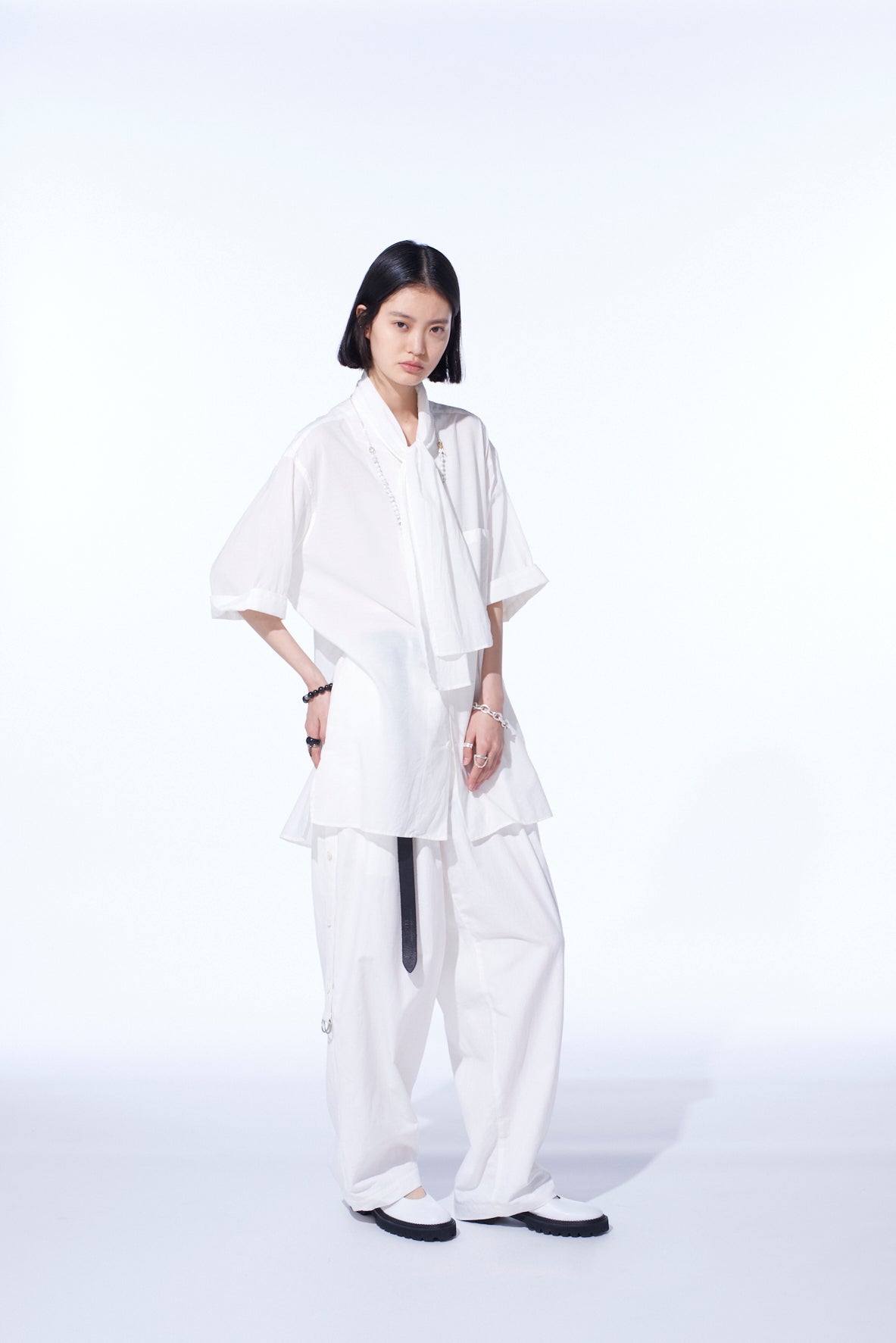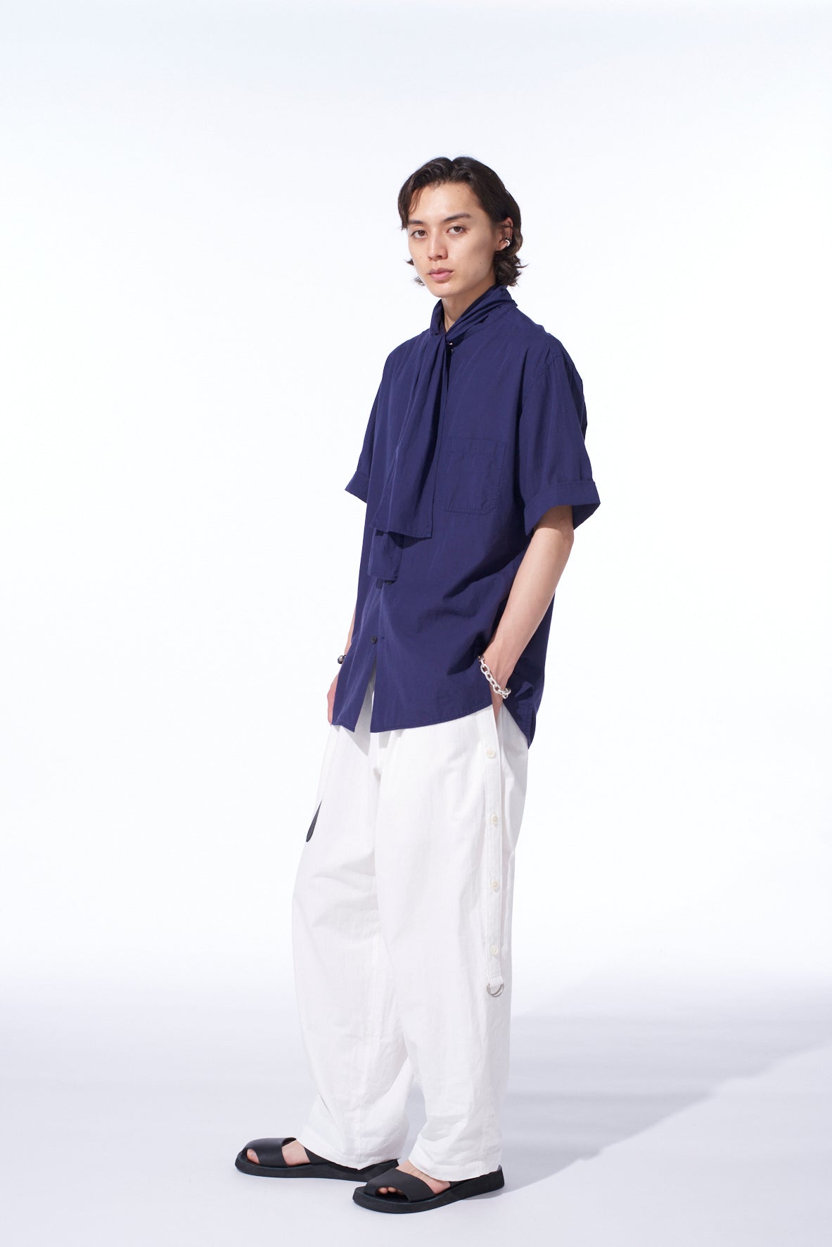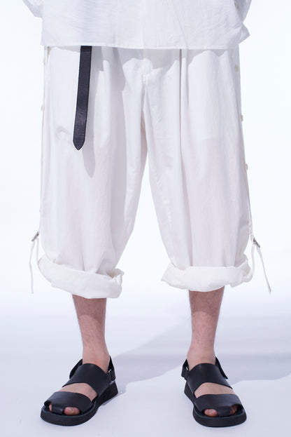 COTTON/LINEN DUNGAREE SIDEBANDED PANTS