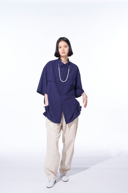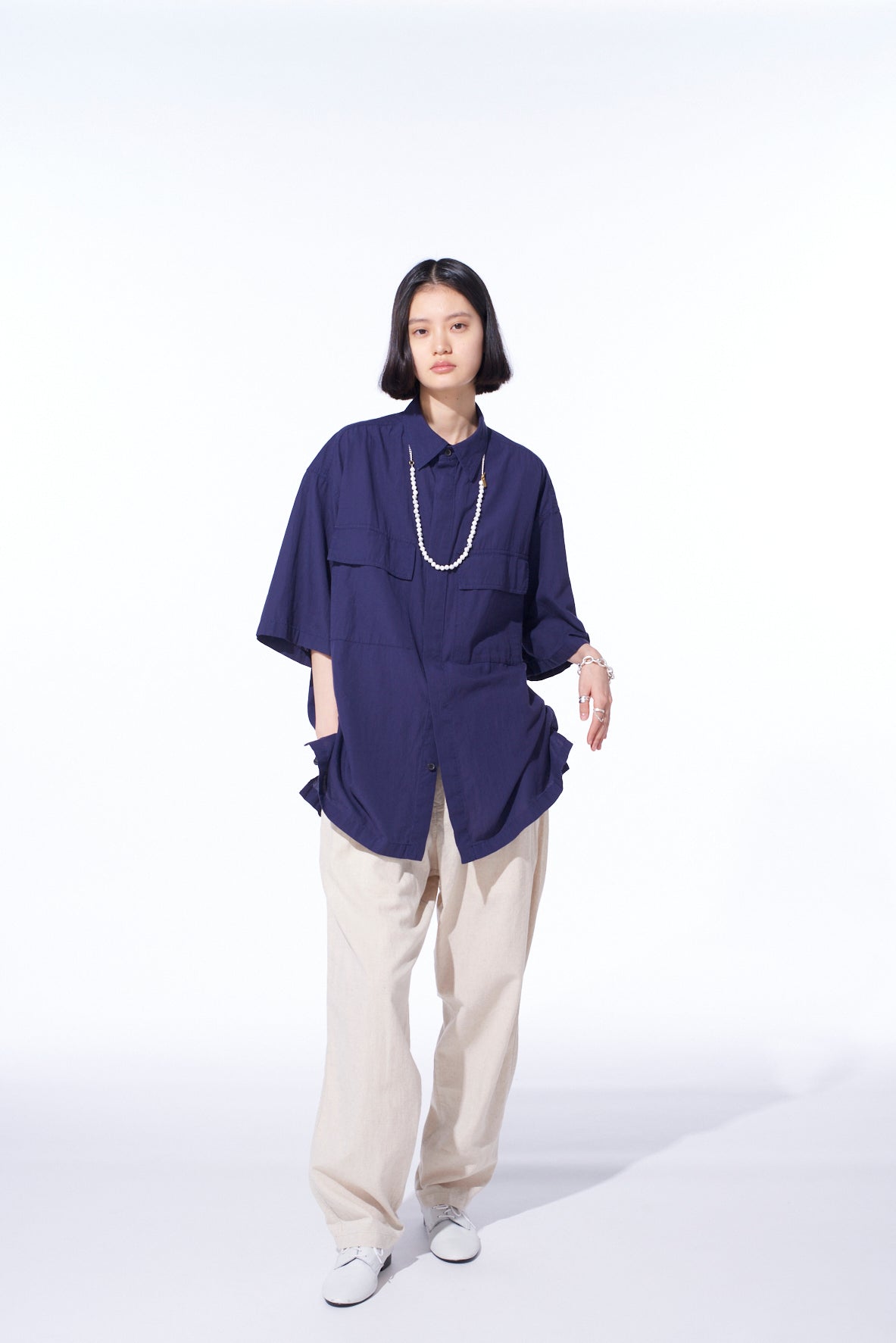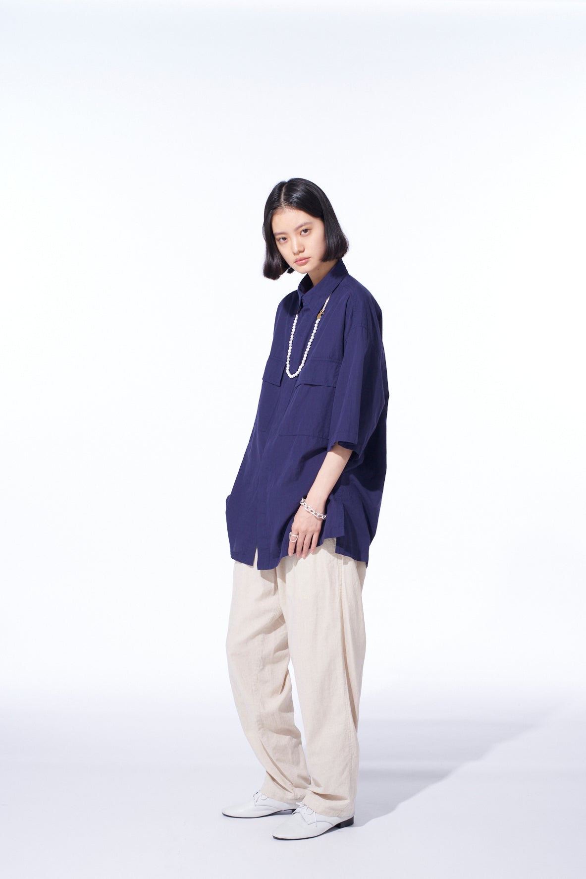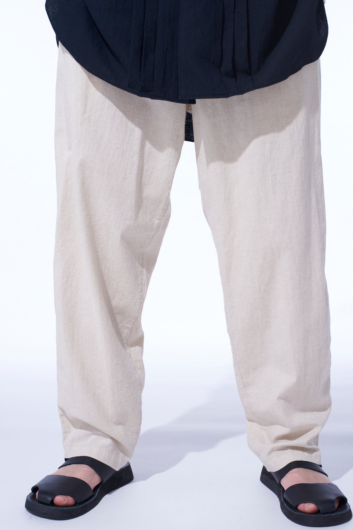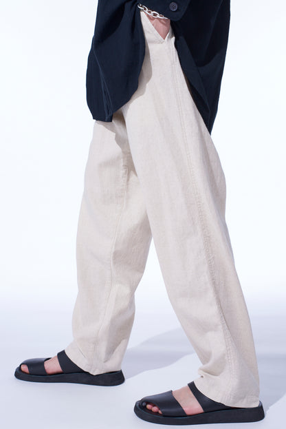 COTTON/LINEN POPLIN WAIST-STRING PANTS