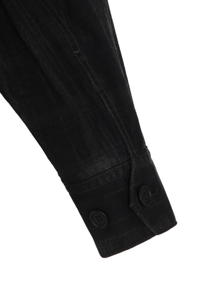 Cette chemise de travail en jacket, provenant de la région de Madras, utilise des techniques traditionnelles pour produire un tissu à carreaux de Madras, avec une impression de pigment qui laisse transparaître les carreaux de manière aléatoire. Le col ouvert ajoute une touche décontractée, et le roulage des poignets révèle le motif à carreaux pour un accent. Le vieillissement améliore le caractère unique du tissu au fil du temps.