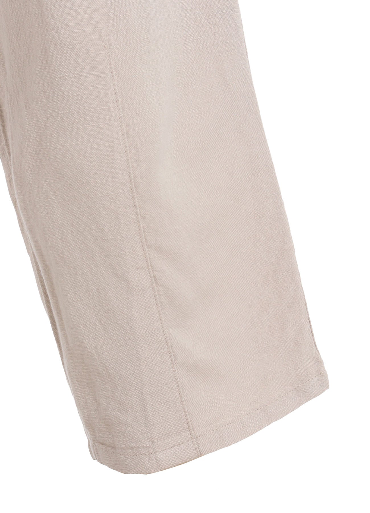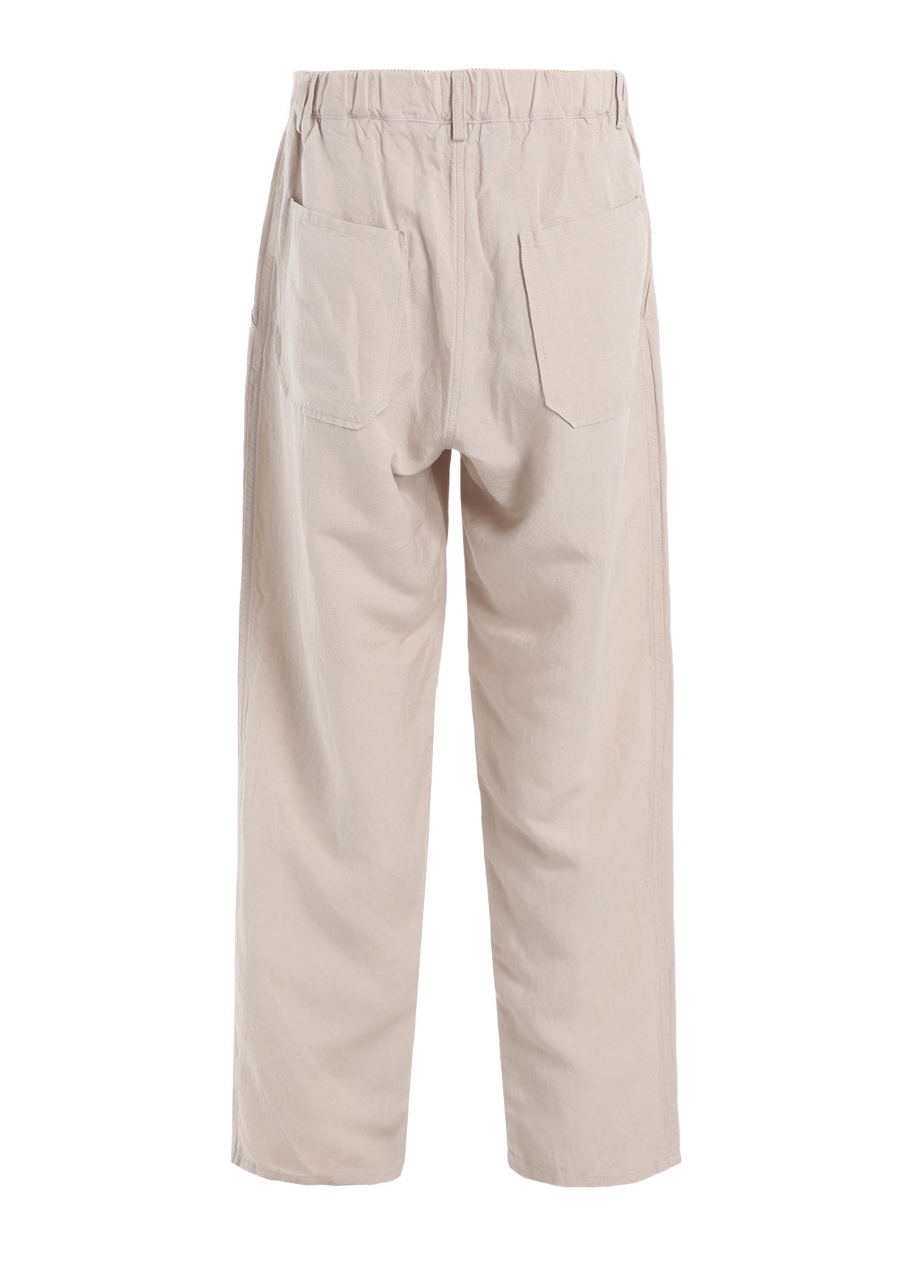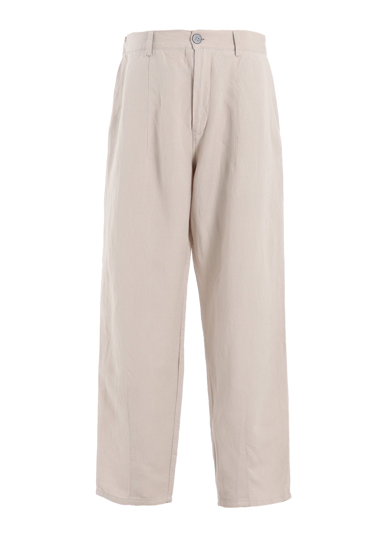 Les pantalons combinent la texture fraîche du lin et le drapé fluide du rayonne. Grâce à une technique de lavage doux appliquée aux éléments formels, ils procurent une sensation décontractée, les rendant adaptés à diverses occasions. - Fusion de lin et rayonne pour une sensation unique - Lavage doux pour une touche décontractée sur un style formel - Polyvalents pour de multiples occasions