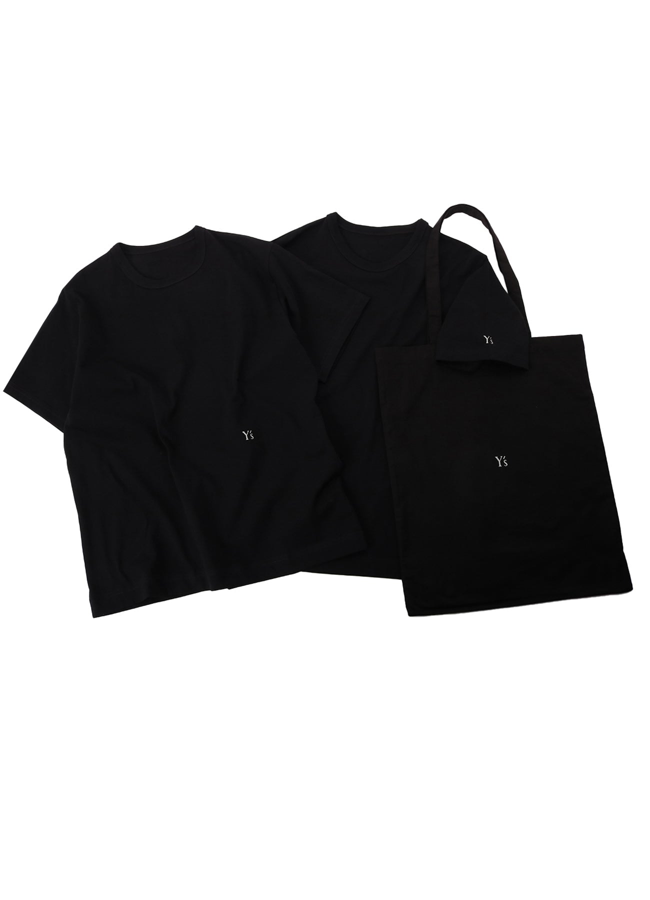 The two-pack short-sleeve tops featuring the Y's logo offer a smooth and comfortable texture. Designed for all genders, the tops come in various sizes. Additionally, each set includes a special tote bag printed with the Y's logo.