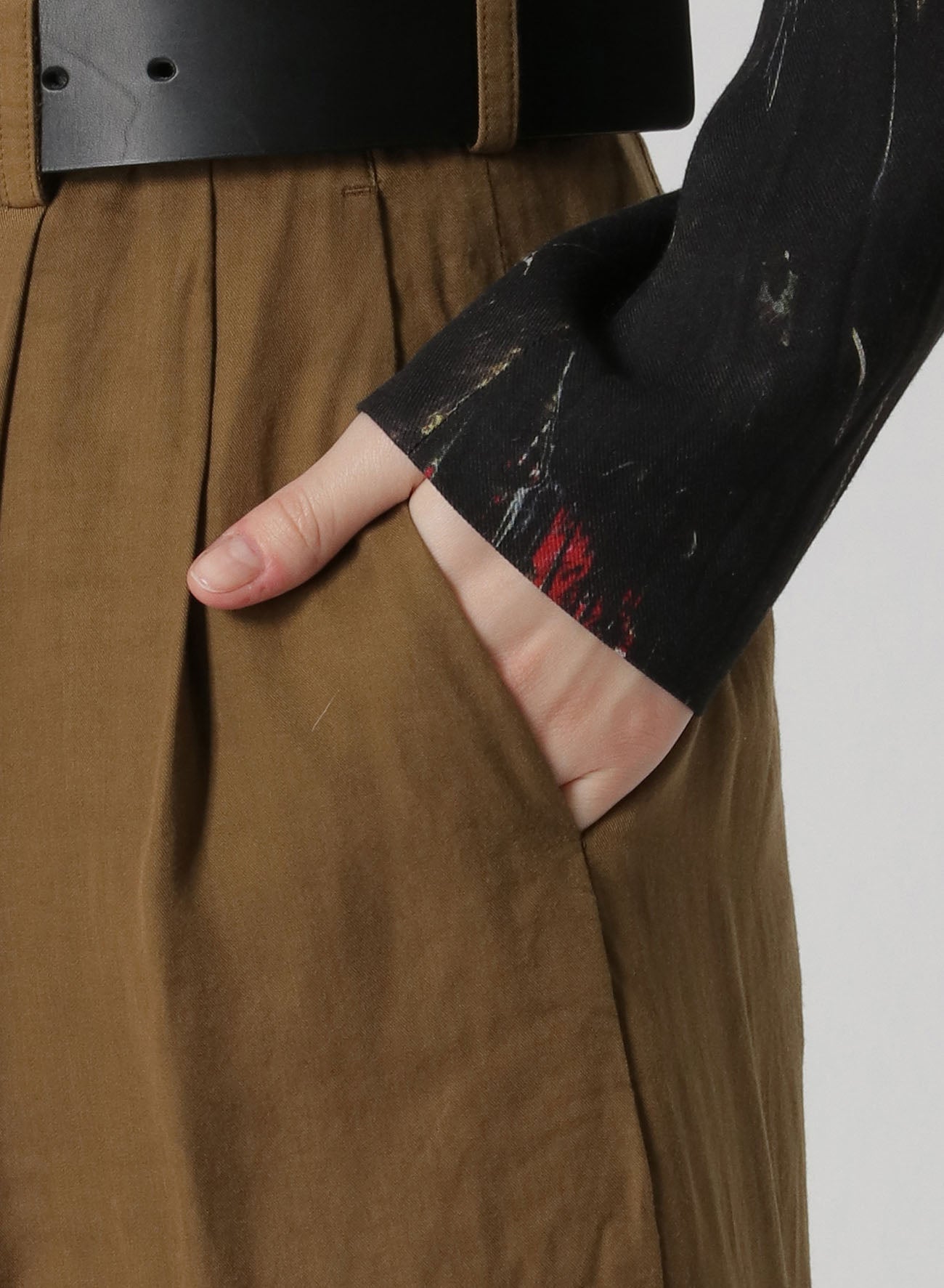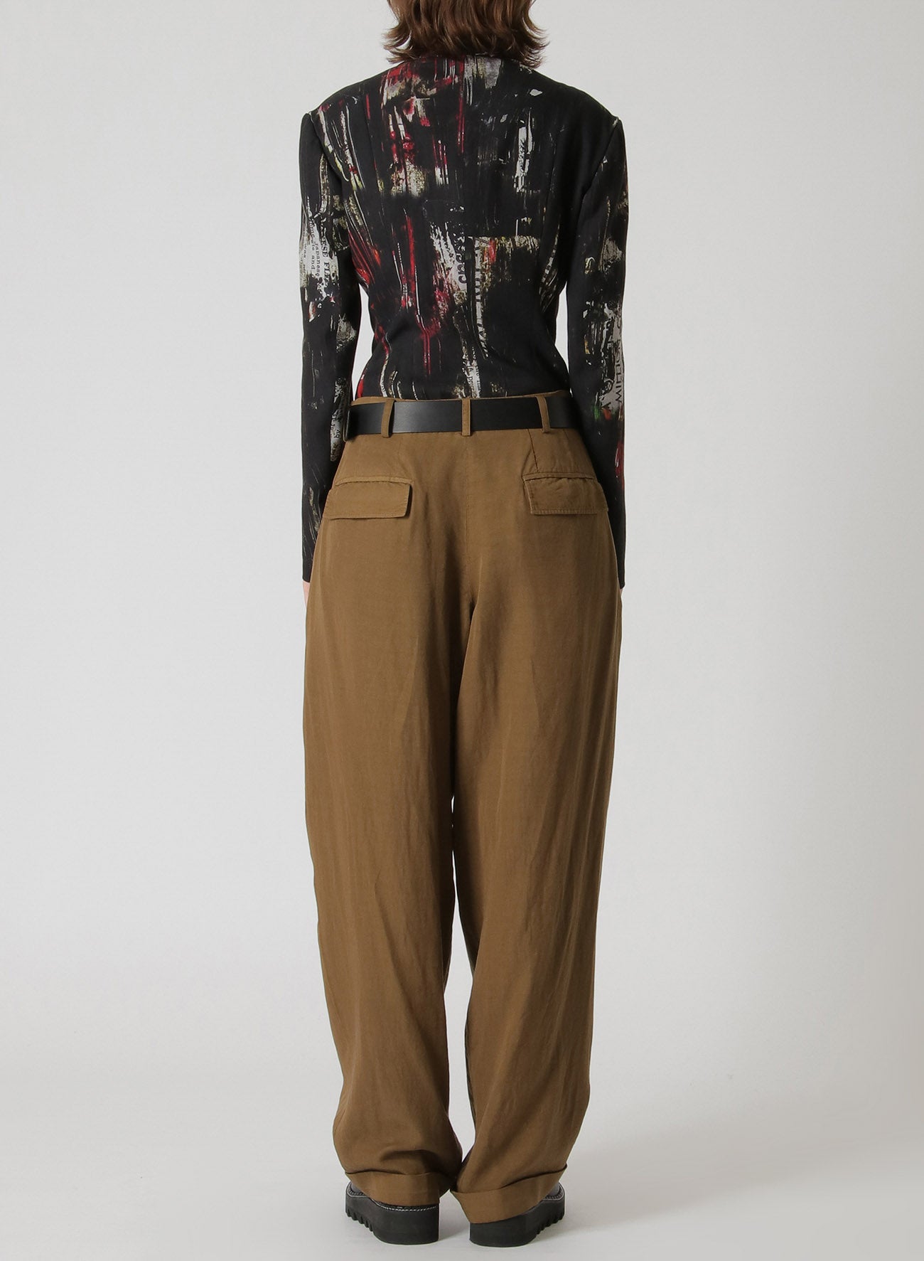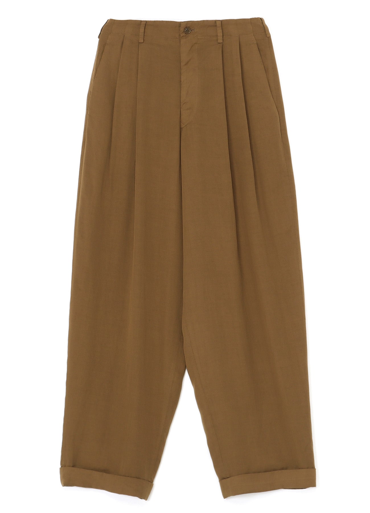 GARMENT-DYED CELLULOSE TWILL DOUBLE PLEATED CUFFED HEM PANTS
